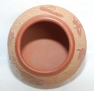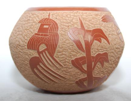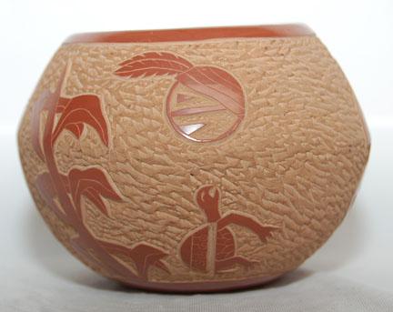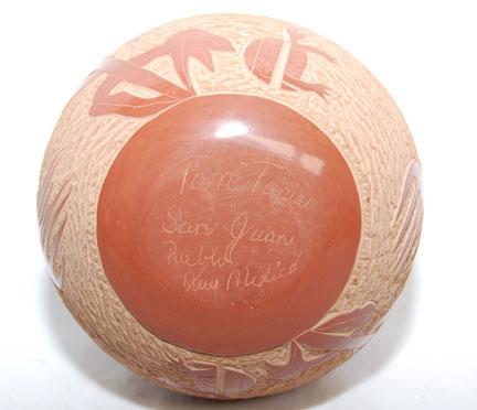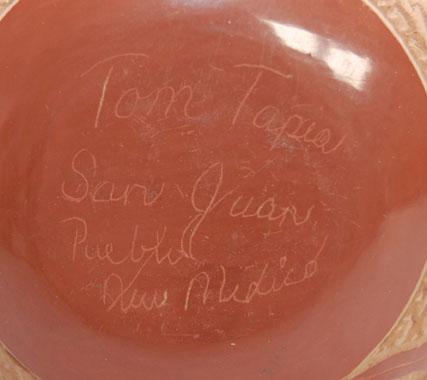 sgraffito design, signed Tom Tapia, 2.5” x 3.5”, 1980’S