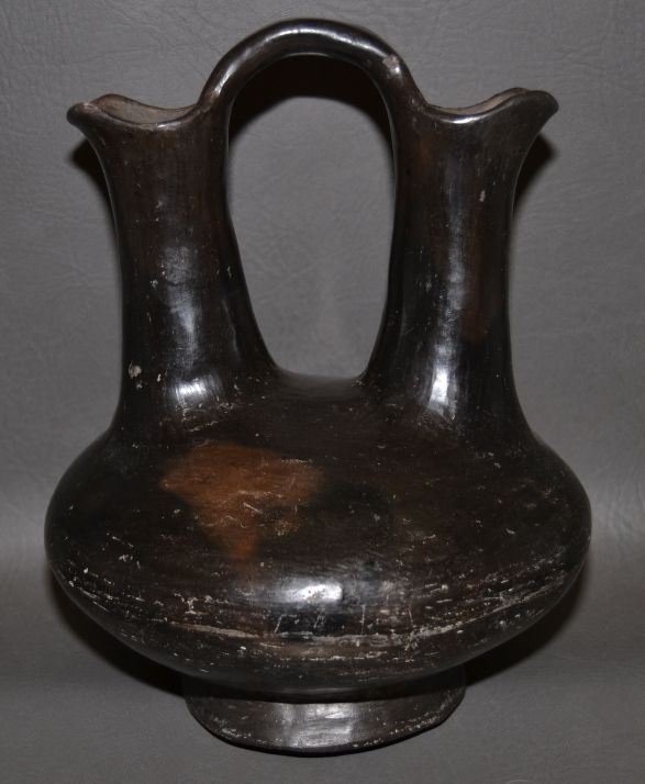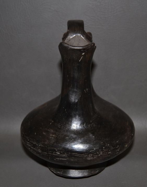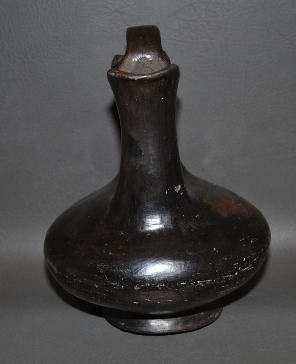 1920's hand made traditional stone polished black ware wedding vase style with pedestal bottom has minor chips 10" x 8"