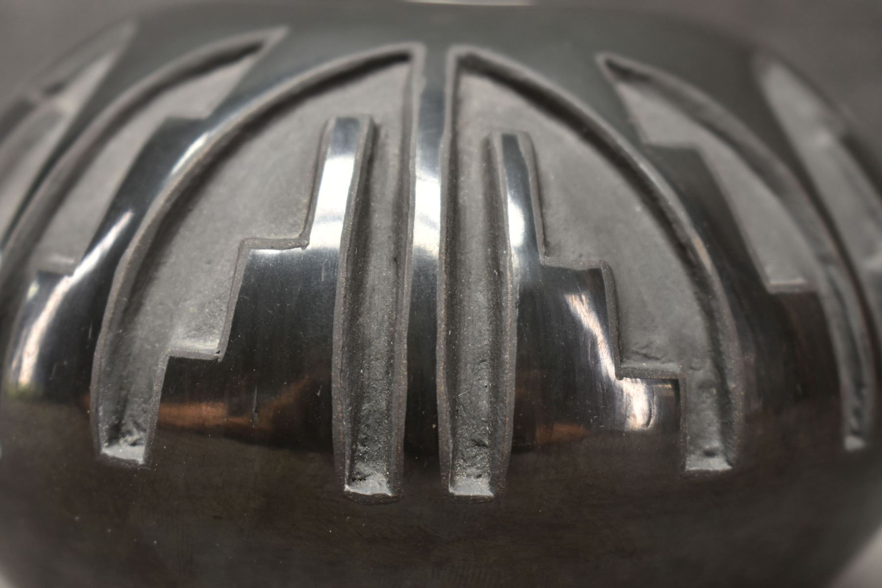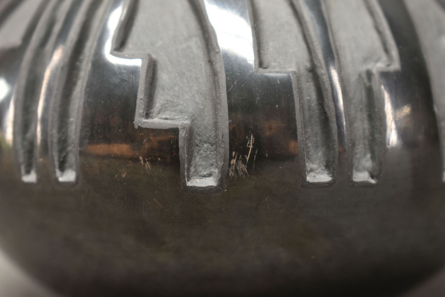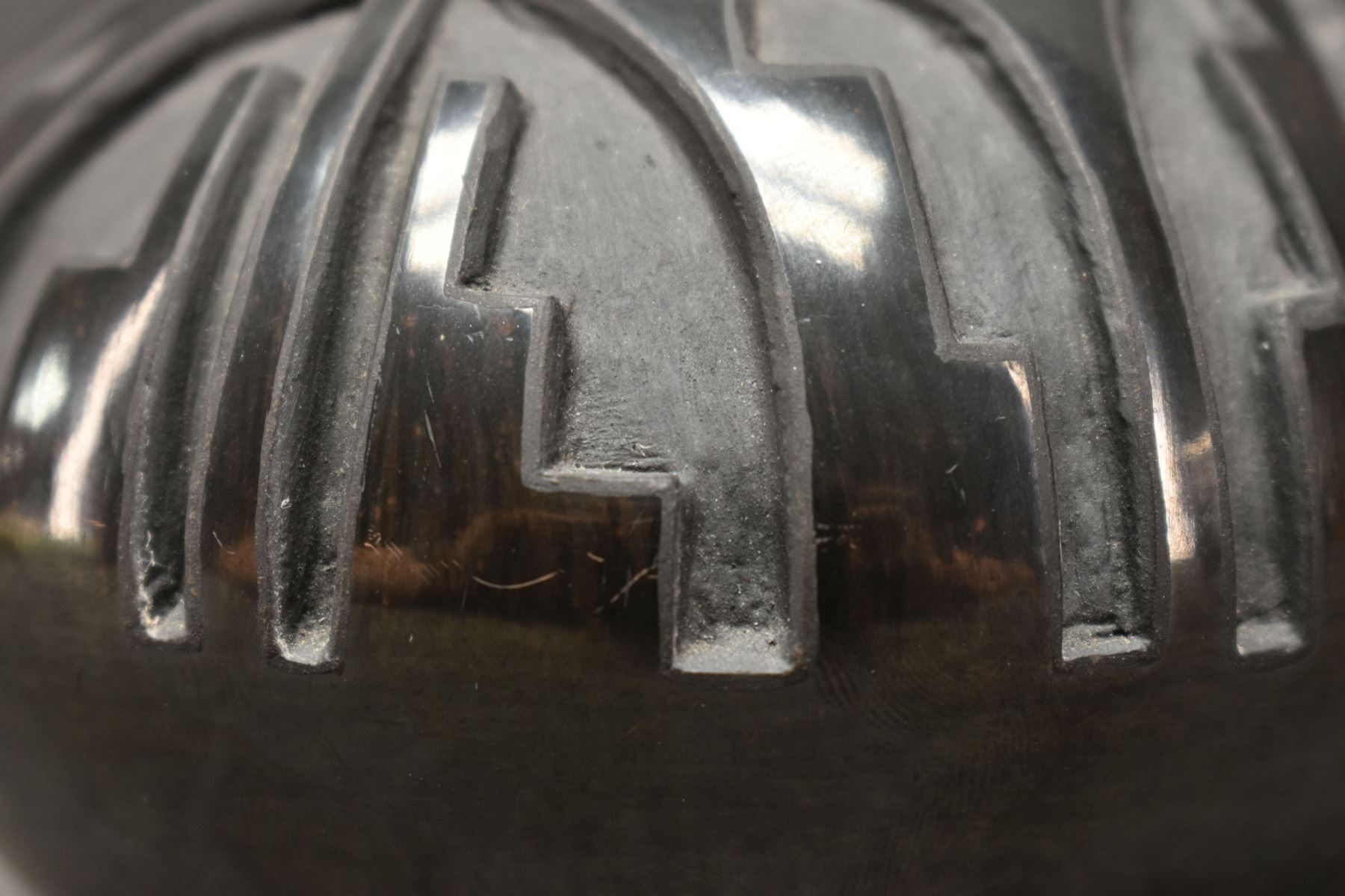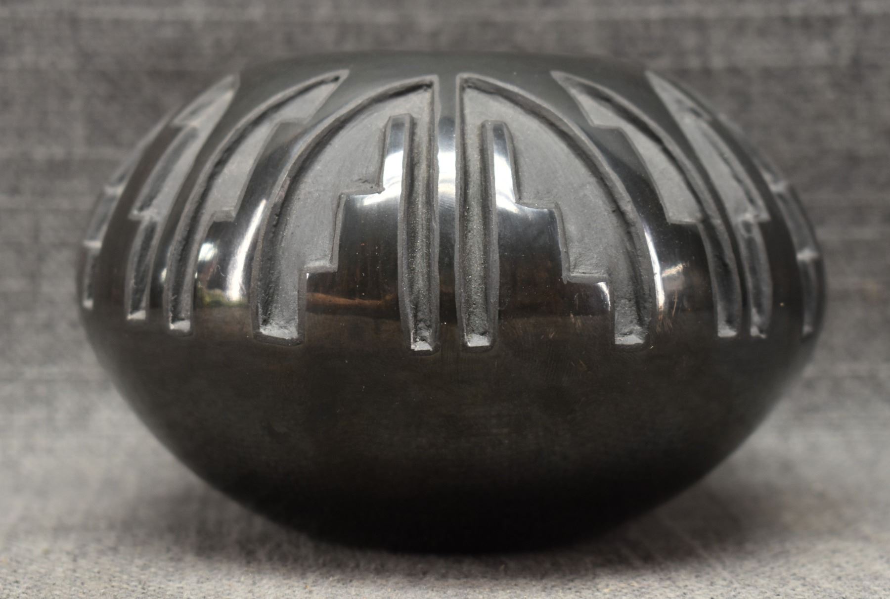 1992 Santa Clara. Hand coiled and carved design pottery bowl. Signed Robert Naranjo. 3'' x 5''