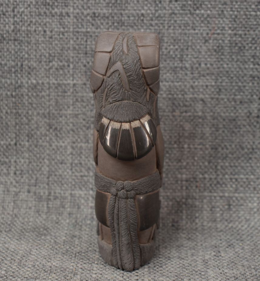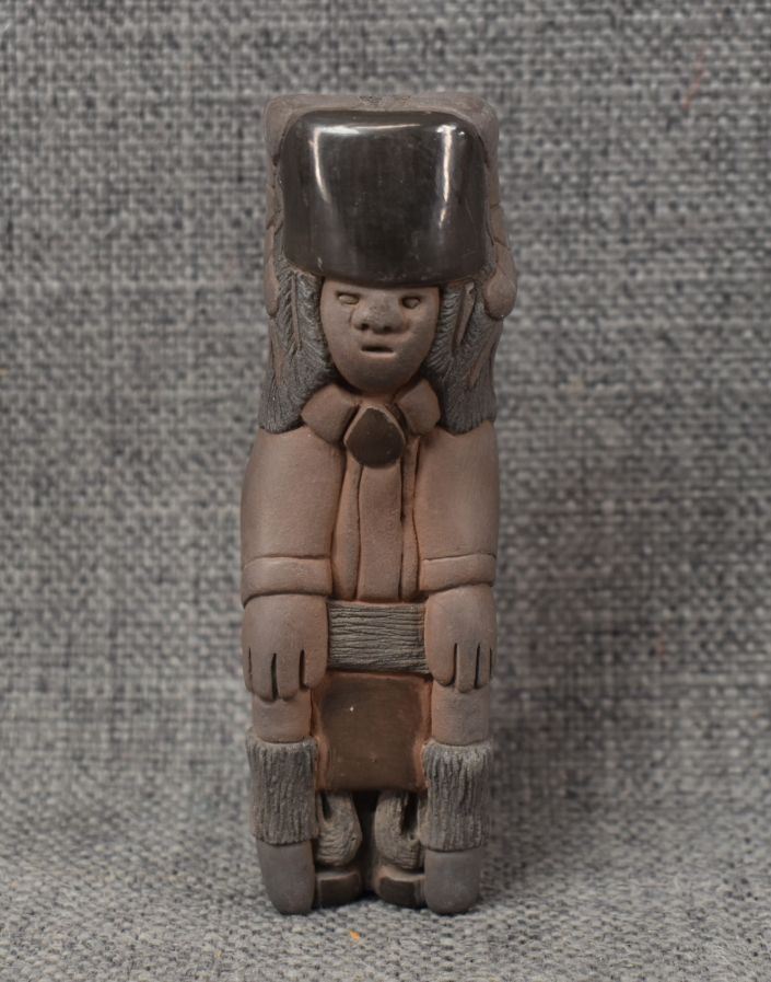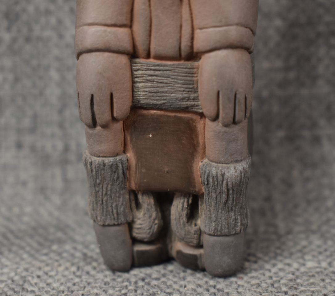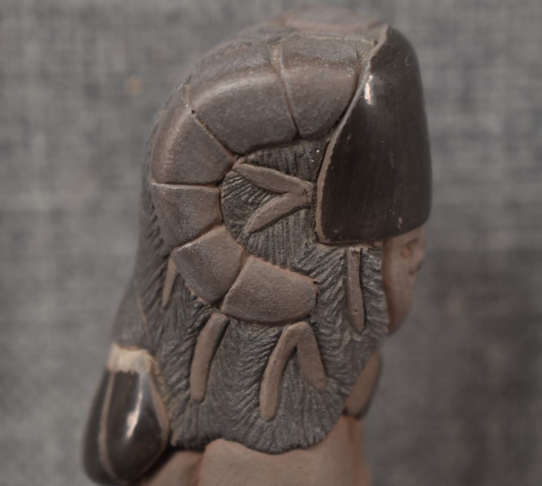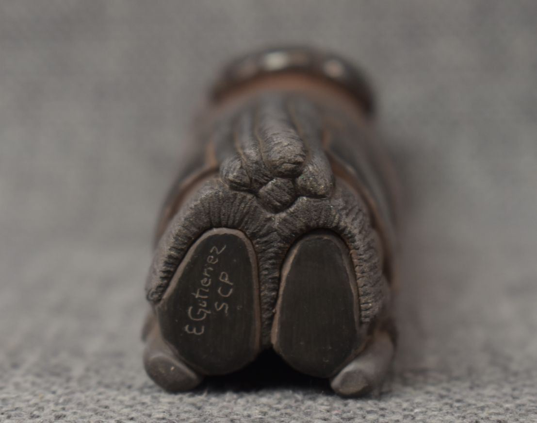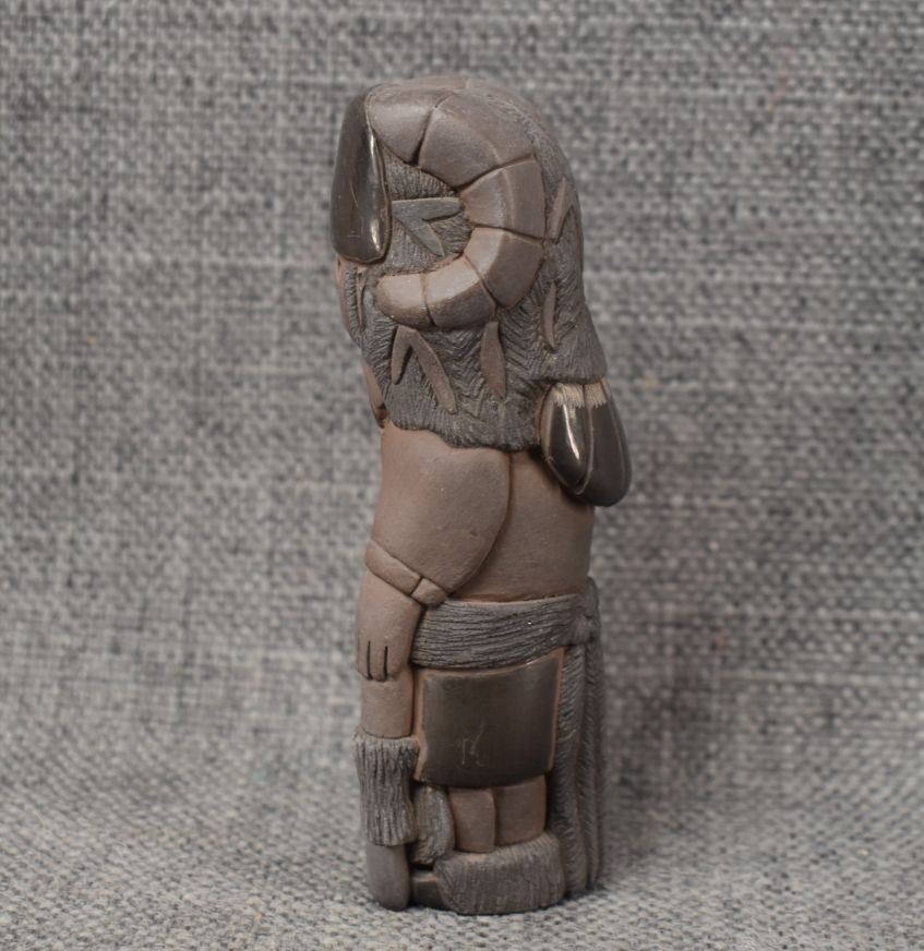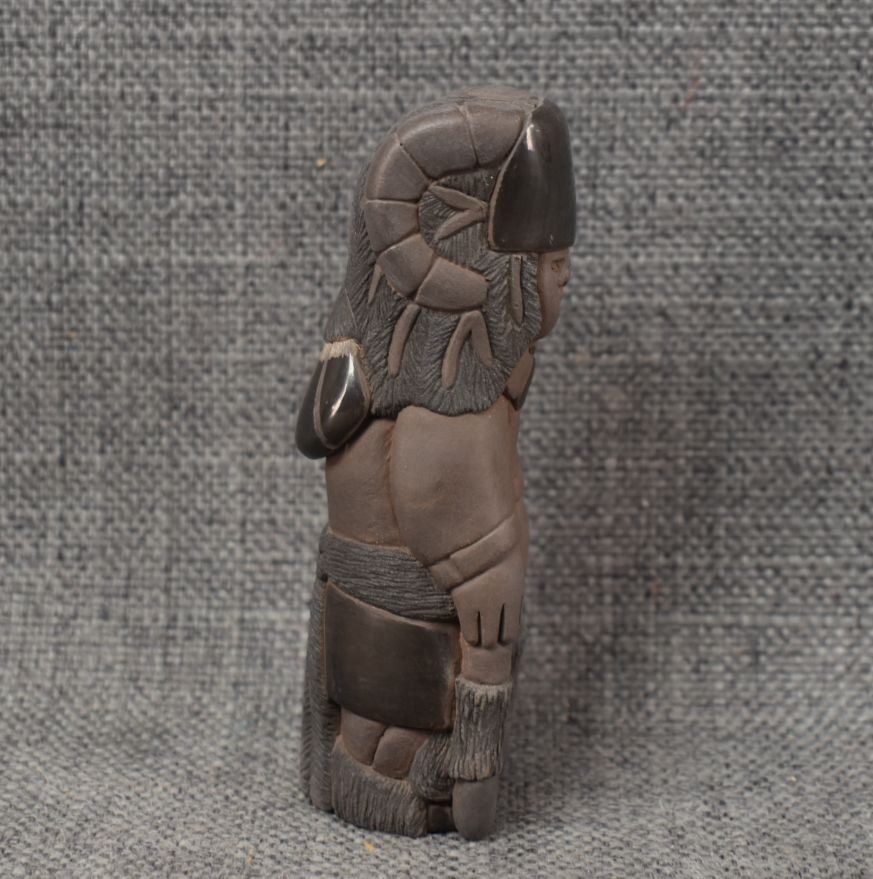 1990-2000's Santa Clara Indian hand made with sgraffito and polished ram kachina dancer signed E Guiterrez 4.5" x 1.5"