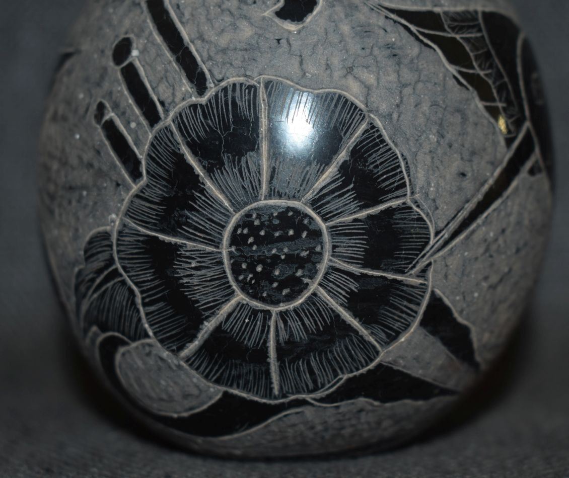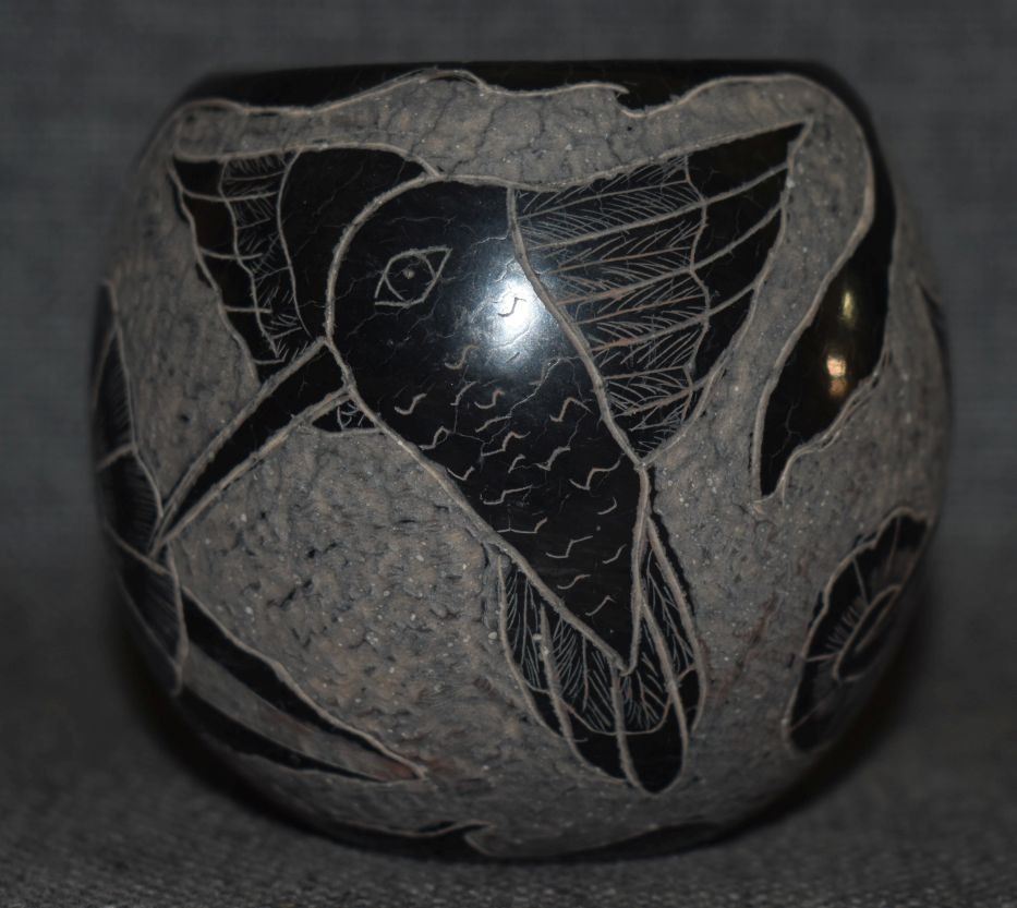 1990's Santa Clara Indian . Hand coiled and sgriffito design pottery jar, signed Dan Tafoya. 3.5'' x 3.5''