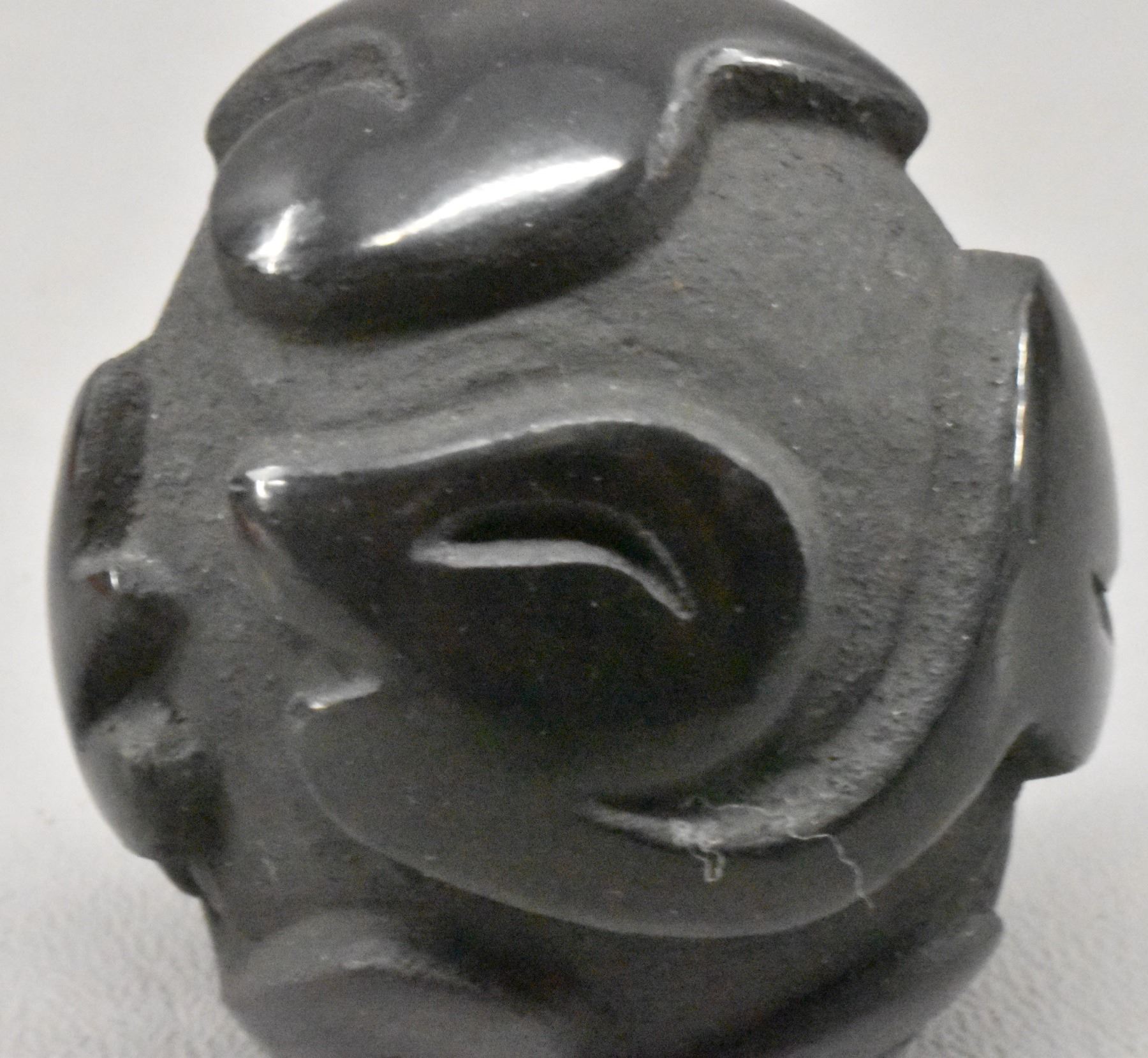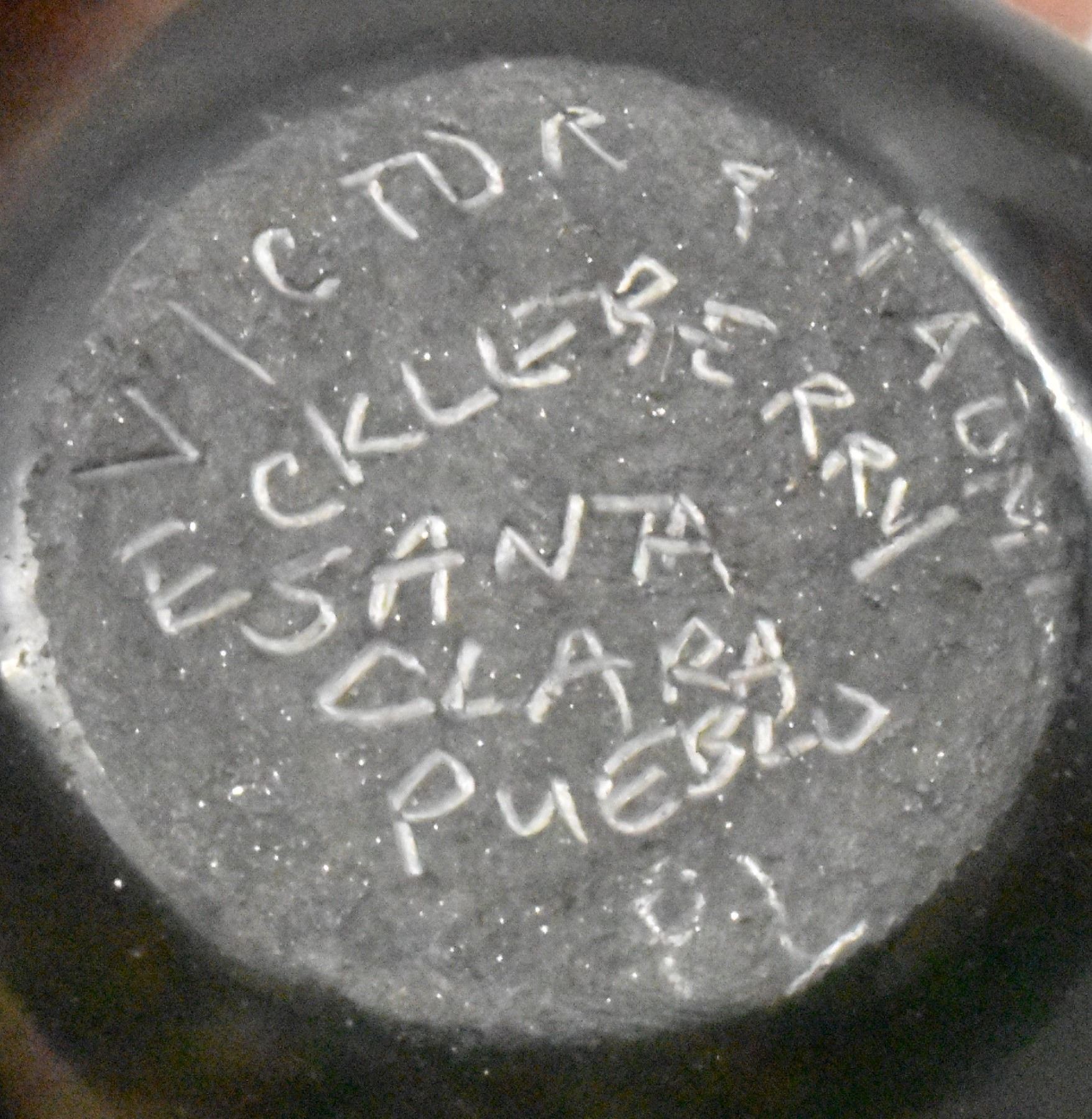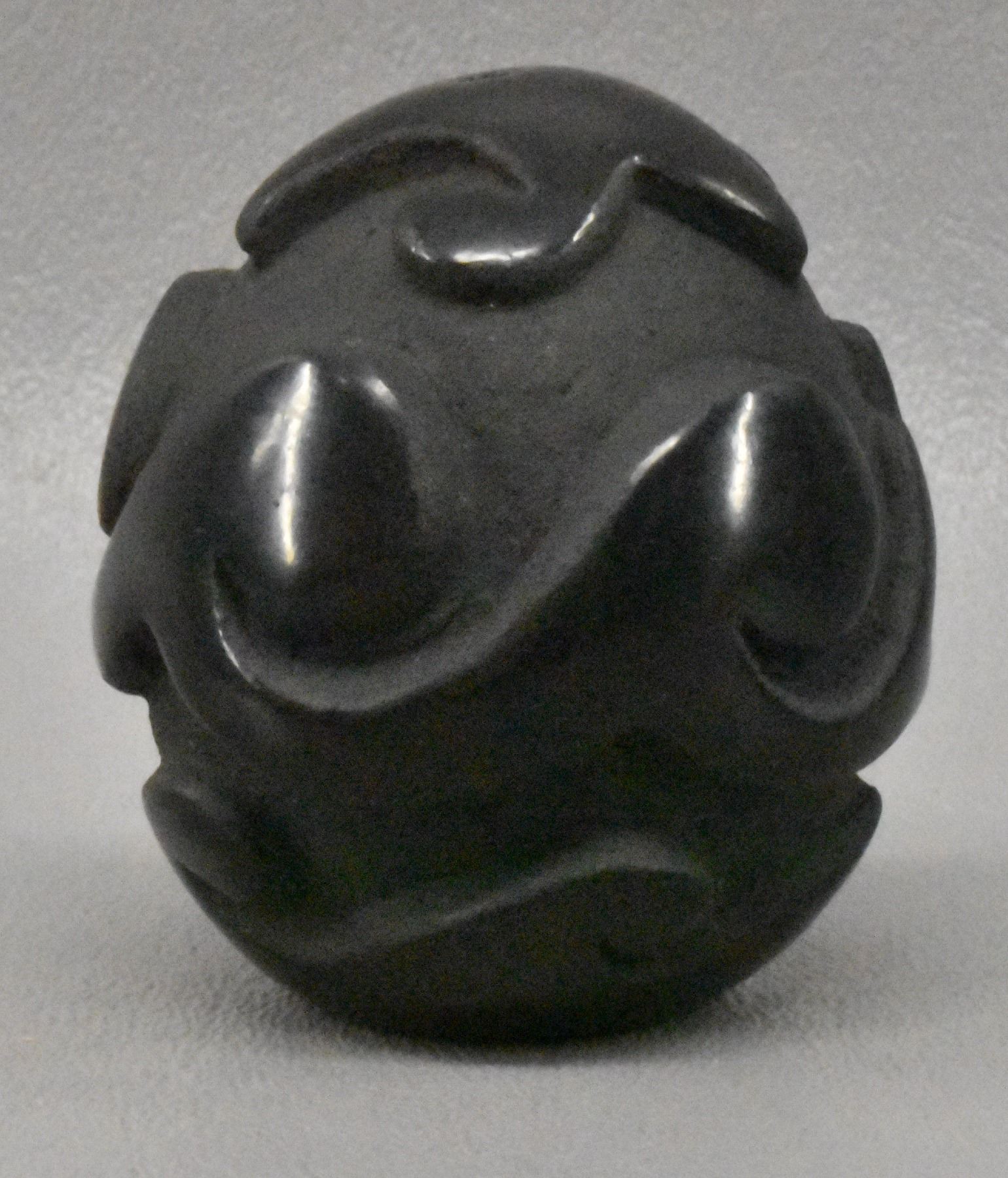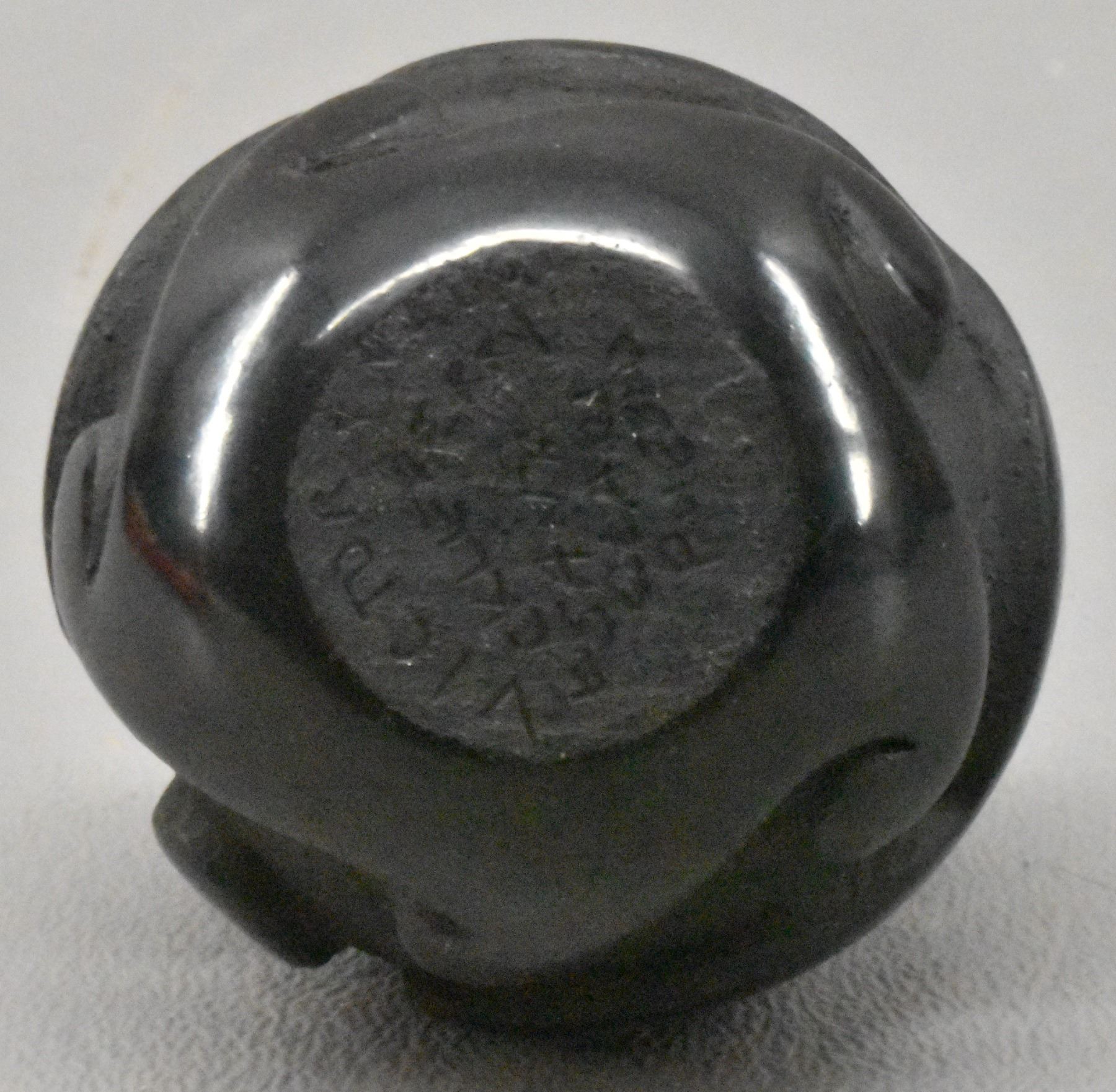 1980's Santa Clara Indian. Hand coiled and carved Avanyu design pottery seed jar signed Victor & Naomi Eckleberry , 2'' x 1.75''
