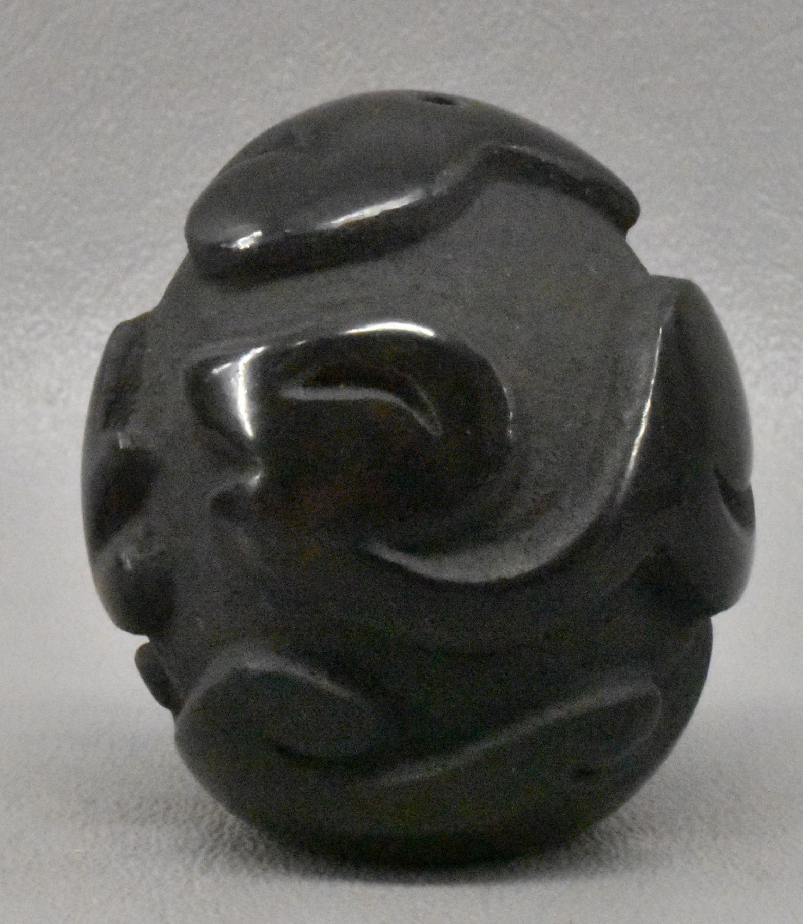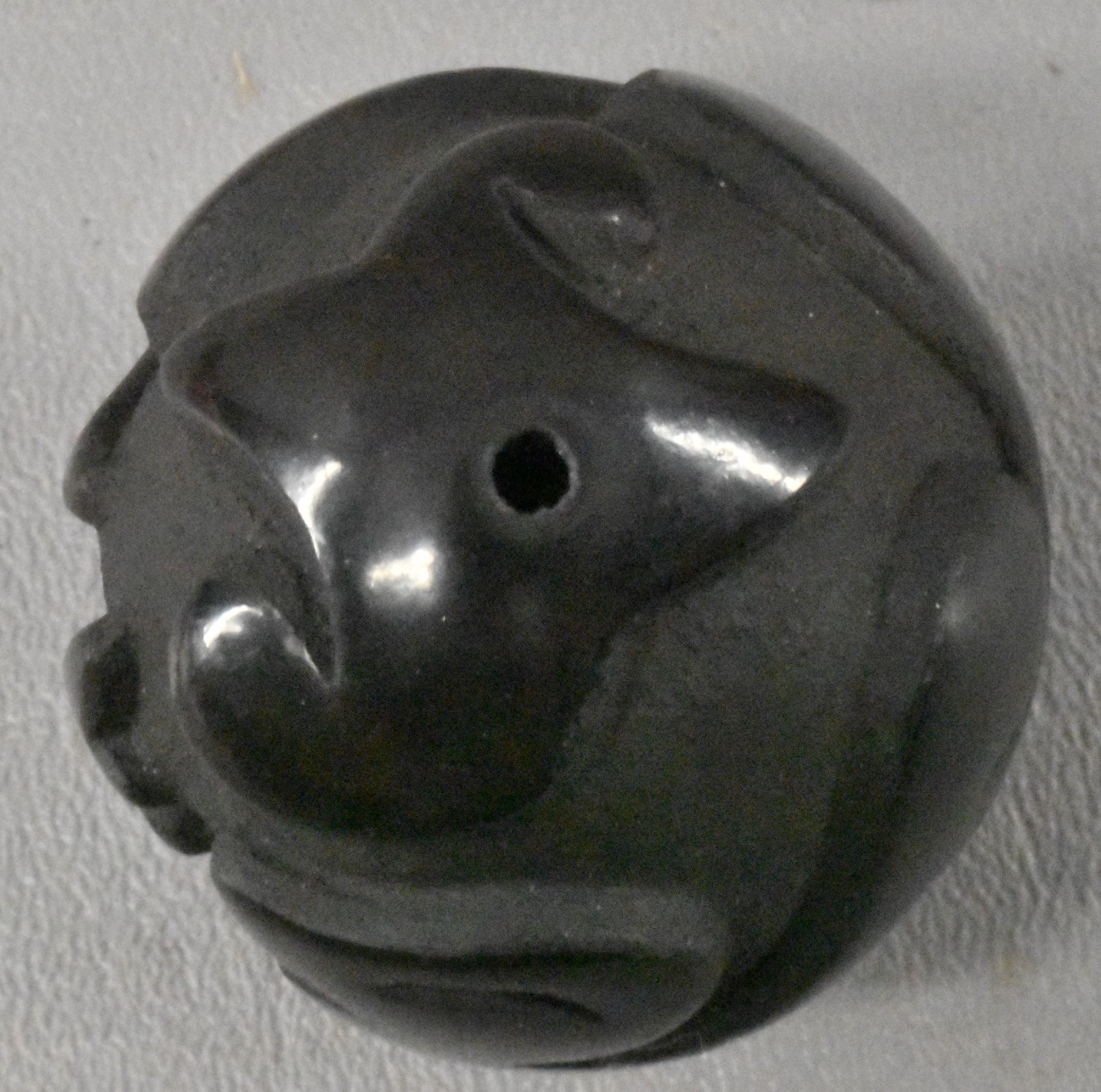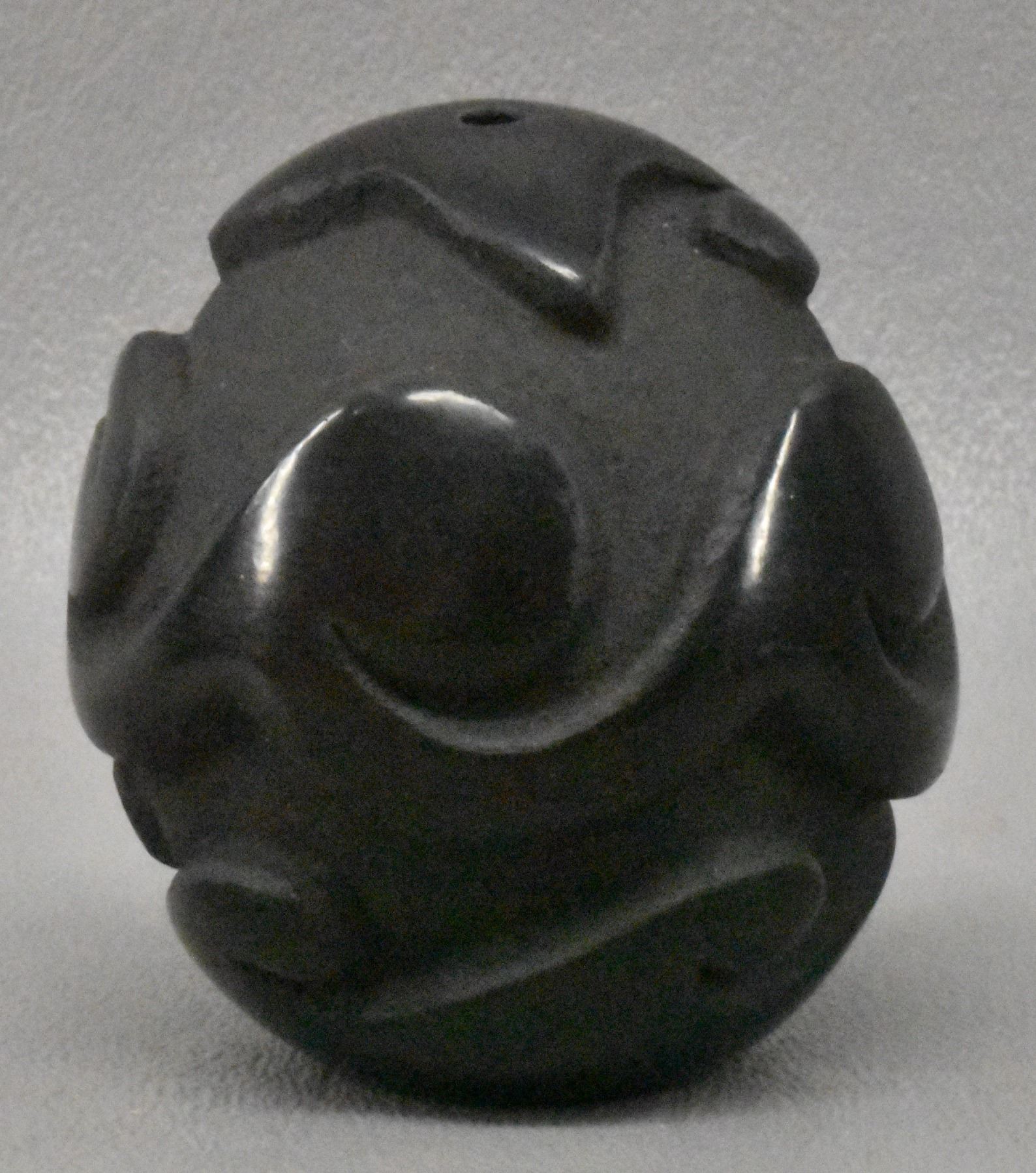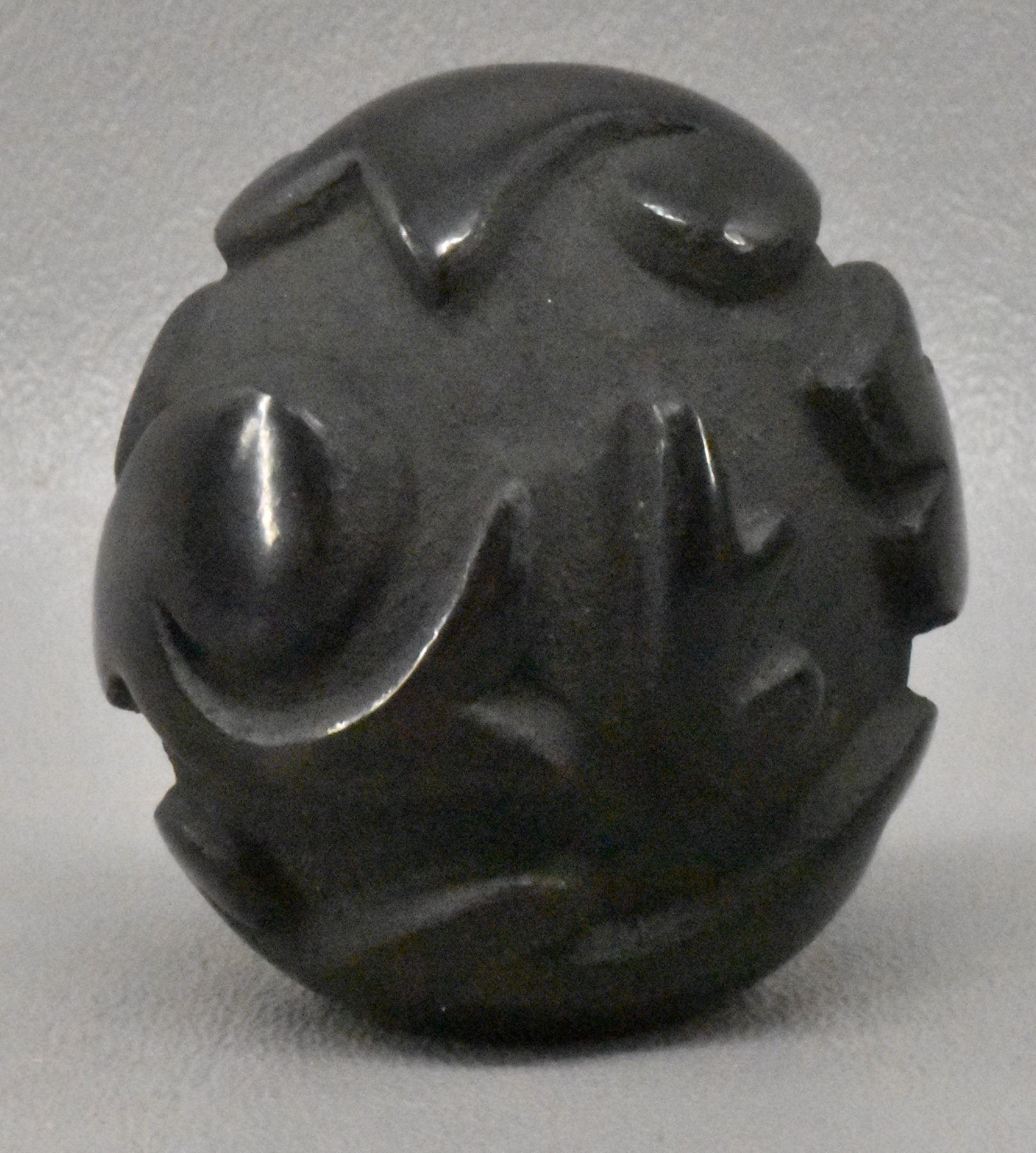 1980's Santa Clara Indian. Hand coiled and carved Avanyu design pottery seed jar signed Victor & Naomi Eckleberry , 2'' x 1.75''