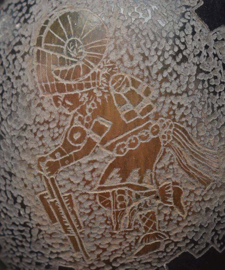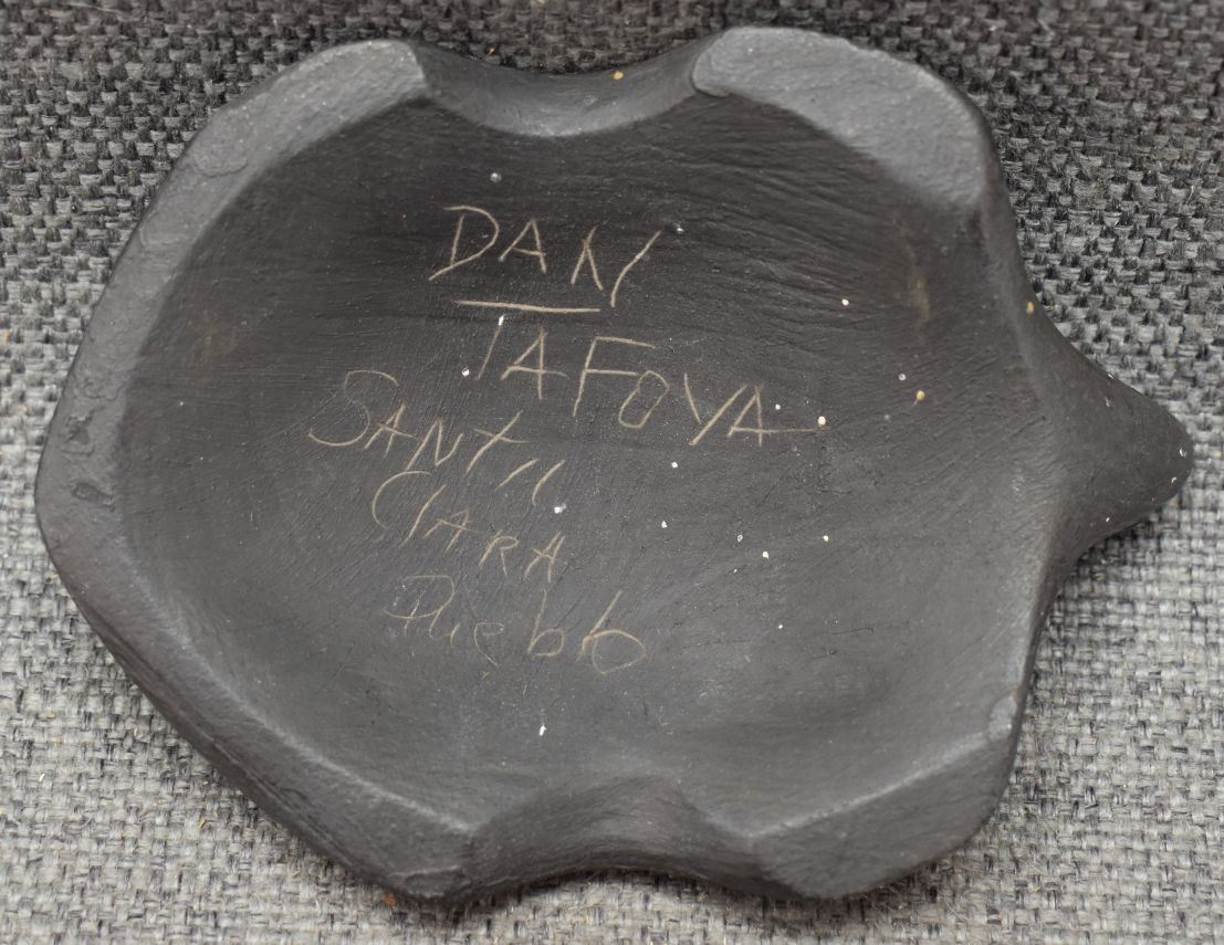 2000's Santa Clara Indian. Hand coiled and sgriffito design pottery turtle. Signed Dan Tafoya, 1.5'' x 4'' x 3''