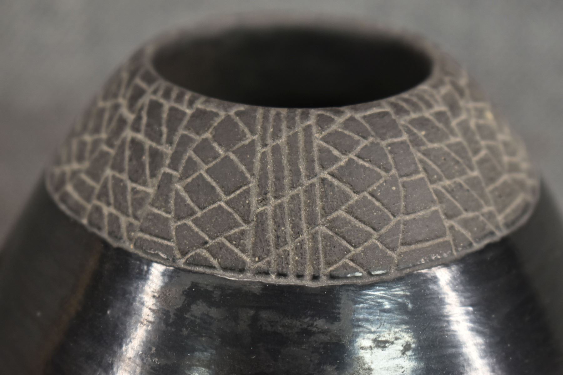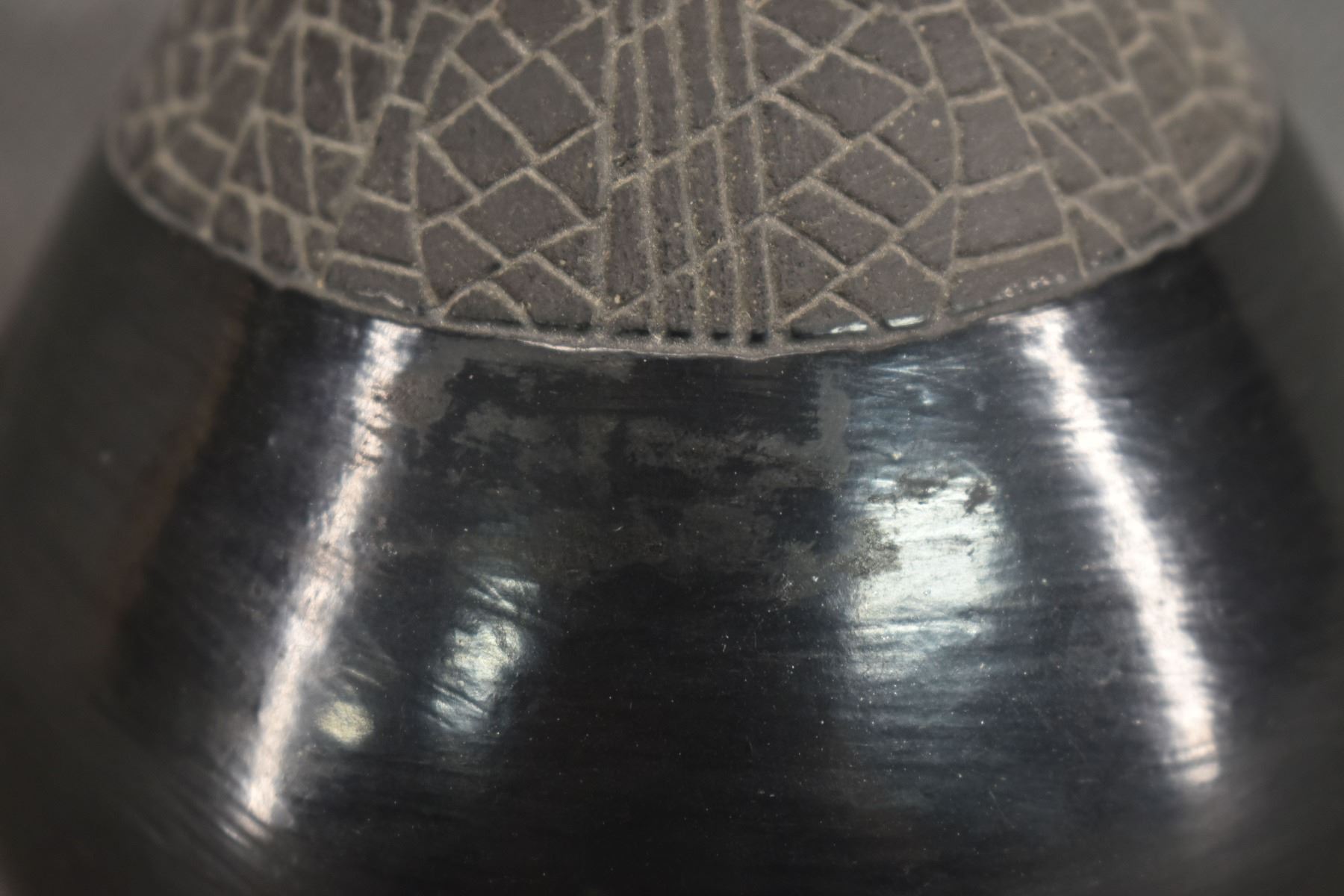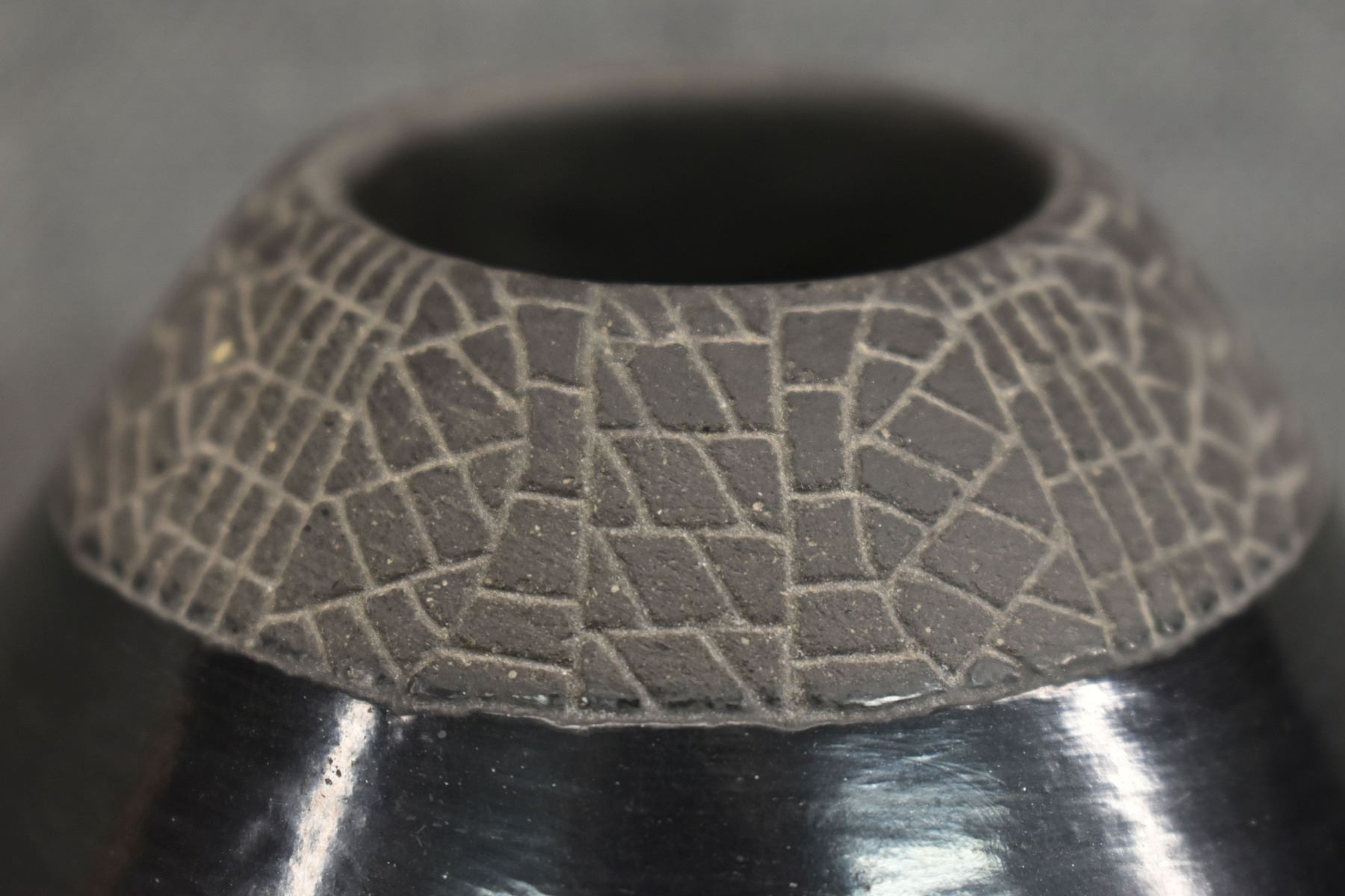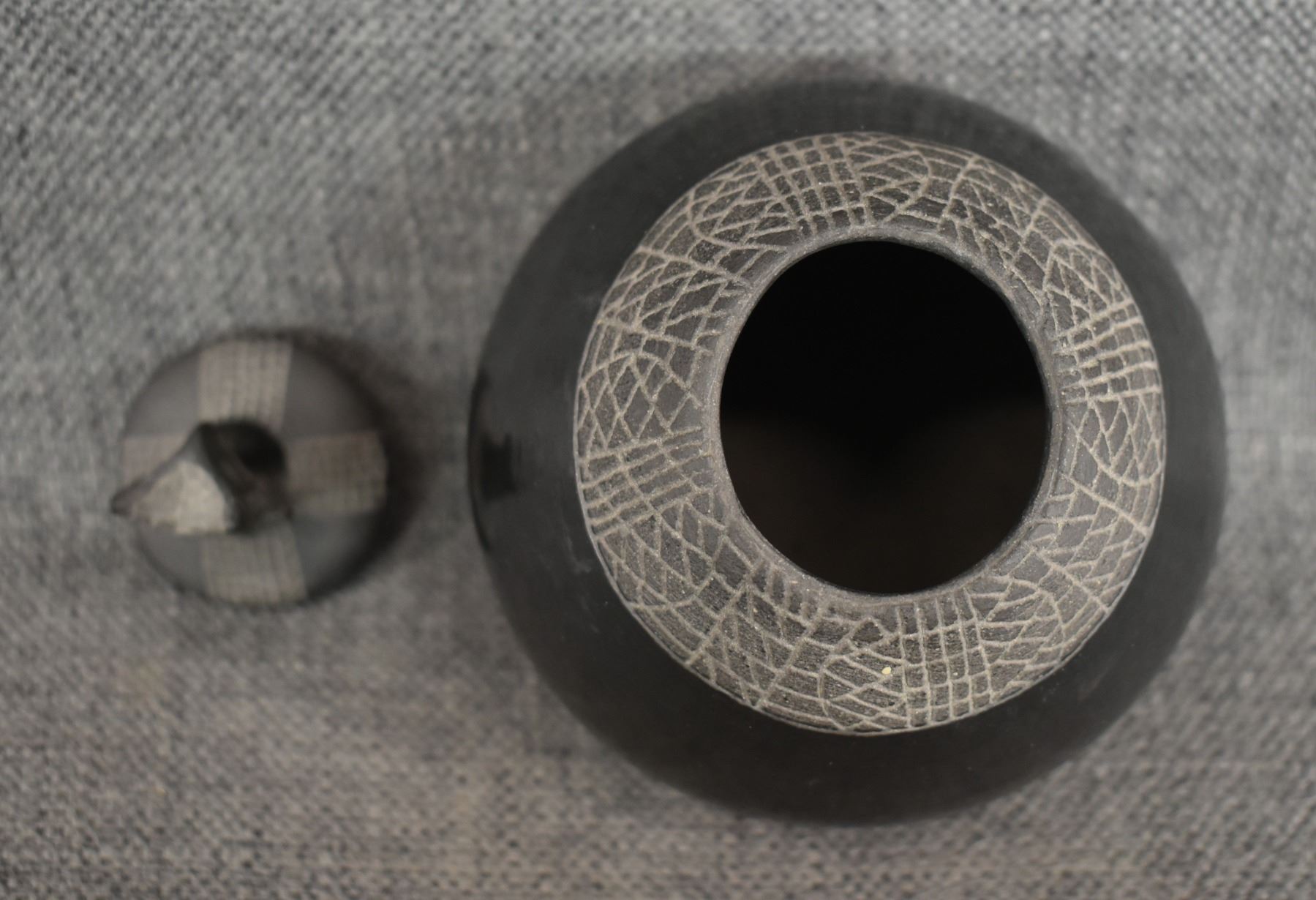 1974 Santa Clara, hand coiled with carved design and owl effigy lid signed JoAnn for JoAnn Million 5" x 4"