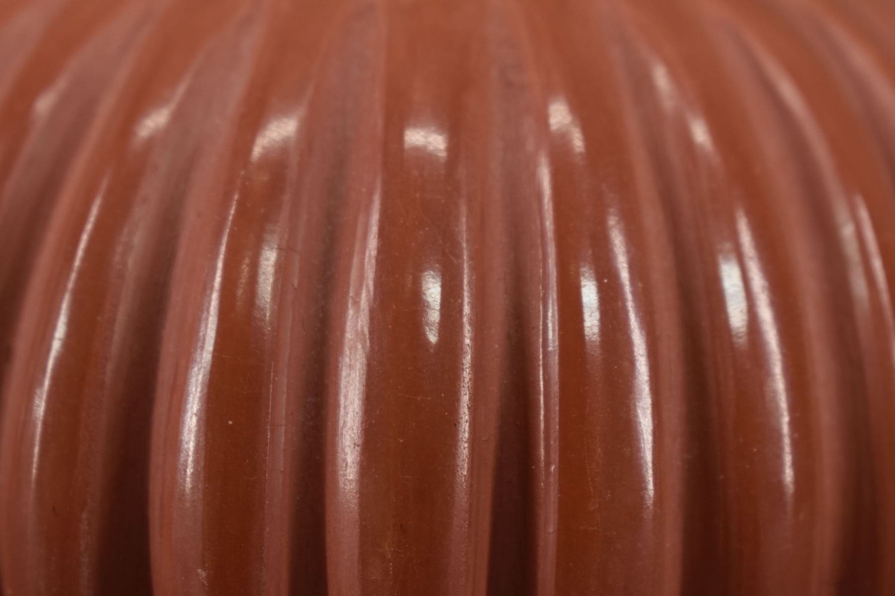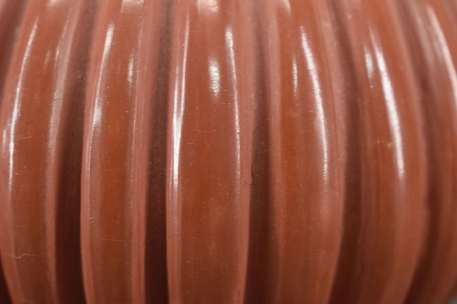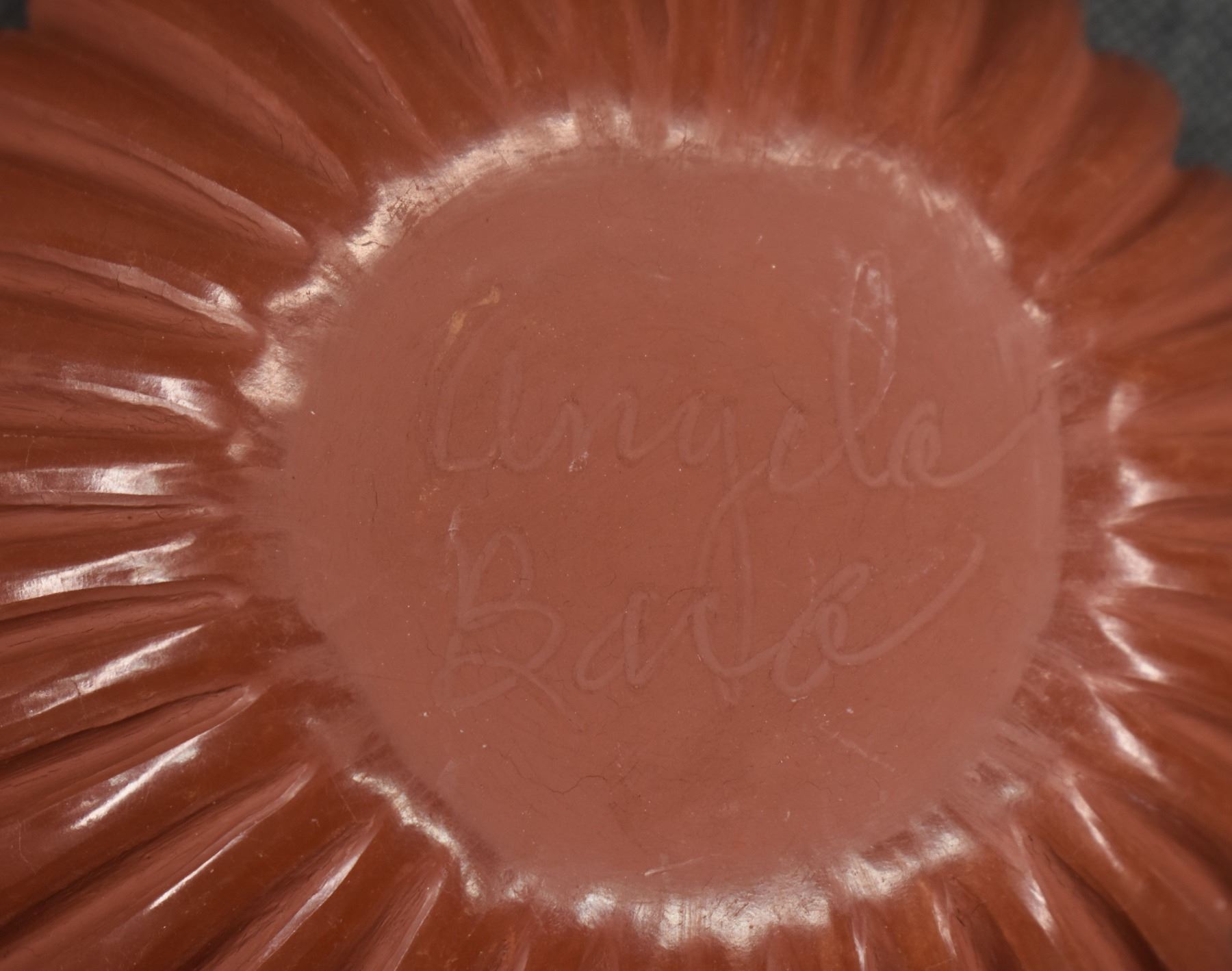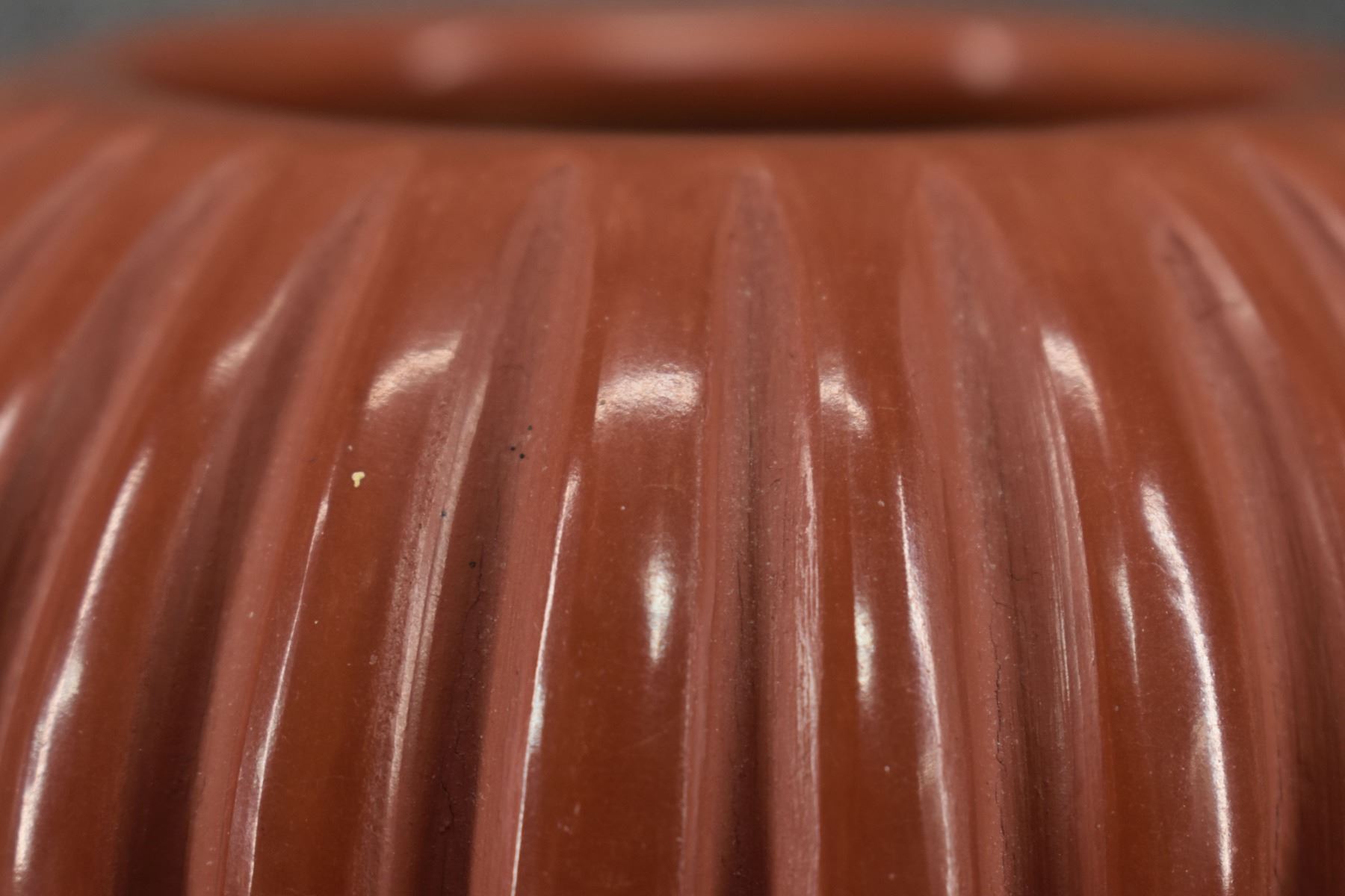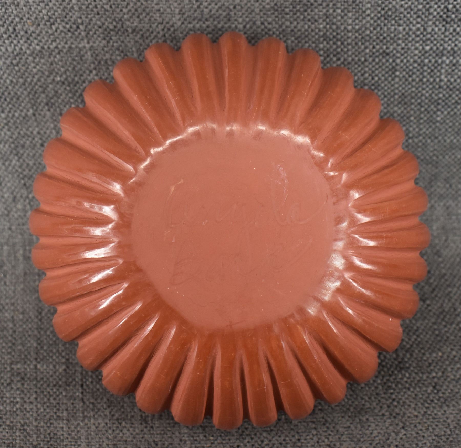 1980's Santa Clara. Hand coiled melon design pottery bowl signed Angela Baca. 4'' x 6.5''