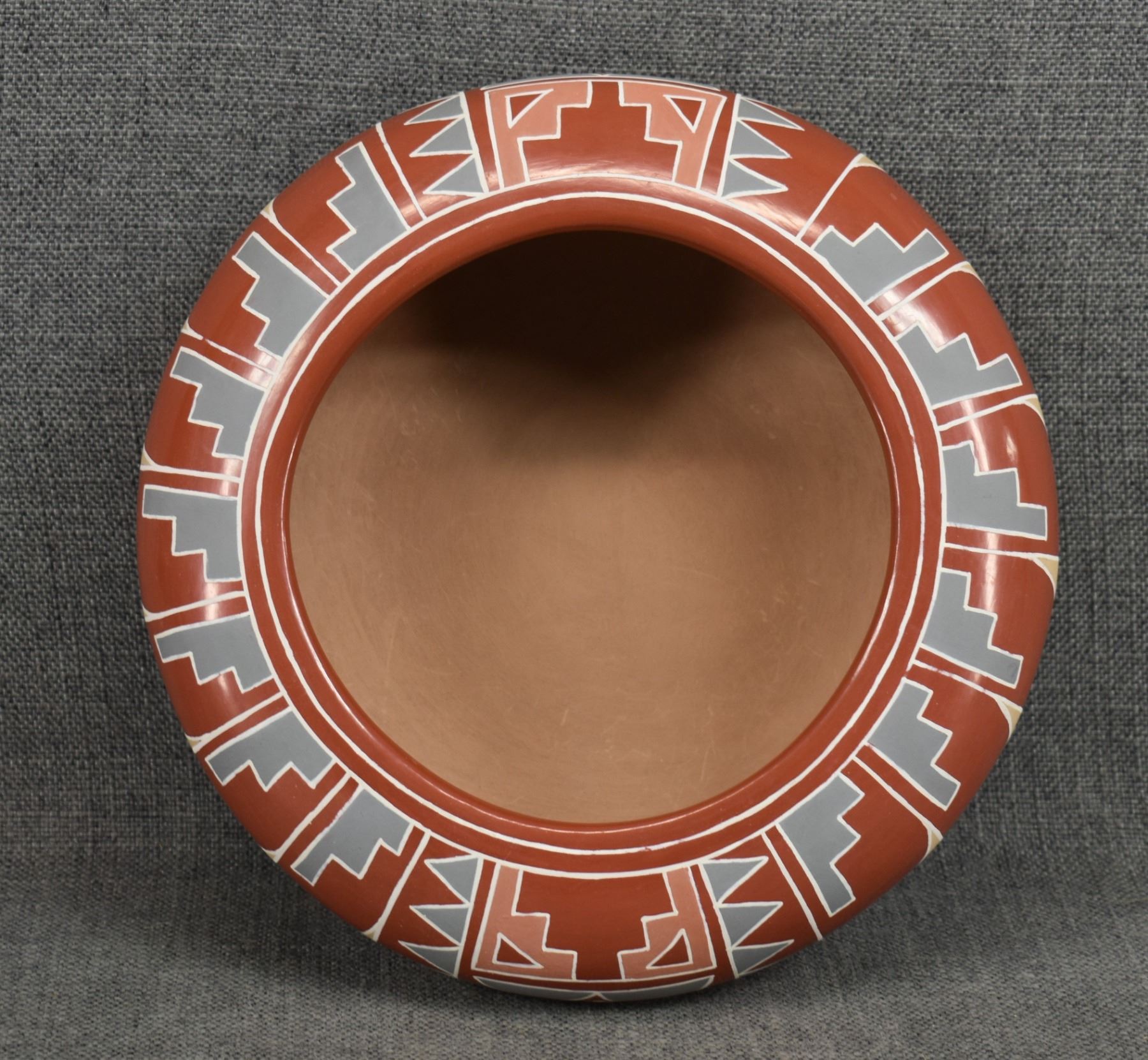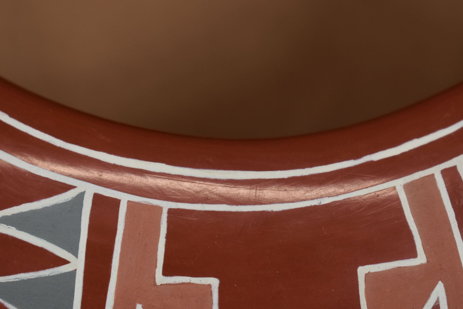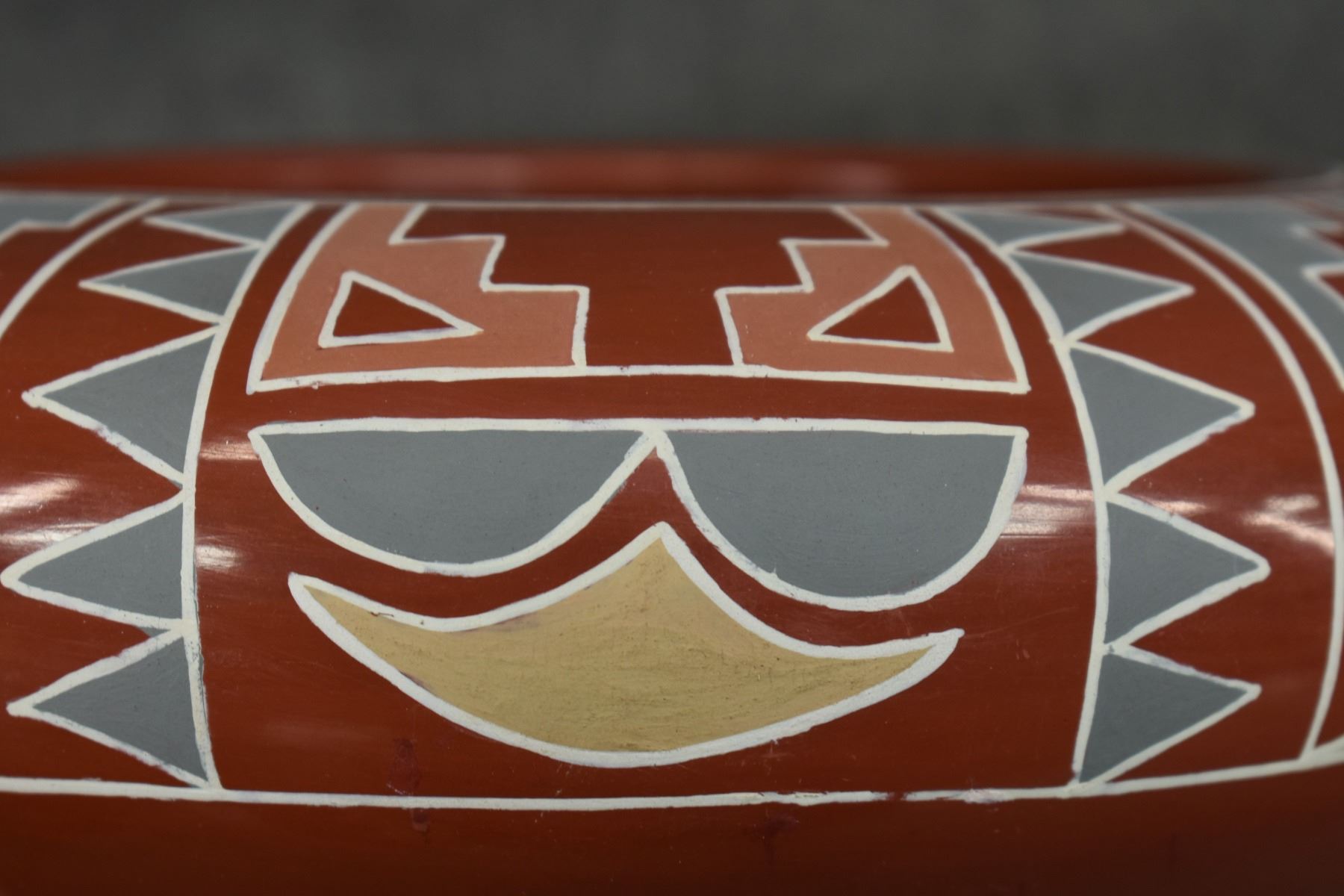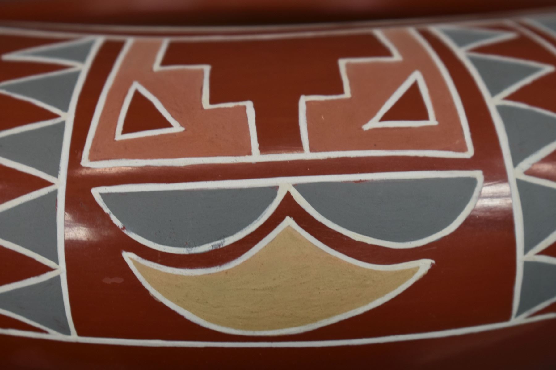 1960s 70s Santa Clara. Hand coiled and painted Polychrome design signed Belen Tapia 4" x 10"