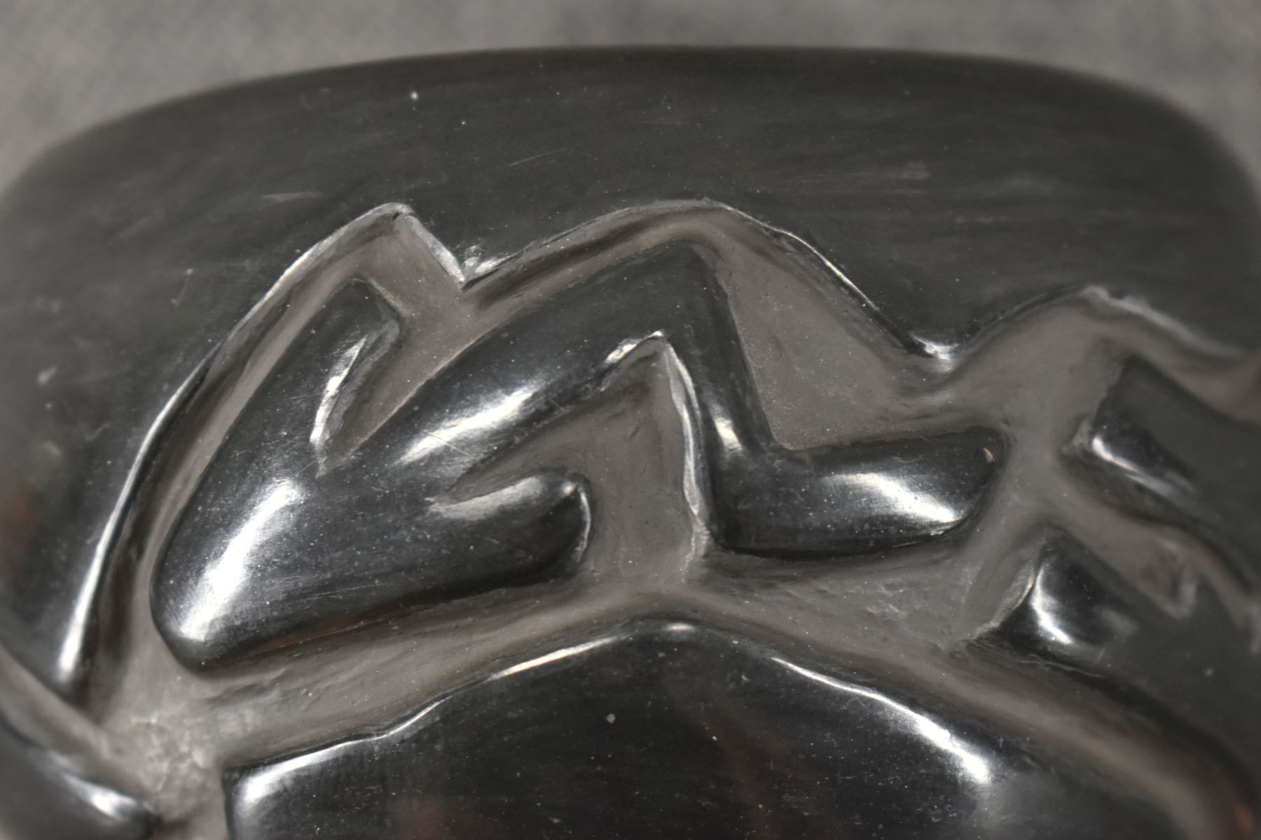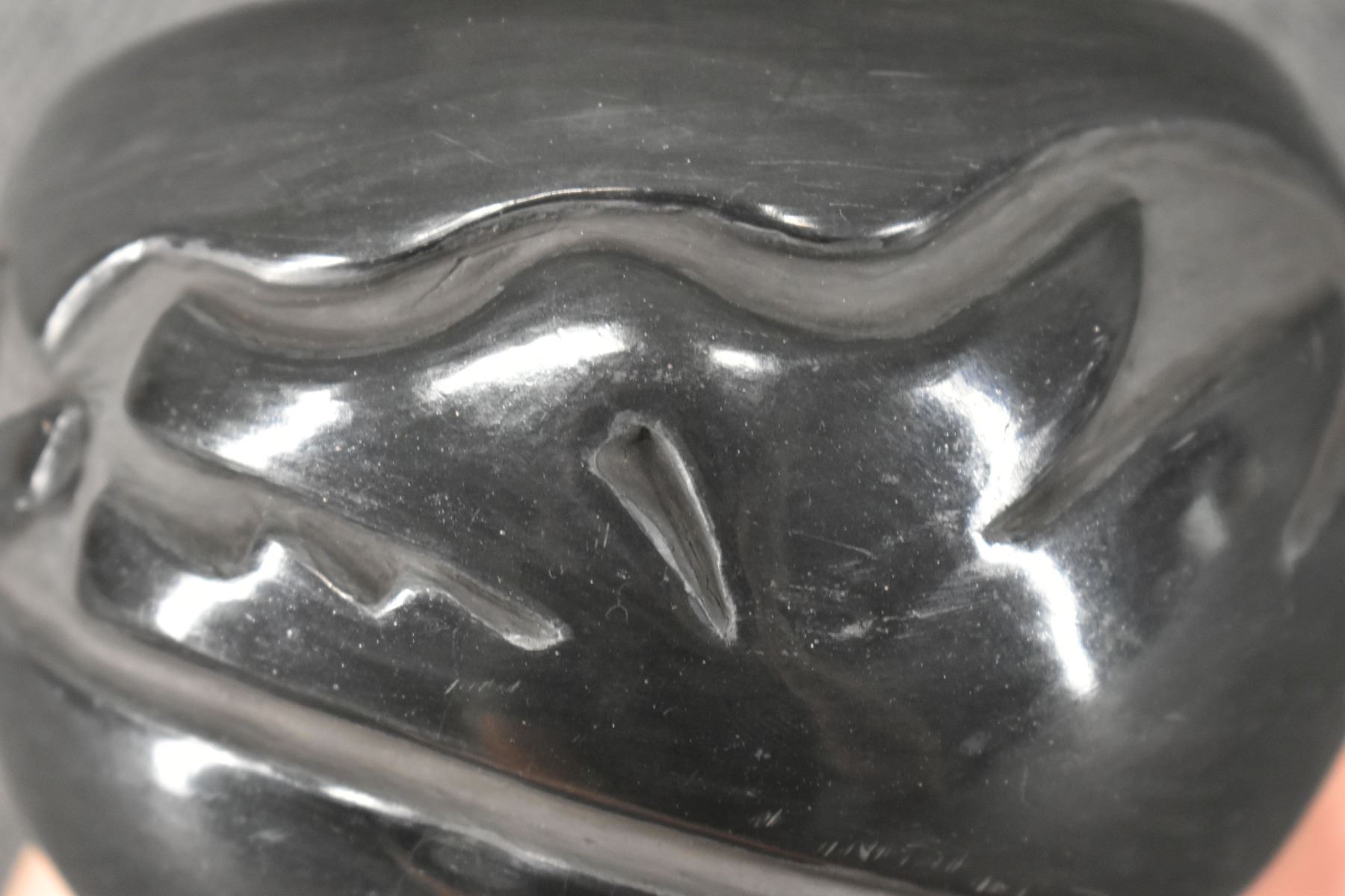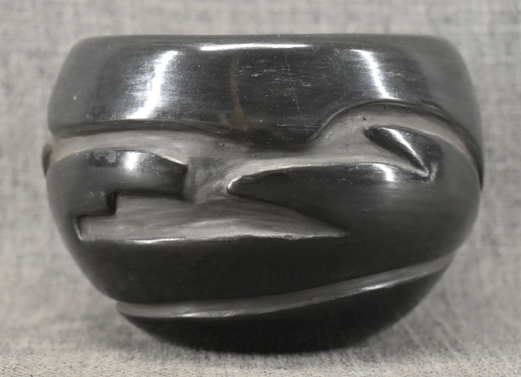 1980's Santa Clara, hand coiled with carved avanyu design by Billy Cain, 3.25" x 4.75"