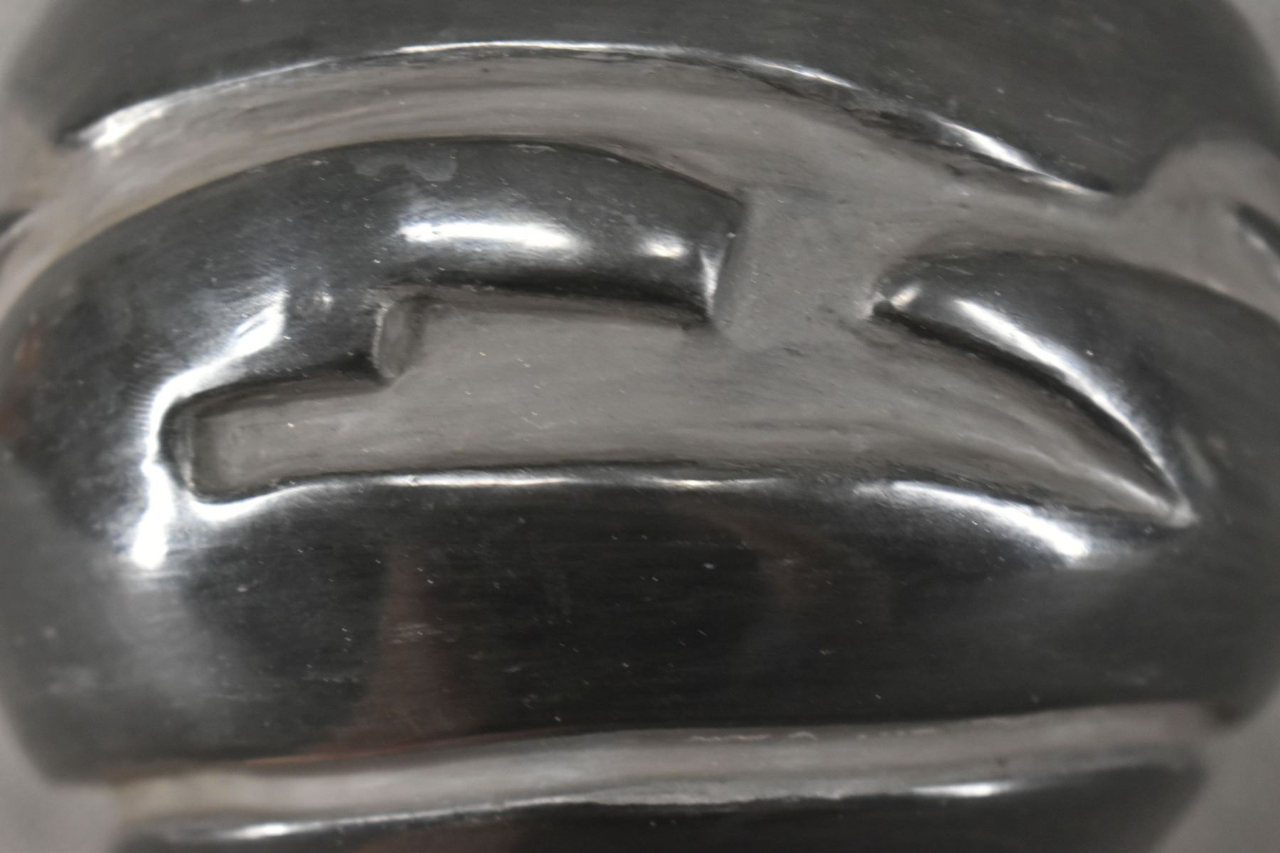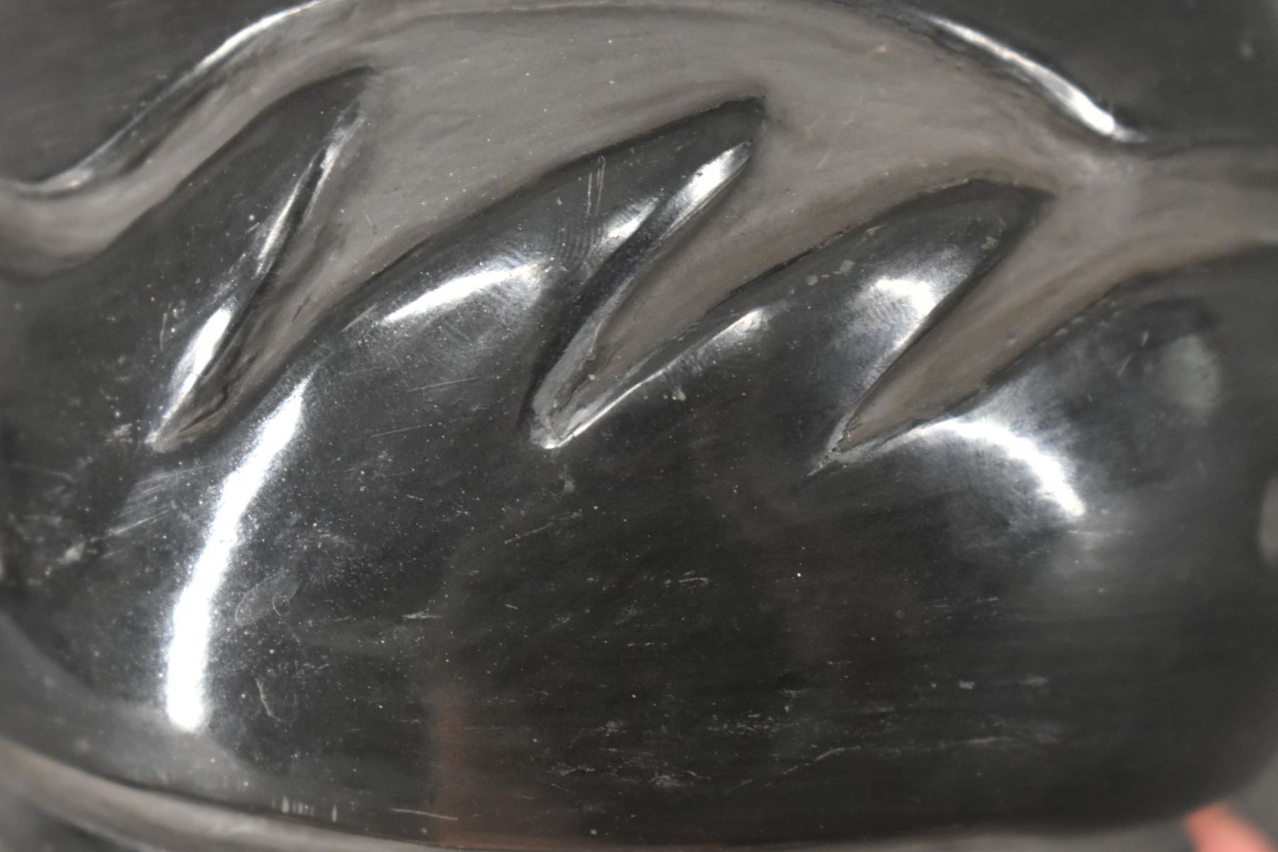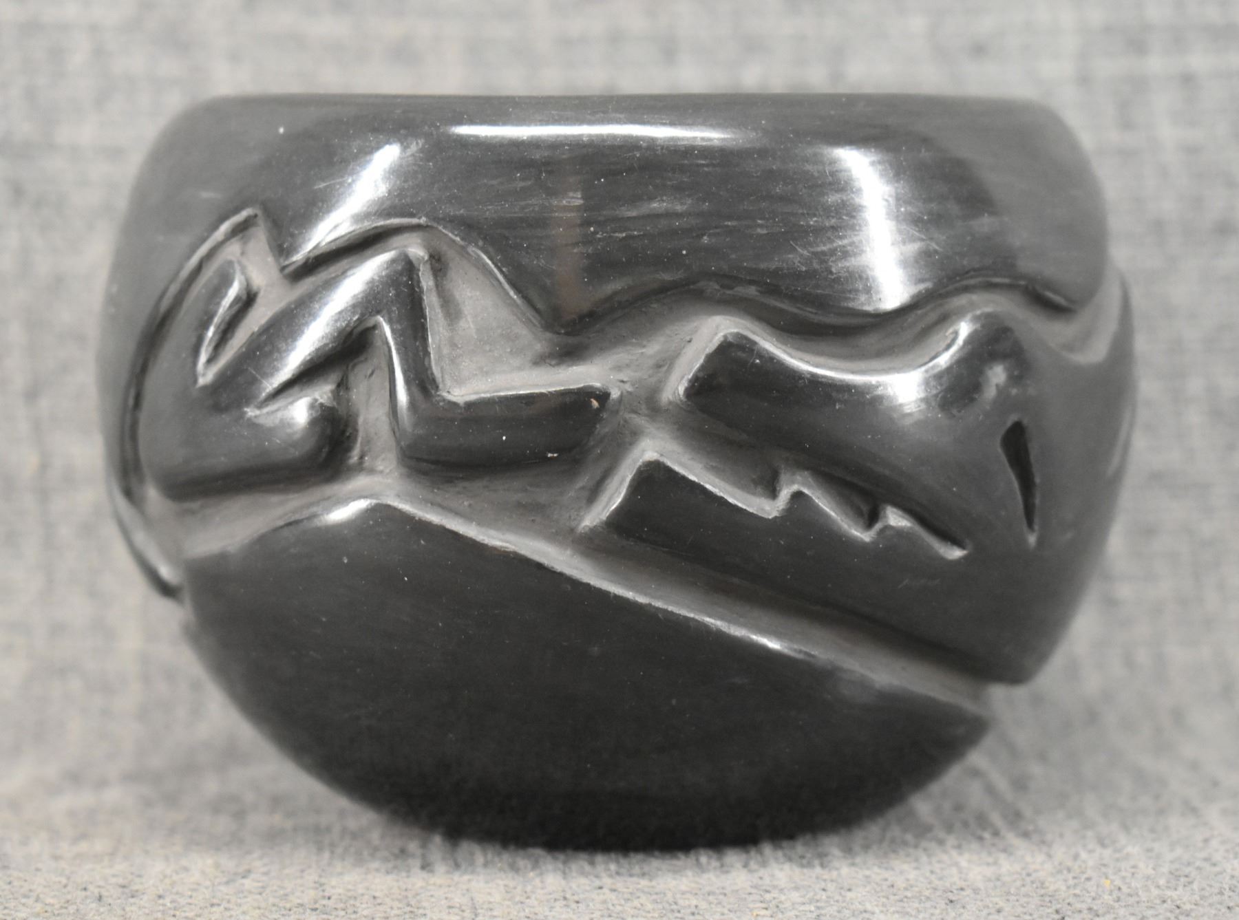 1980's Santa Clara, hand coiled with carved avanyu design by Billy Cain, 3.25" x 4.75"