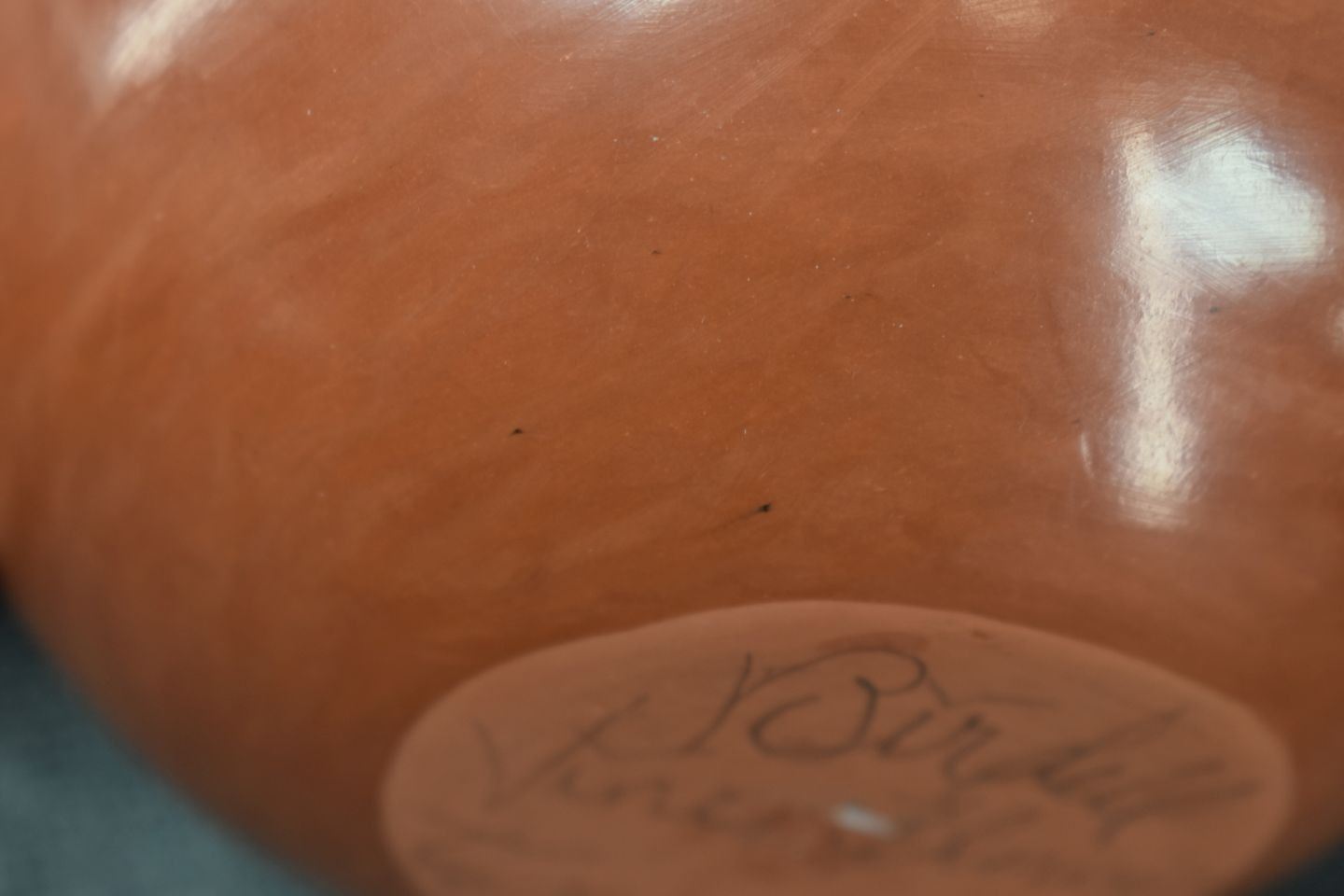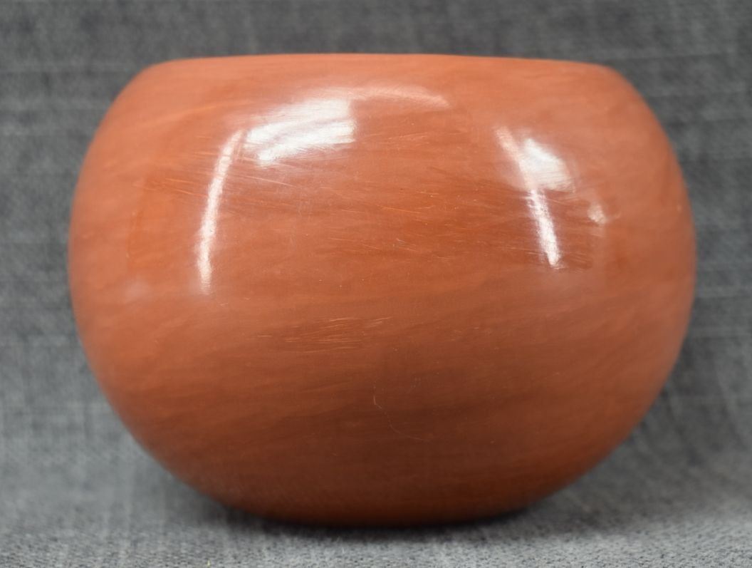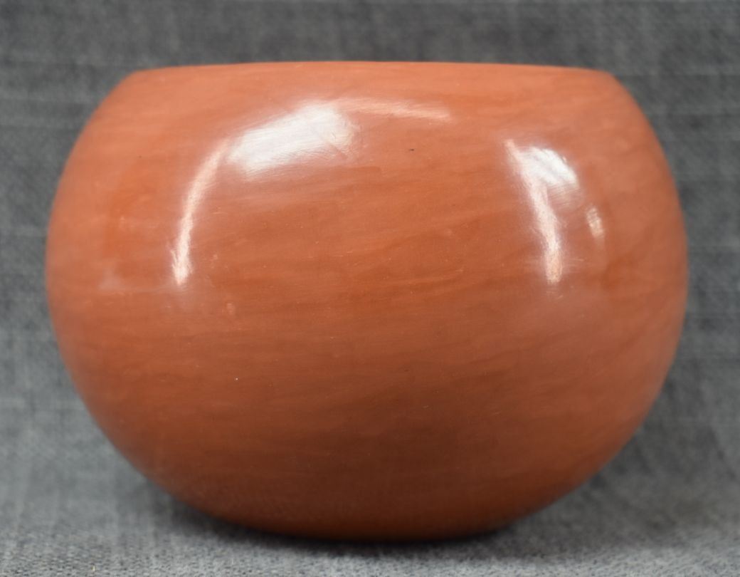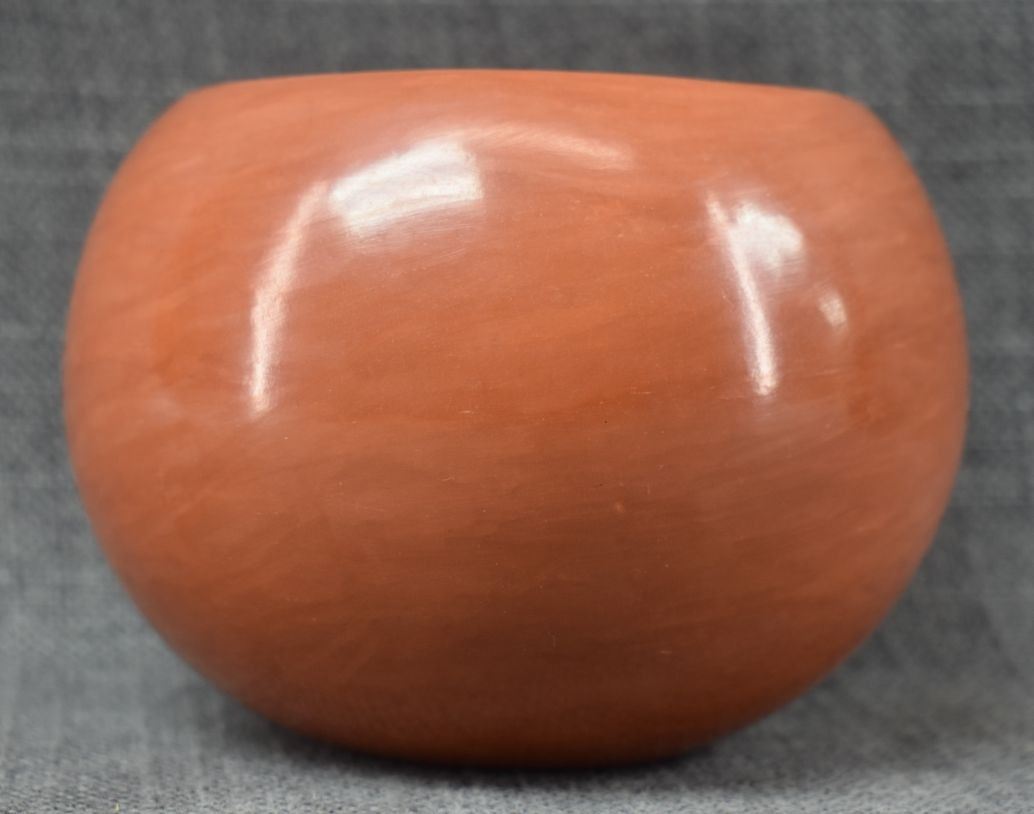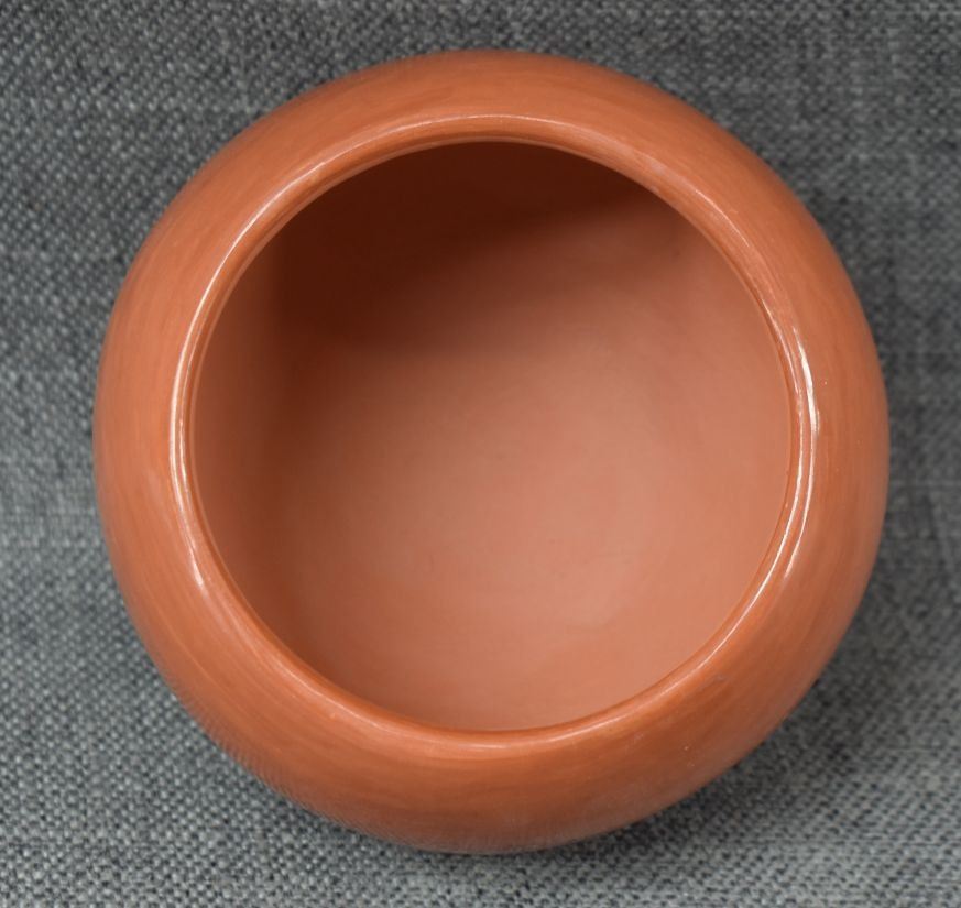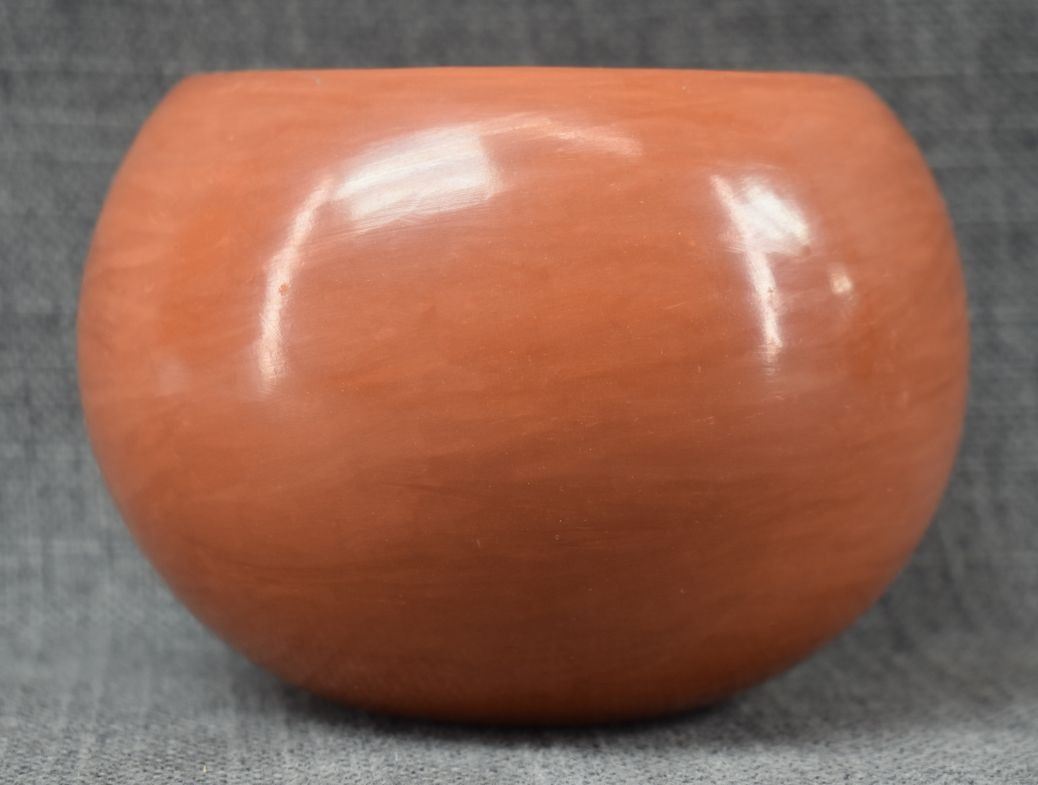 1980's Santa Clara. Hand coiled and polished pottery bowl, signed Birdel Vine Flower, 4'' x 5.5''