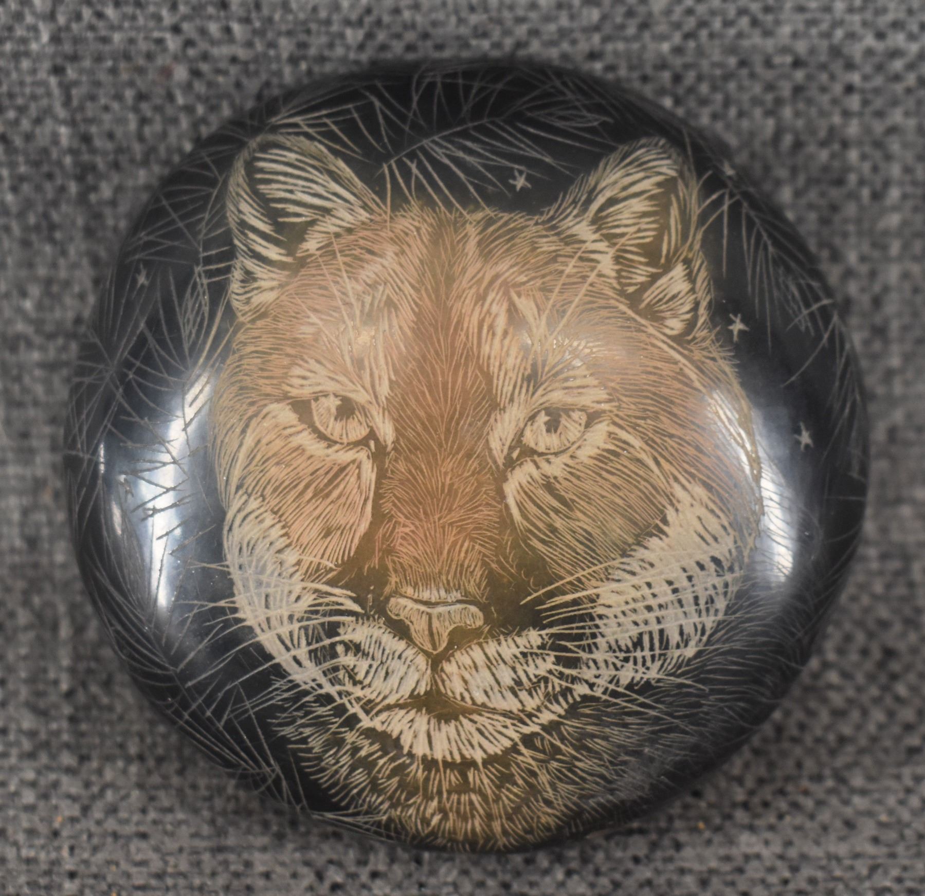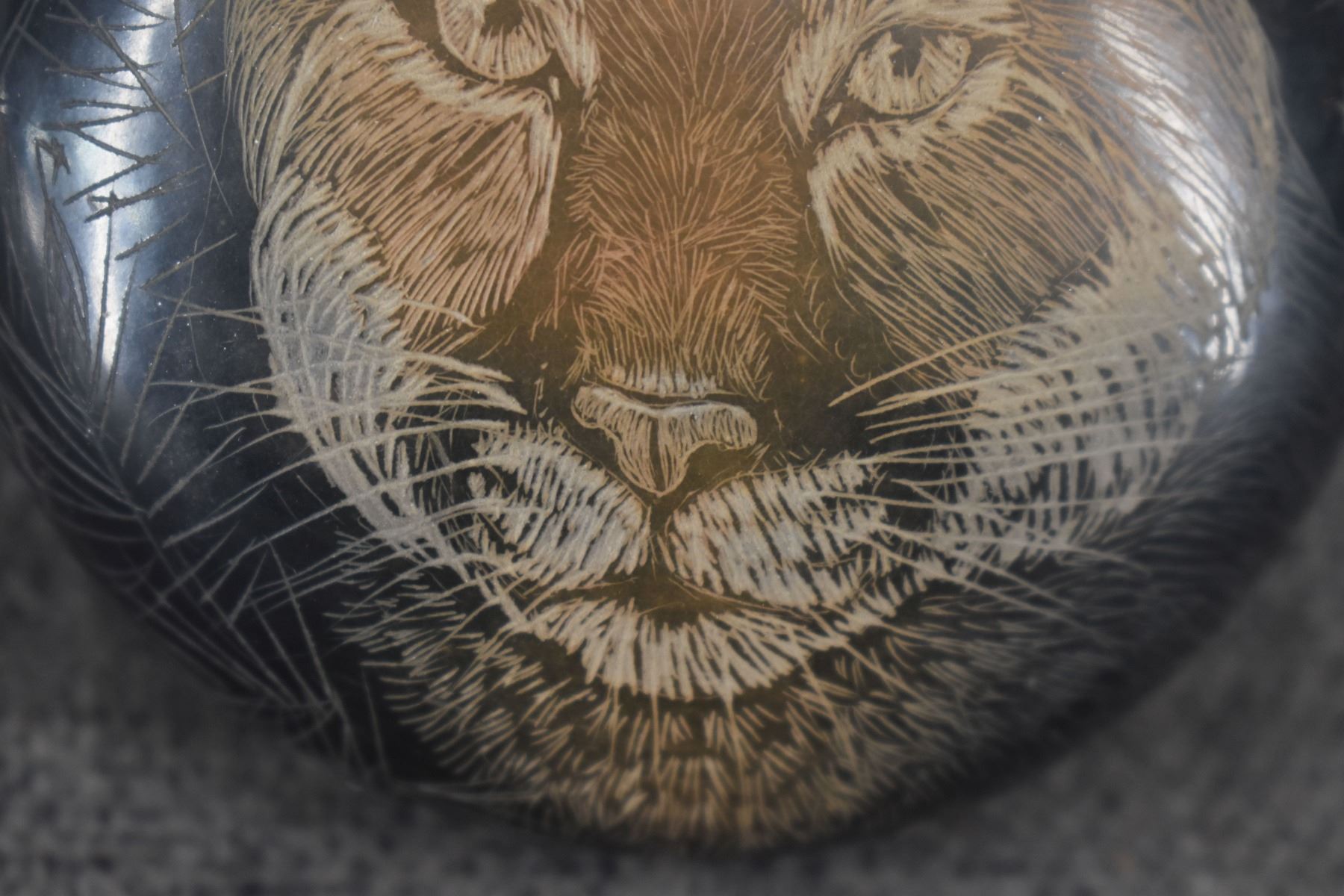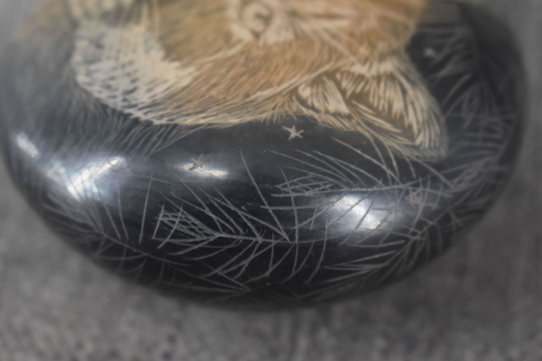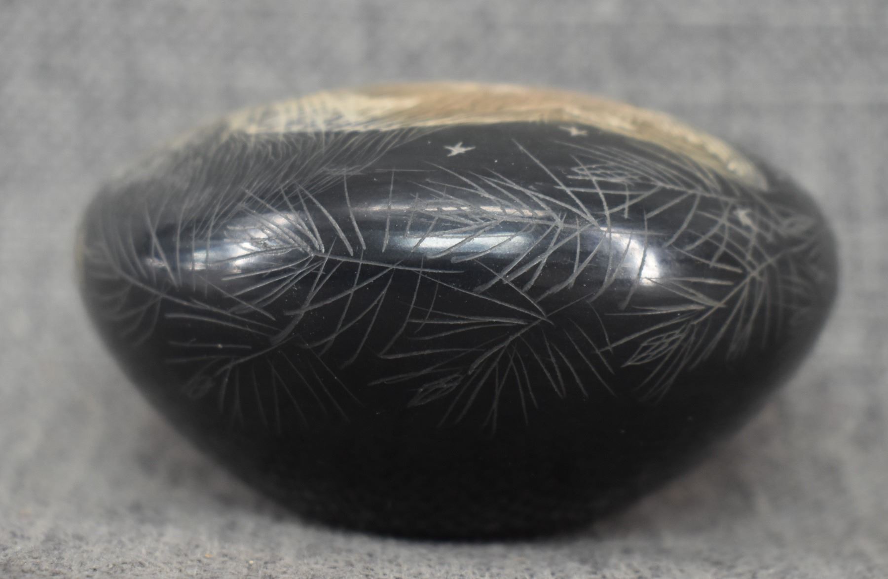 2004 Santa Clara. Hand coiled and sgraffito design pottery bowl. Signed Makowa Ko Naranjo. 1.75'' x 3.5''