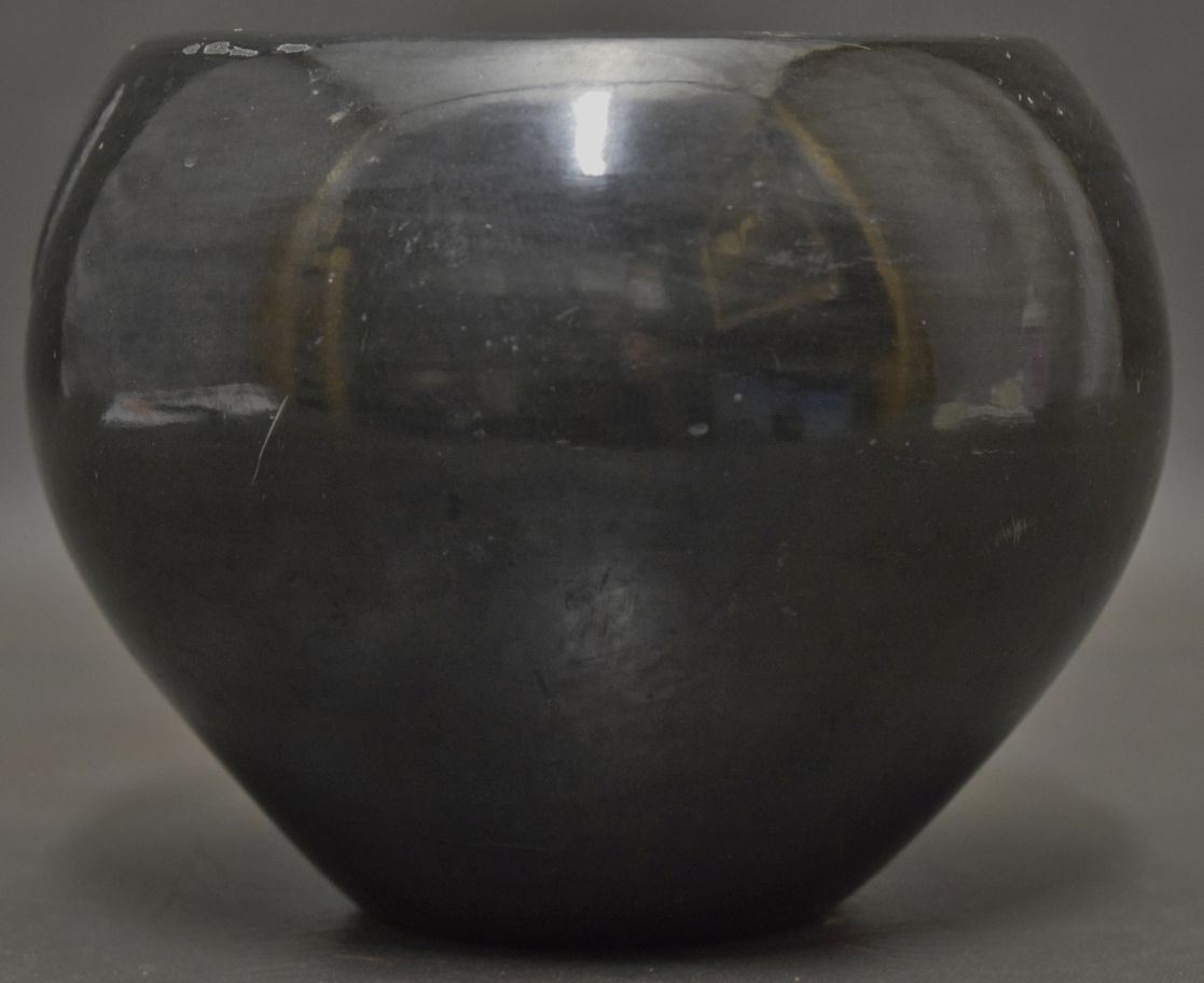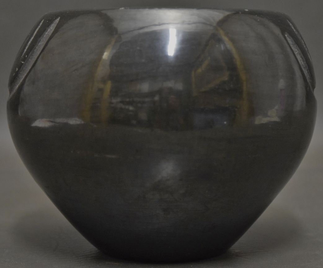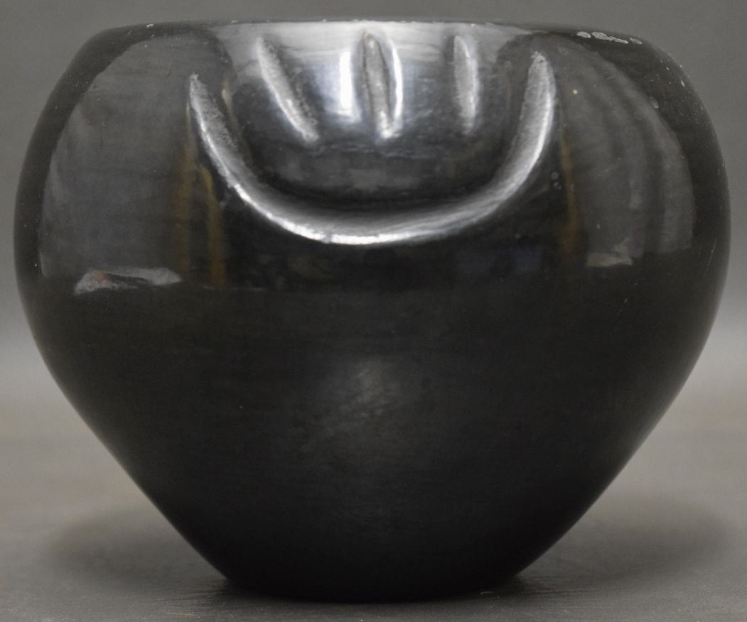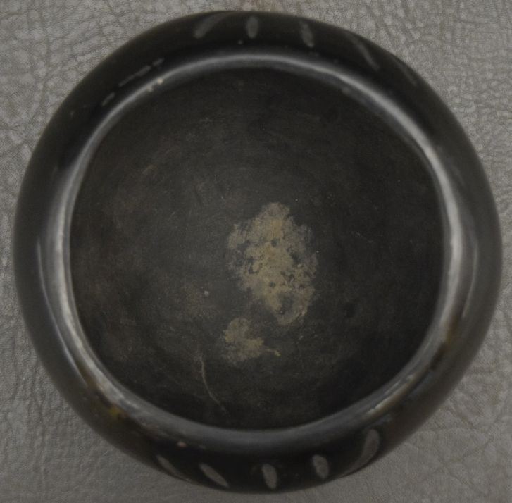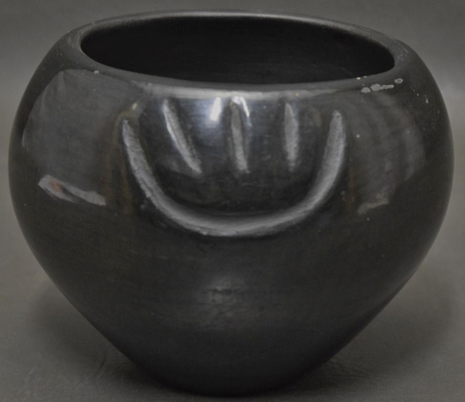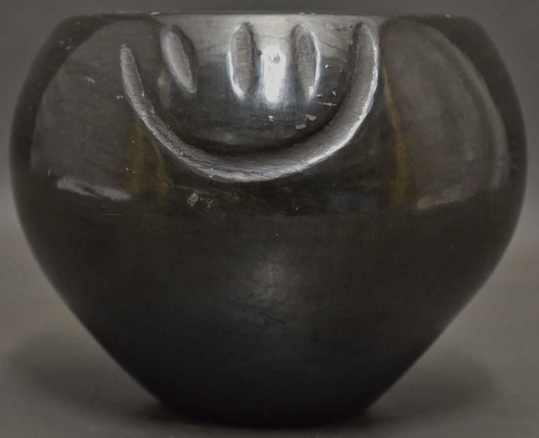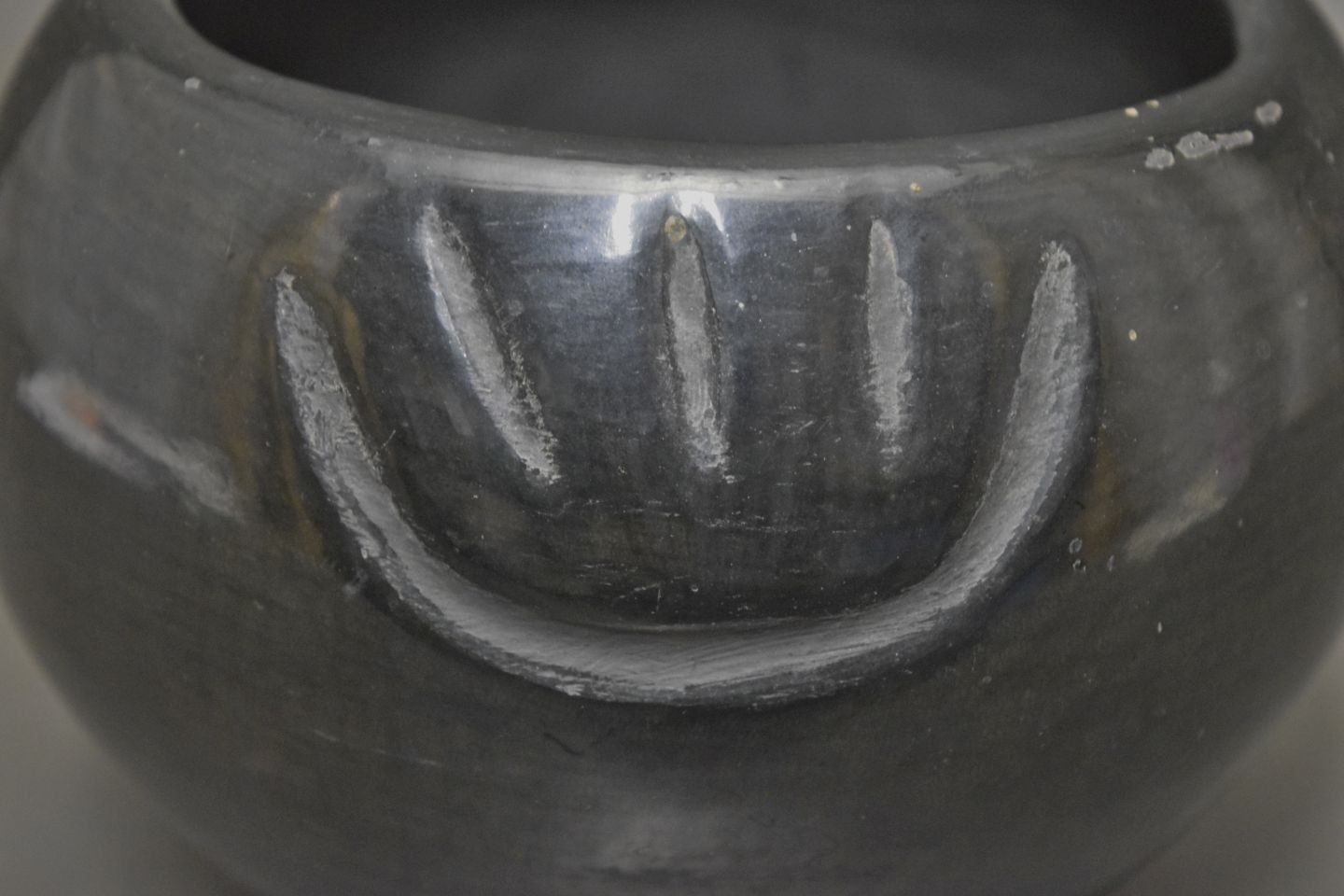 1960's polished black ware pottery bowl with carved bear paw design. 4'' x 6''