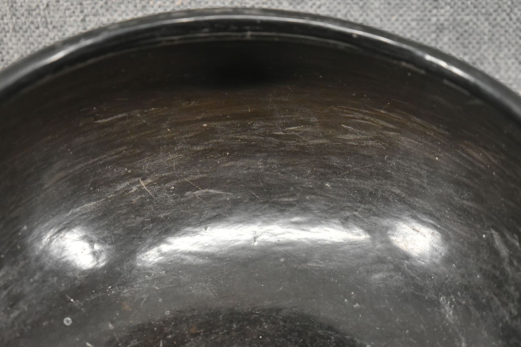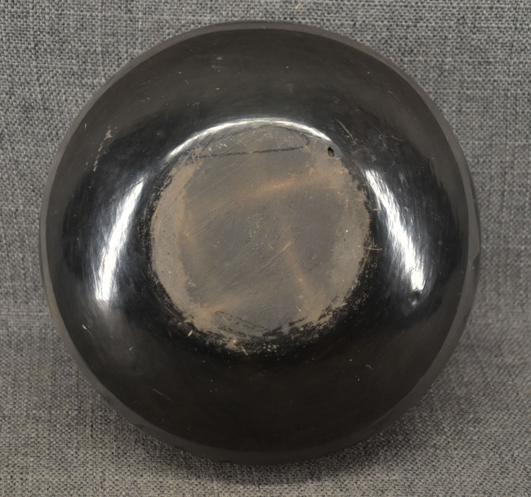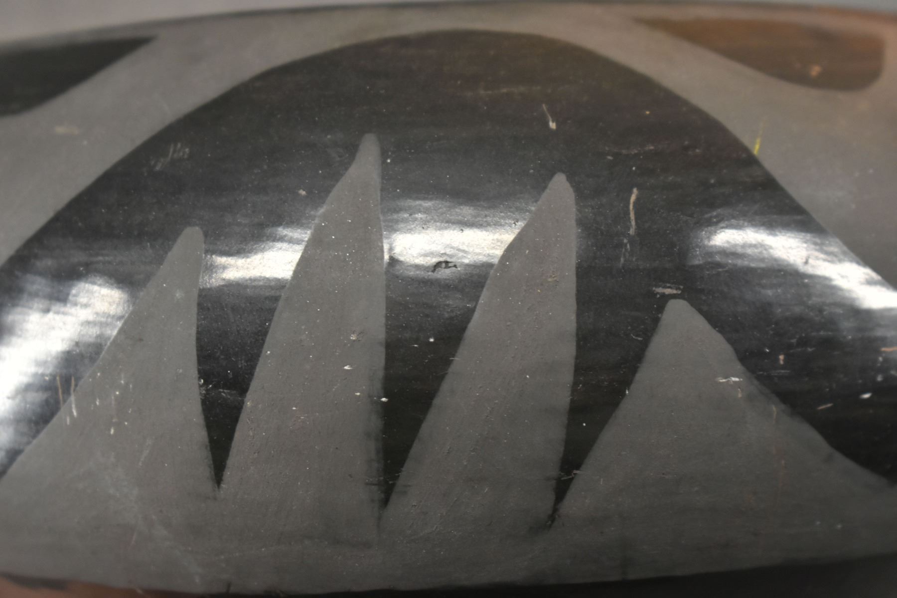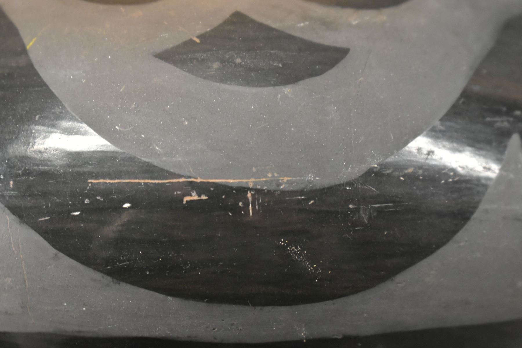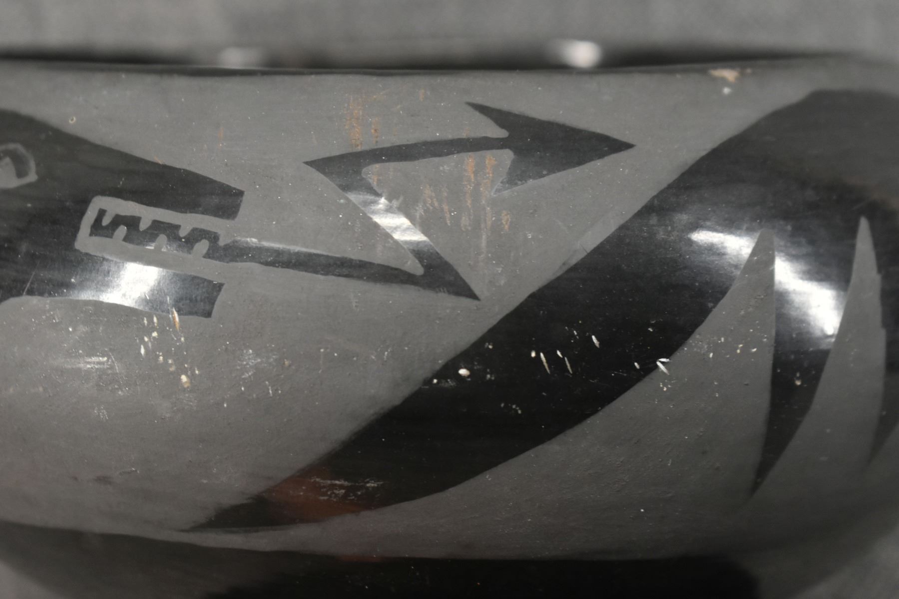 1980's Santa Clara, hand coiled with matte on black painted avanyu design 3.75" x 8"