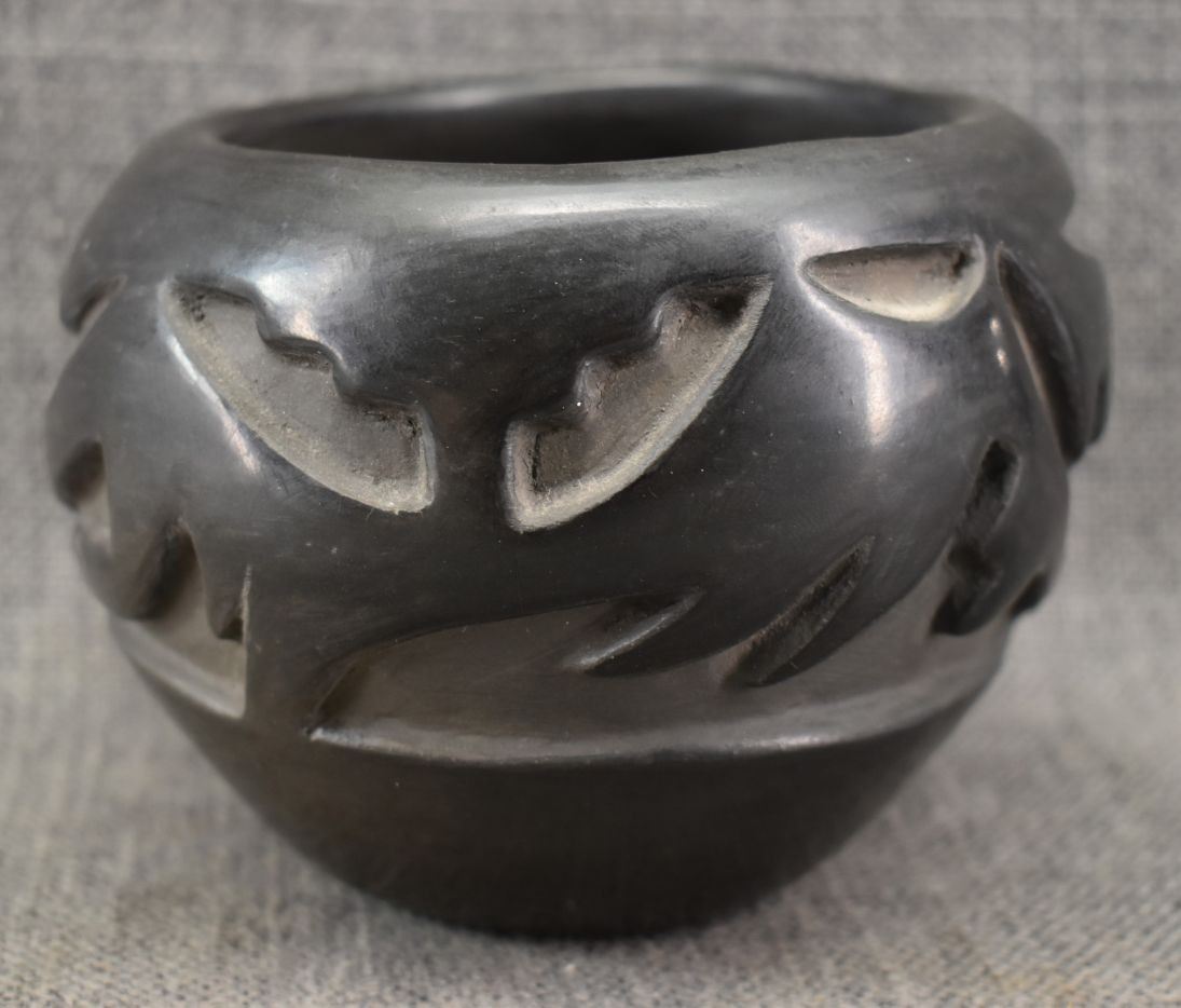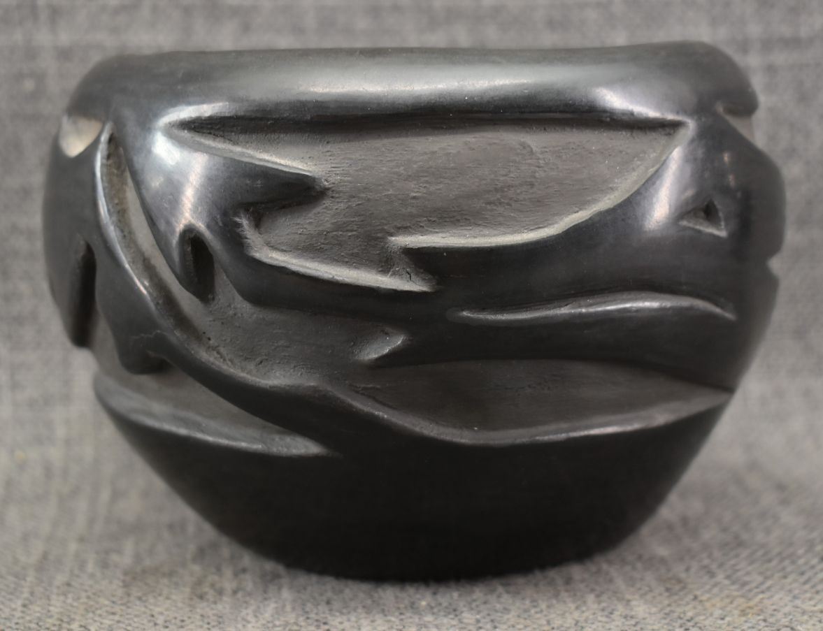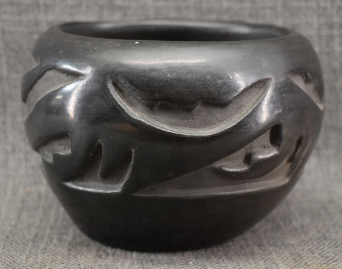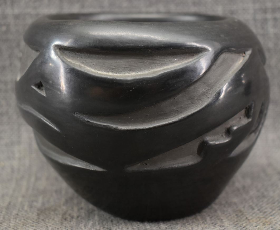1970's Santa Clara, hand coiled with carved avanyu design by Frances Naranjo Salazar 4.25" x 5.75" x 5.25"