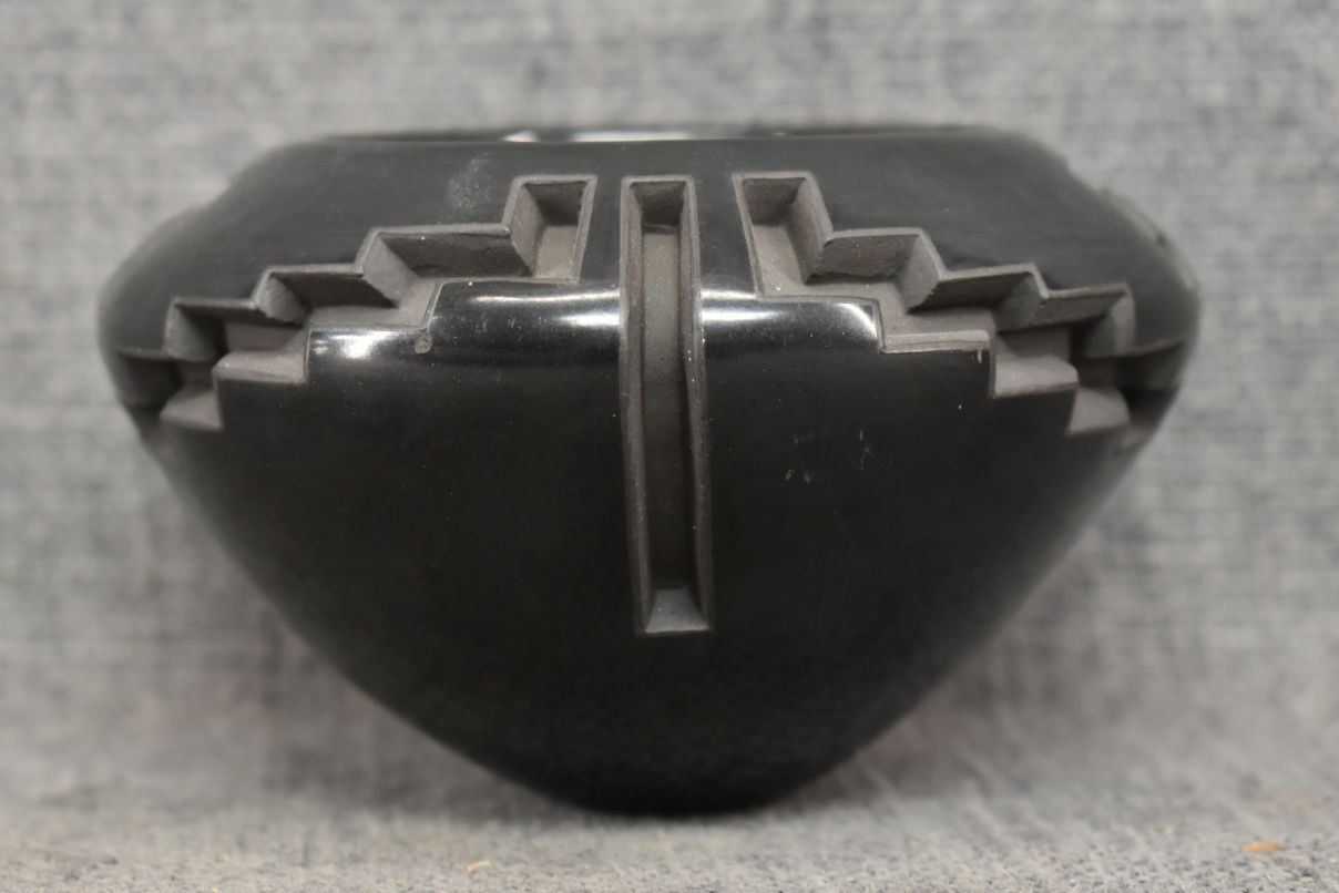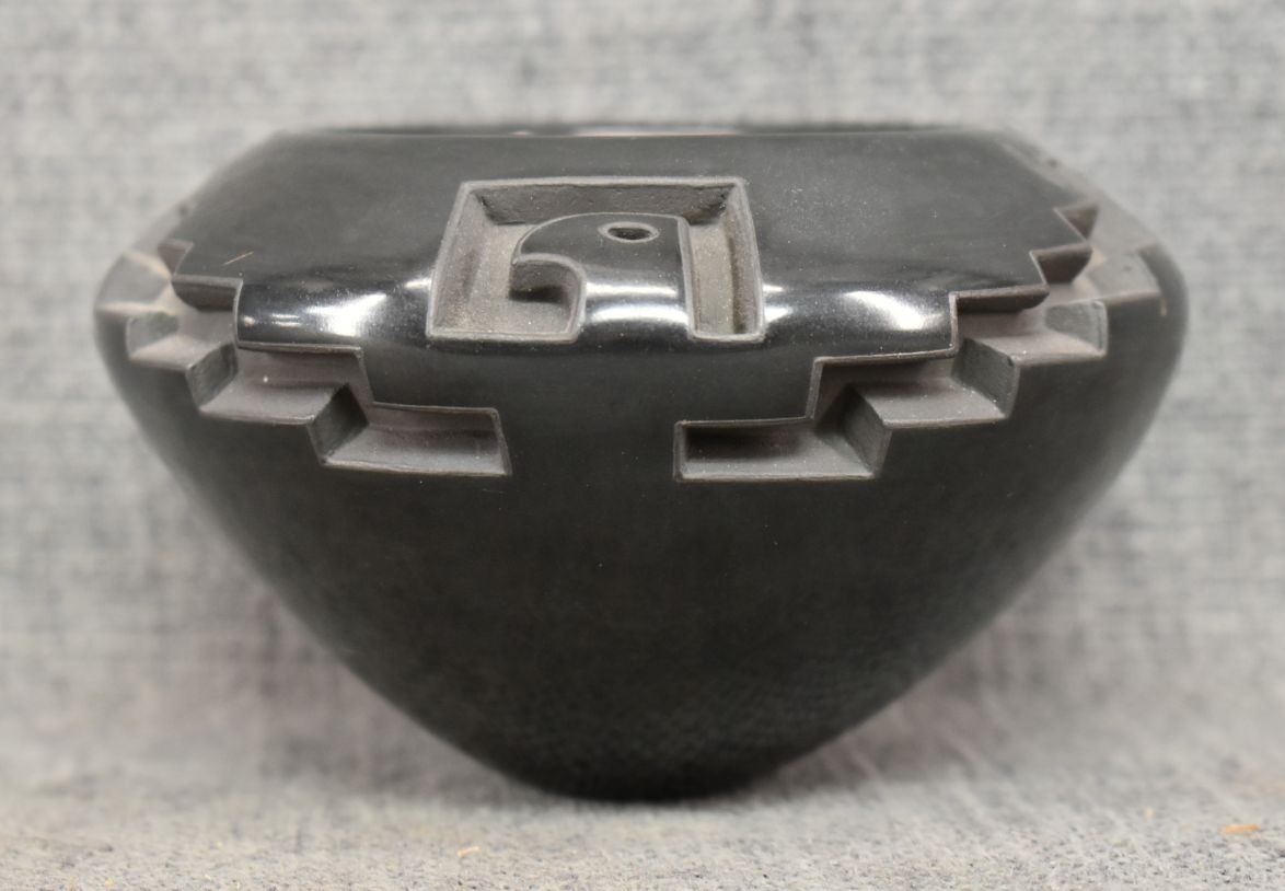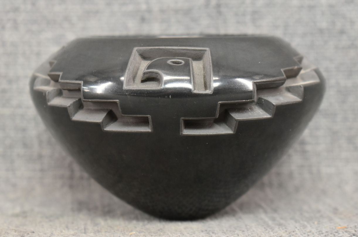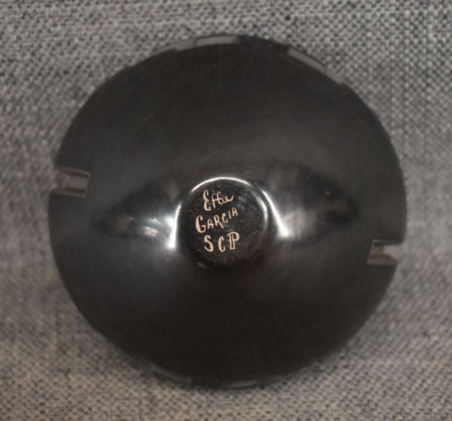 1980's Santa Clara, hand coiled with carved design signed Effie Garcia 2.75" x 4.25"