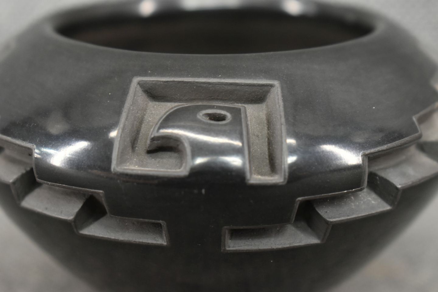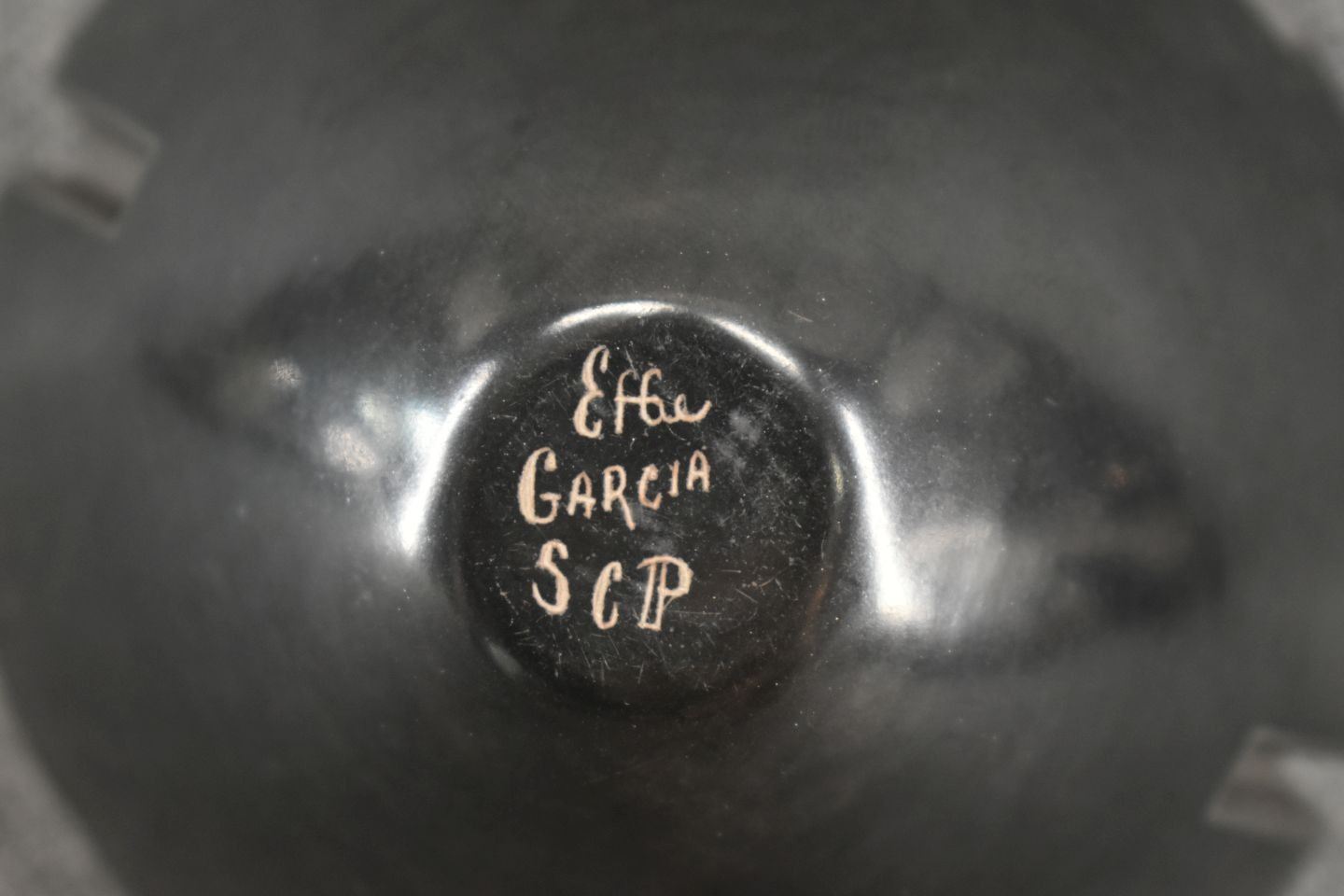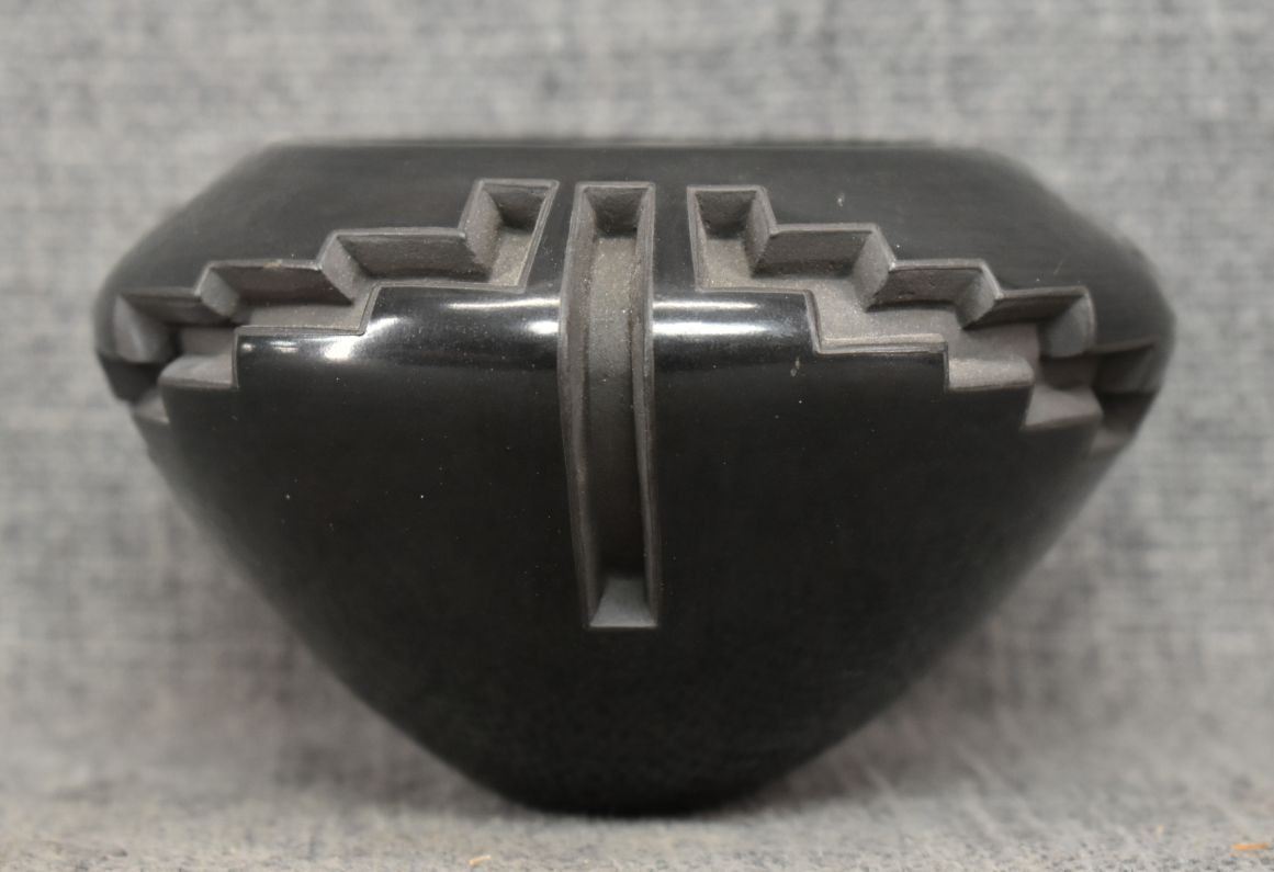 1980's Santa Clara, hand coiled with carved design signed Effie Garcia 2.75" x 4.25"