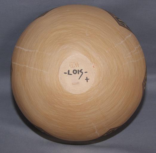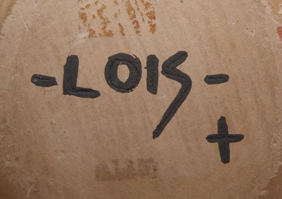 1990s busy multi-color design has stain on side signed Lois Gutierrez, 8.5" x 10.5"