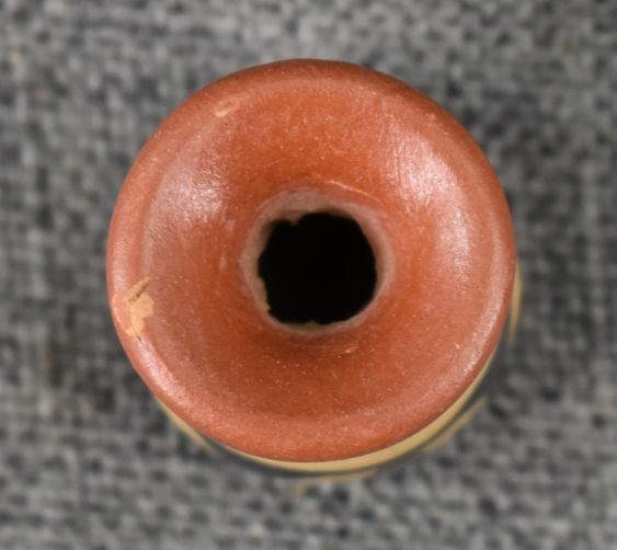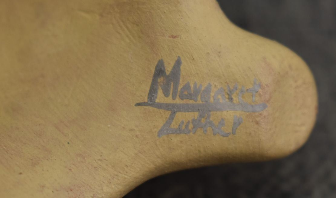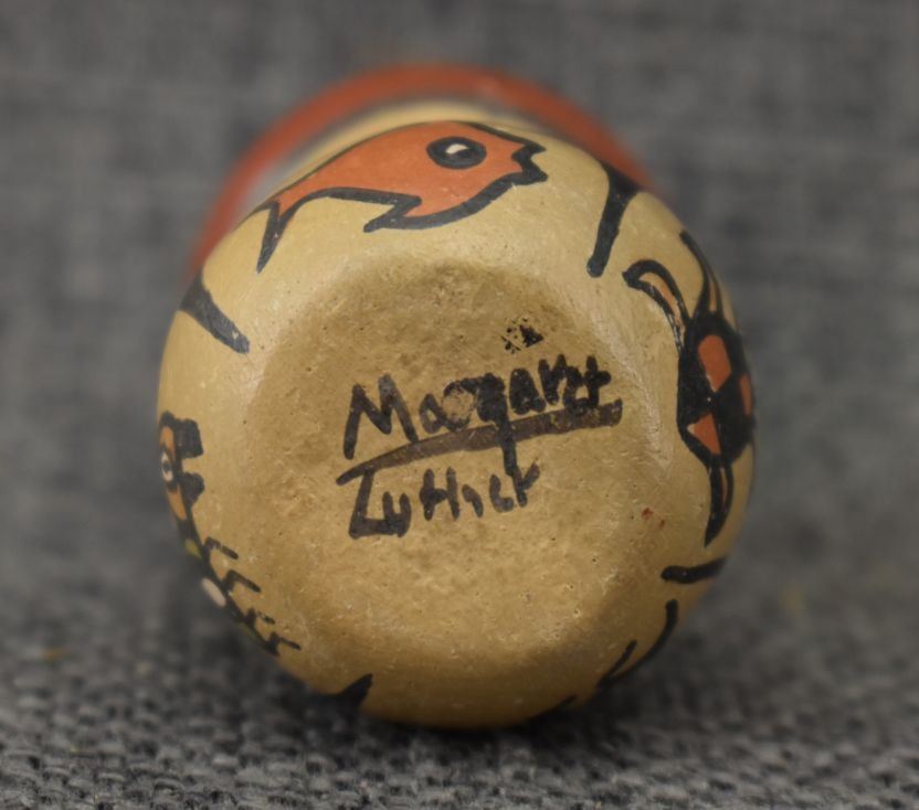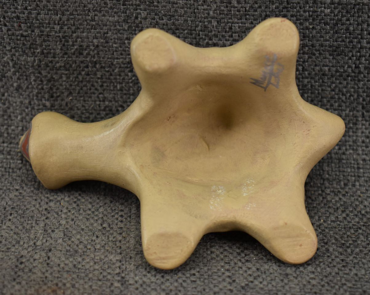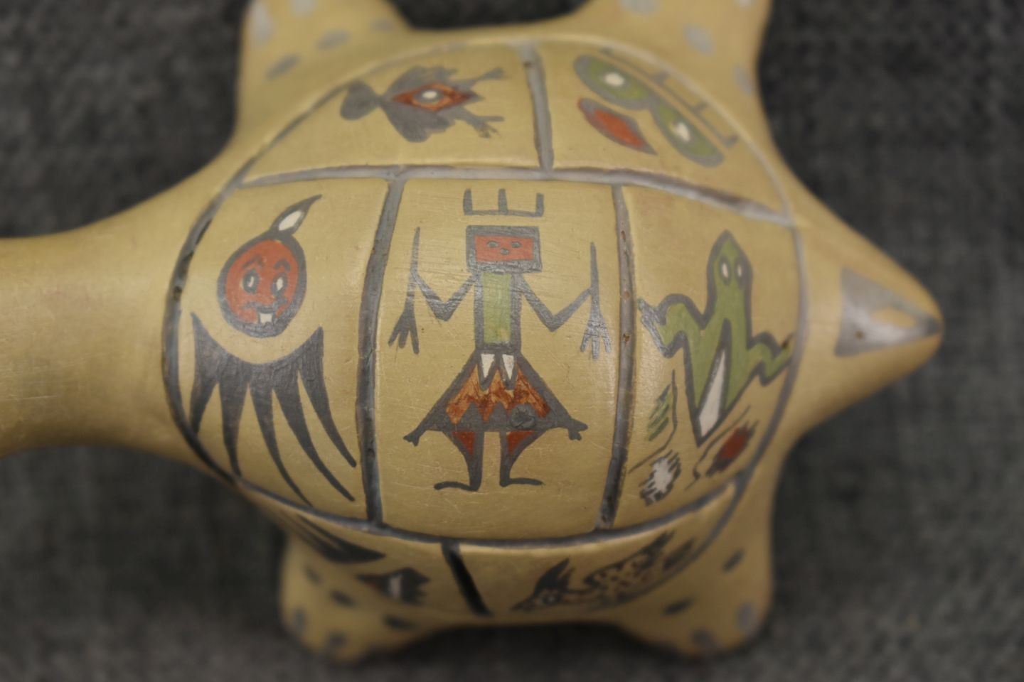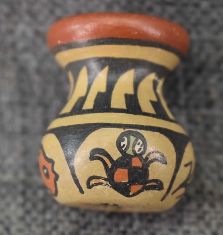 1970's Santa Clara, hand made turtle with painted design signed Margaret and Luther 2.25" x 5" x 3" and vase 1.5" x 1"