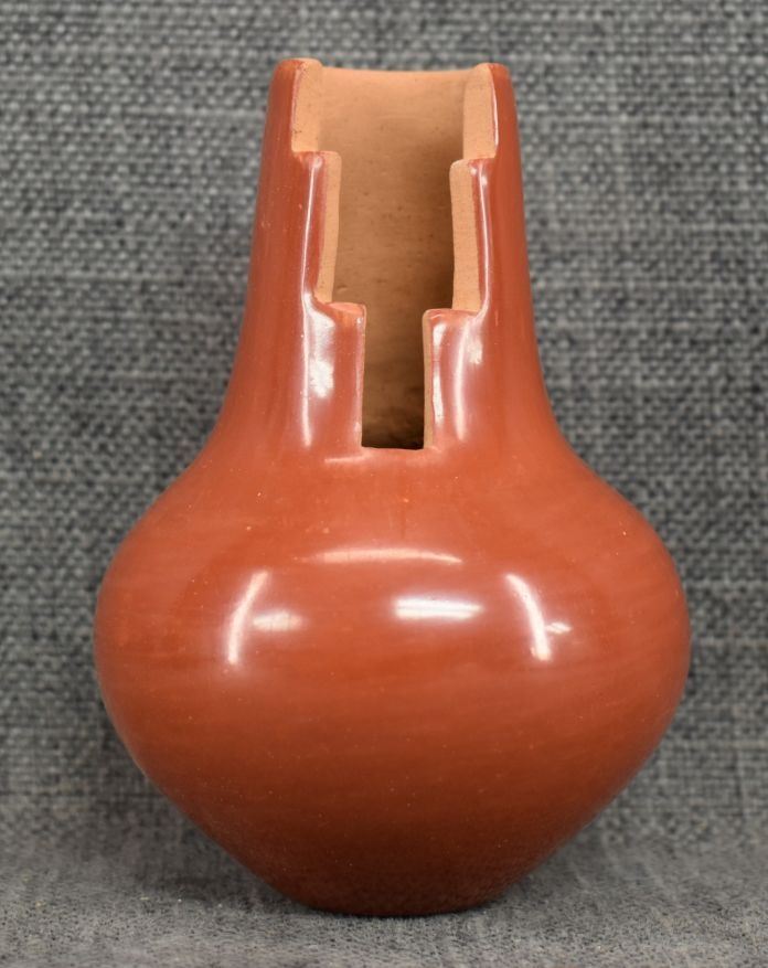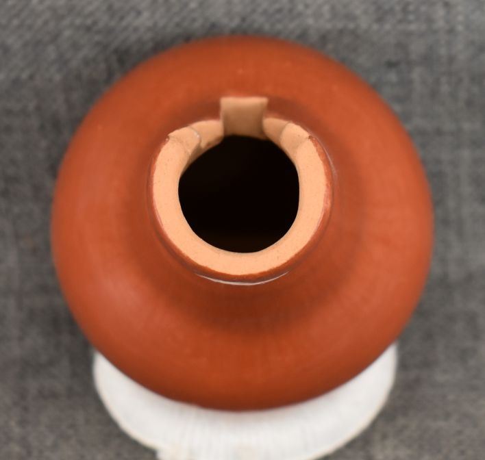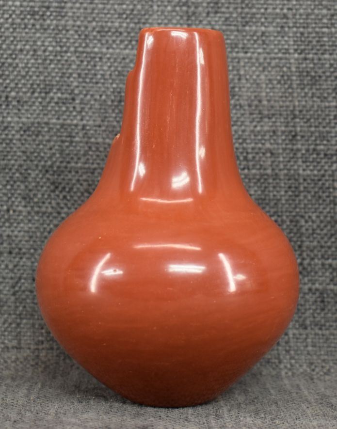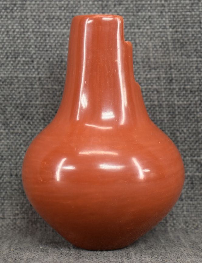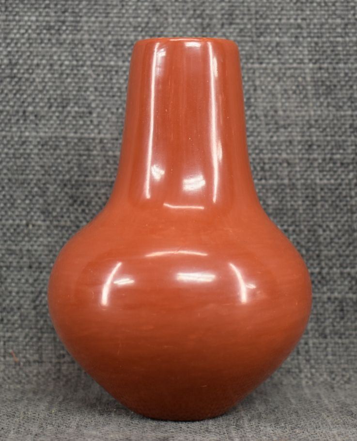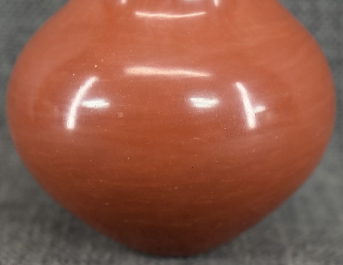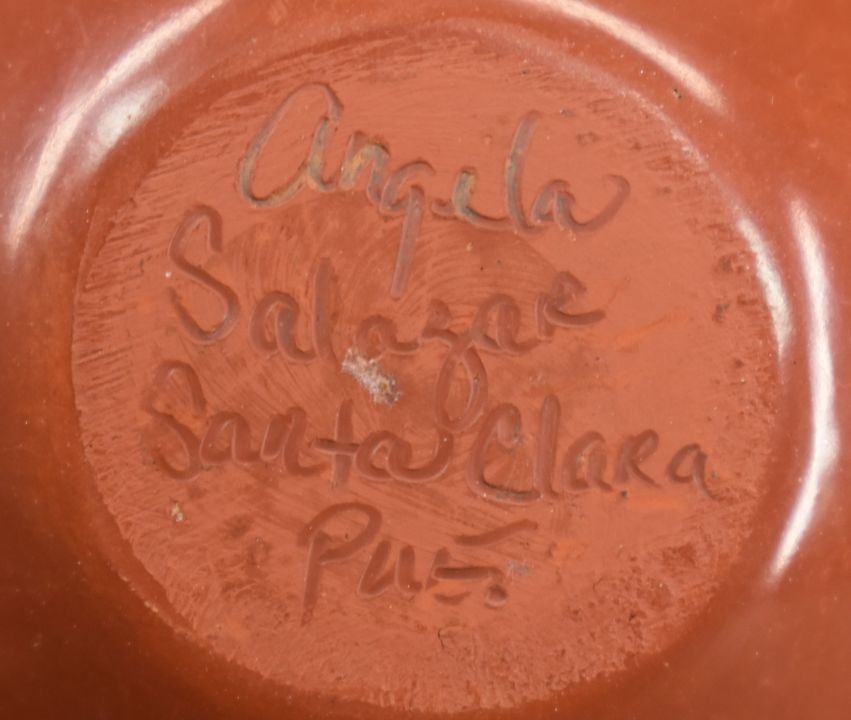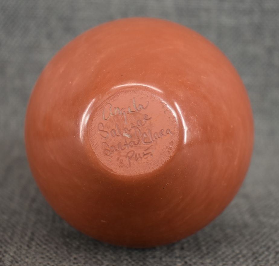 1980's Santa Clara, hand coiled with polished design and kiva step rim by Angela Salazar 5" x 3.25"