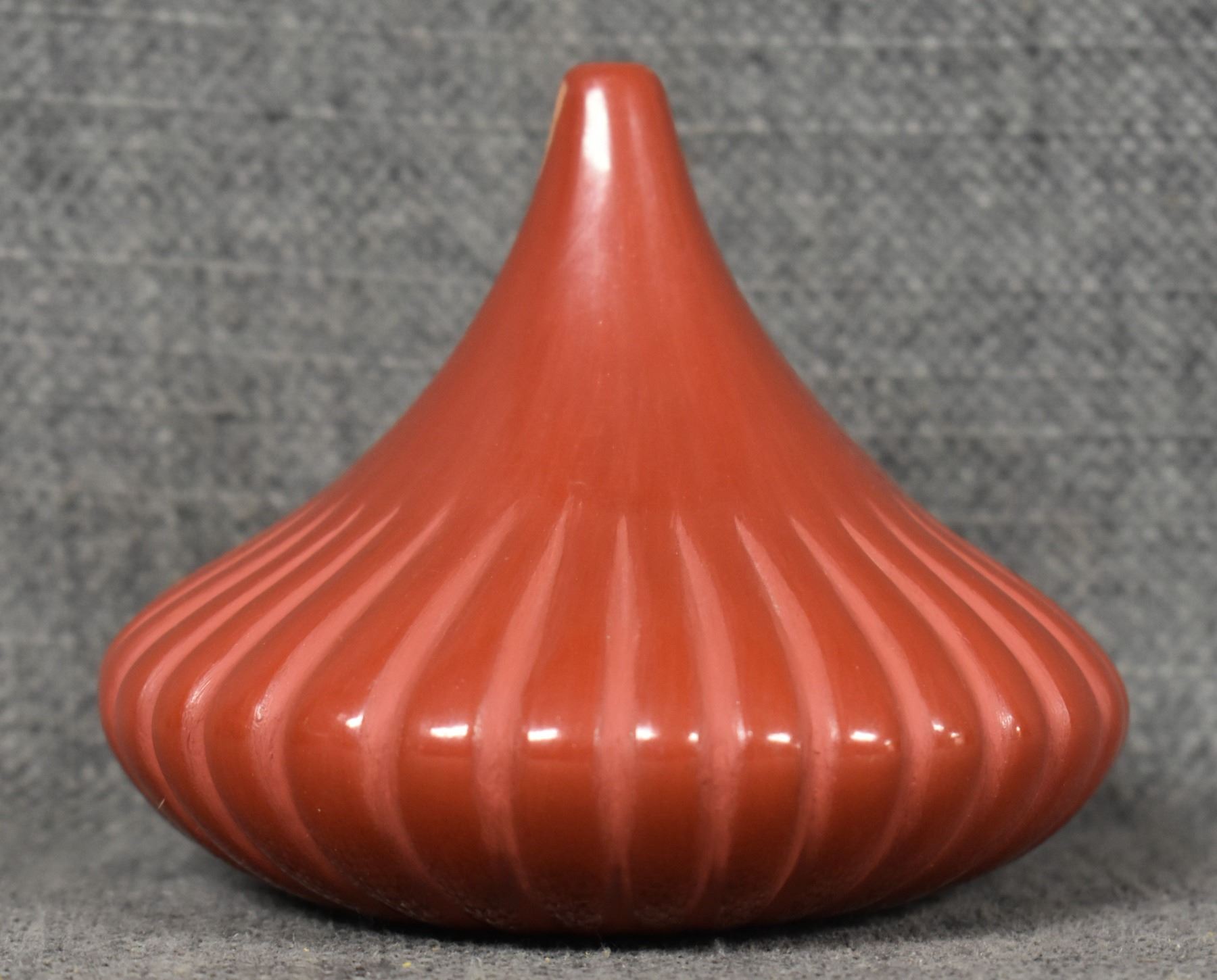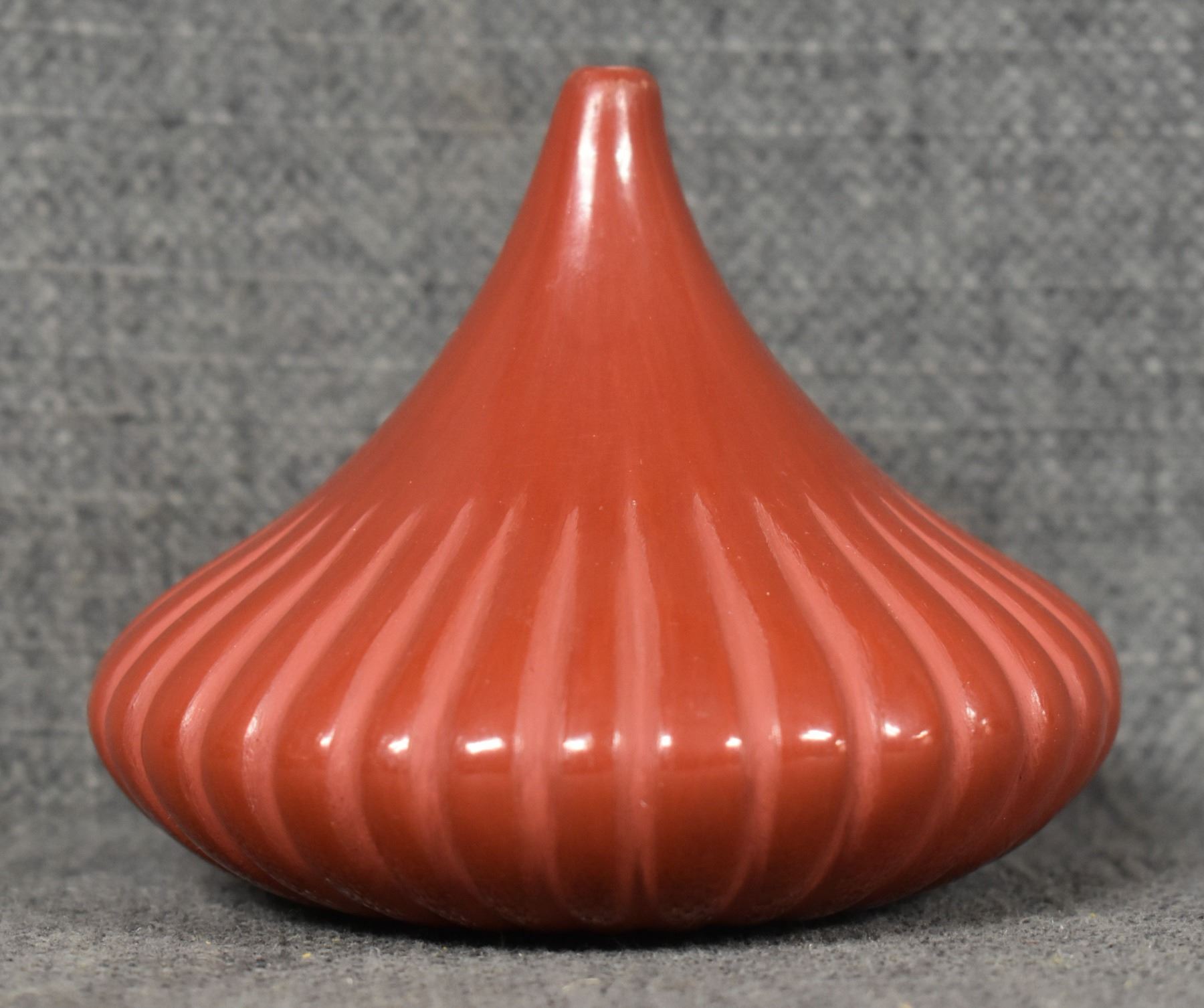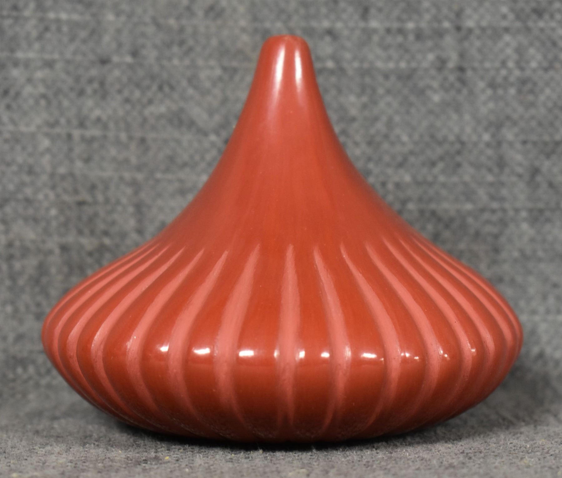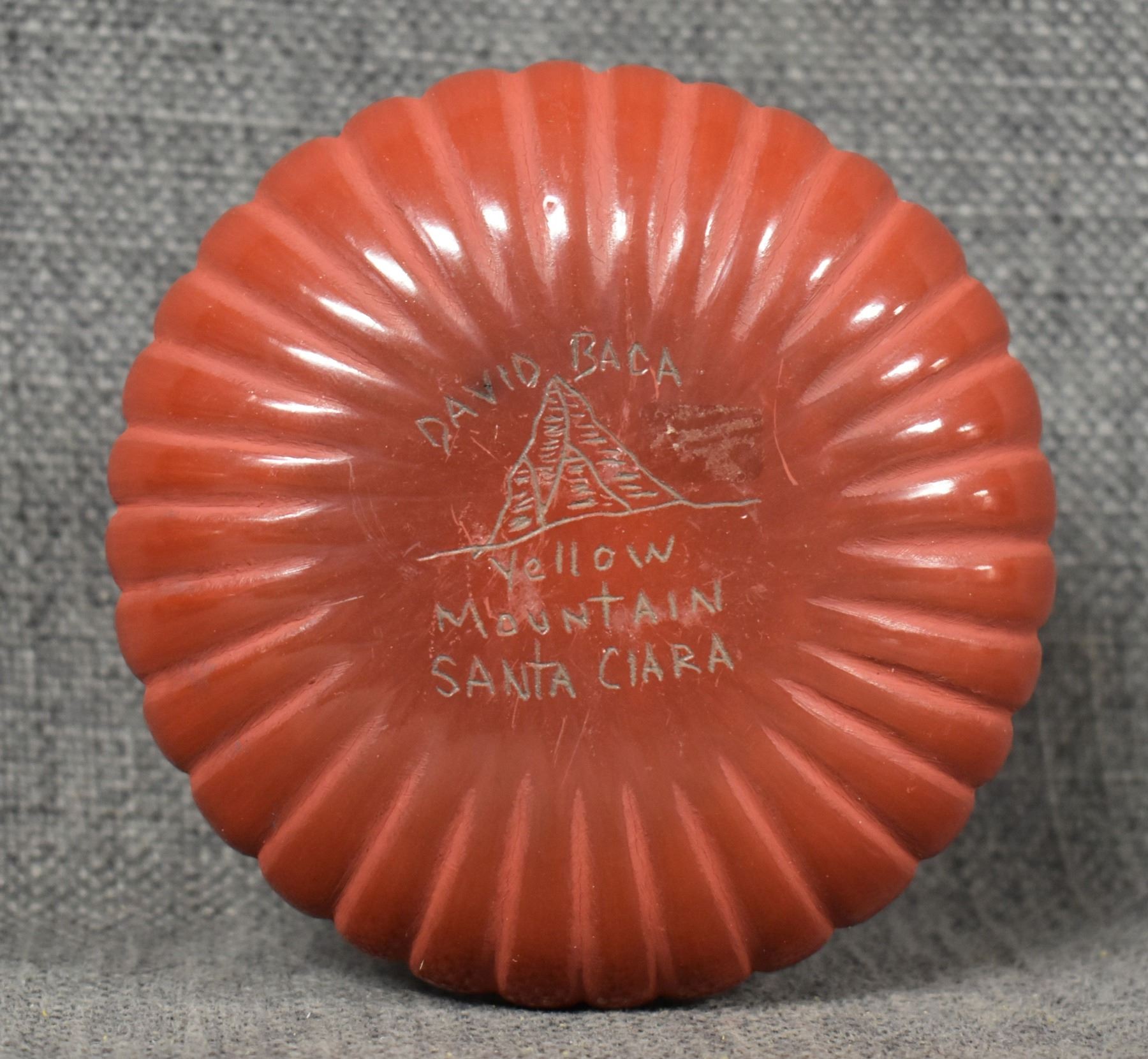 1990's Santa Clara, hand coiled melon pot design by David Baca. 3.25" x 4"