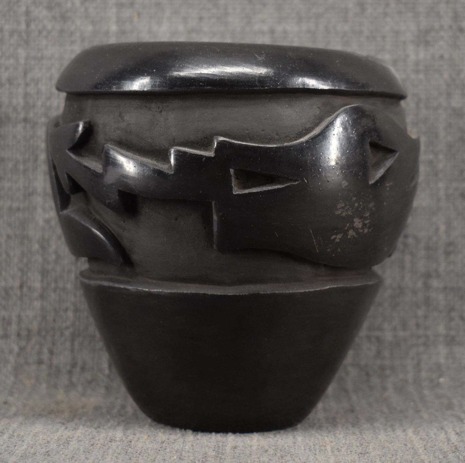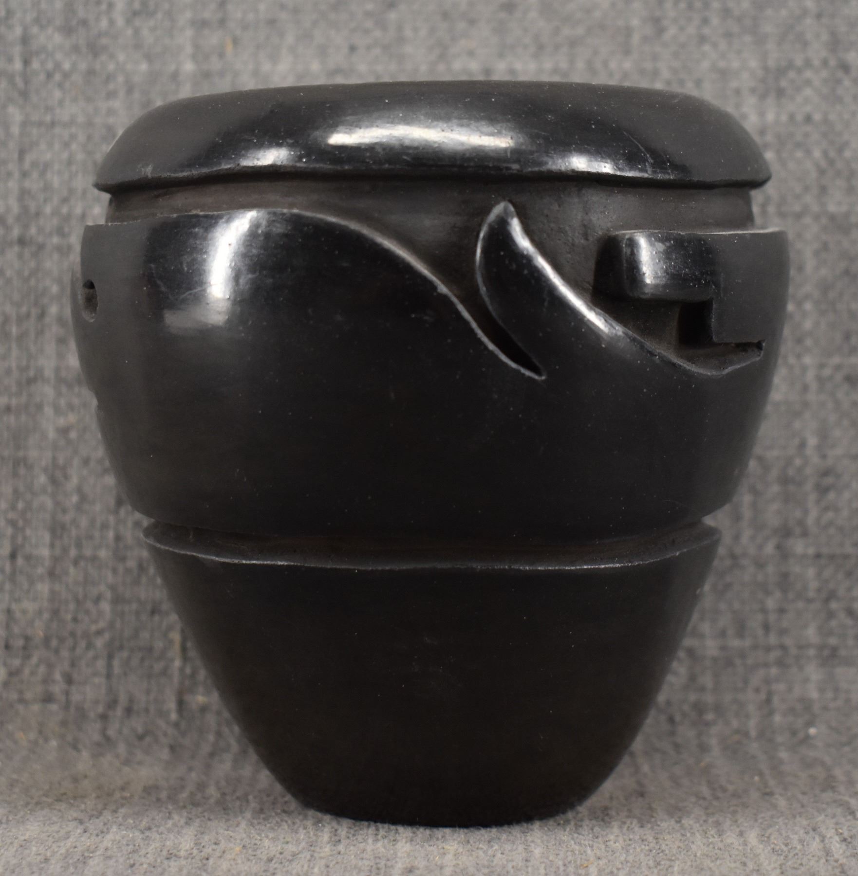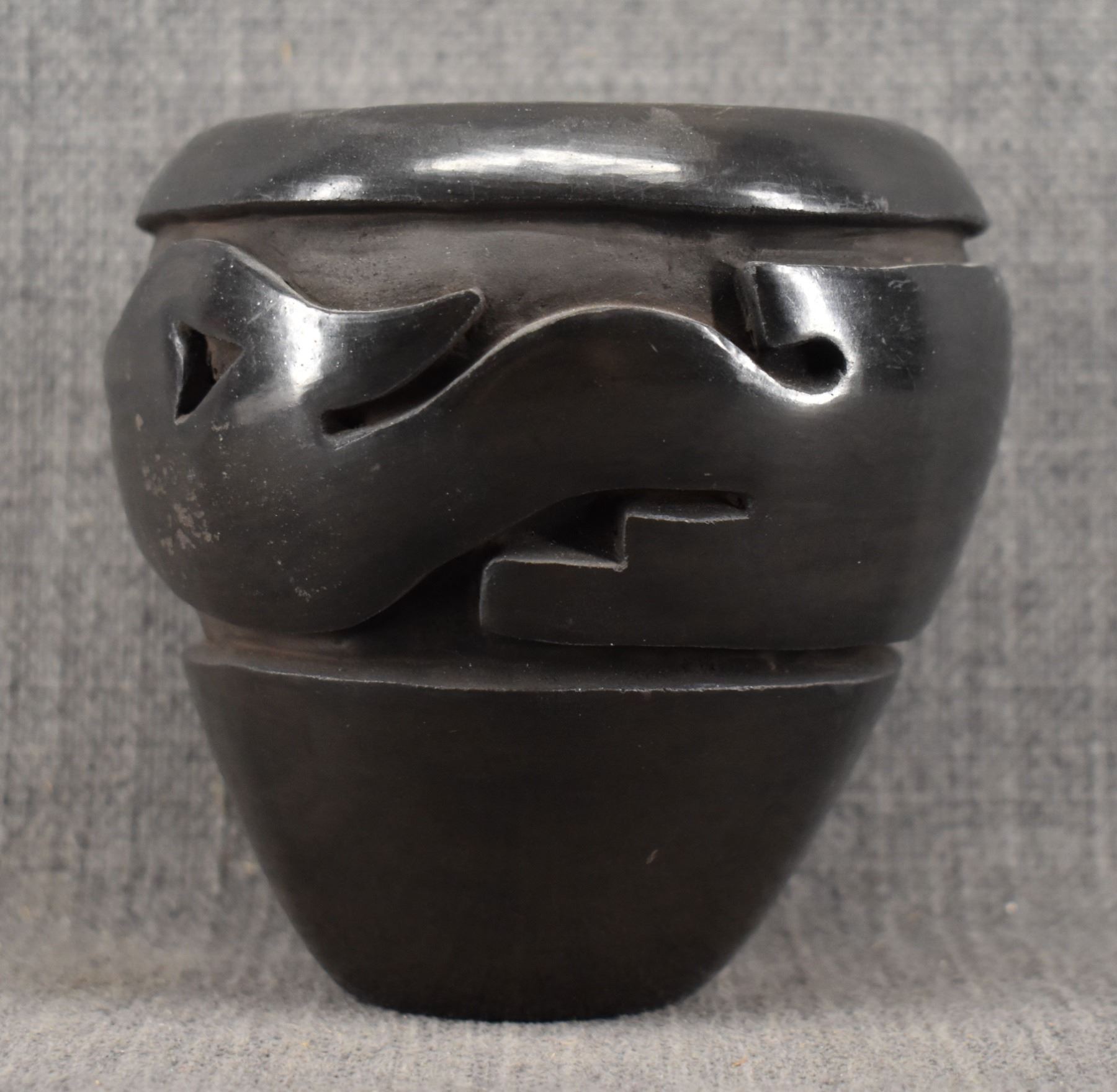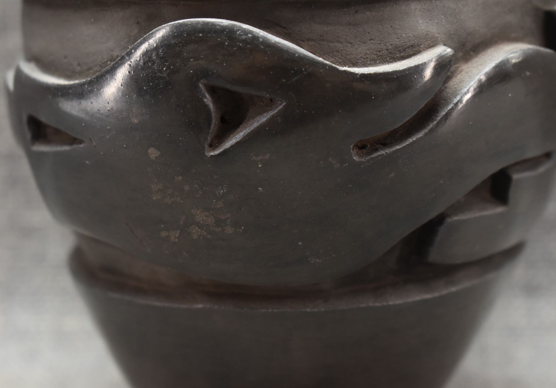 1970-80's Santa Clara, hand coiled with carved avanyu design by Mida Tafoya 4.5" x 4.5"