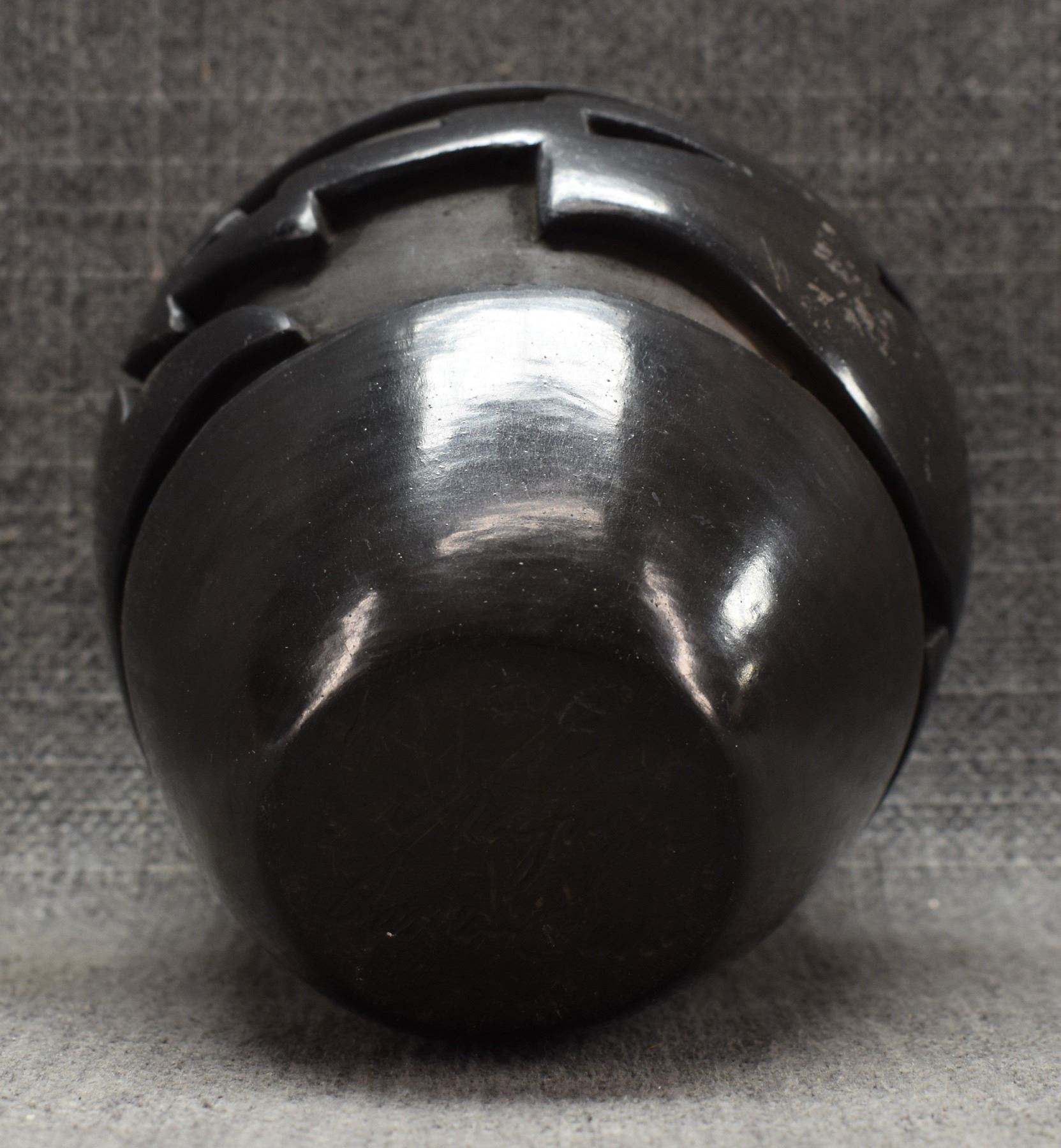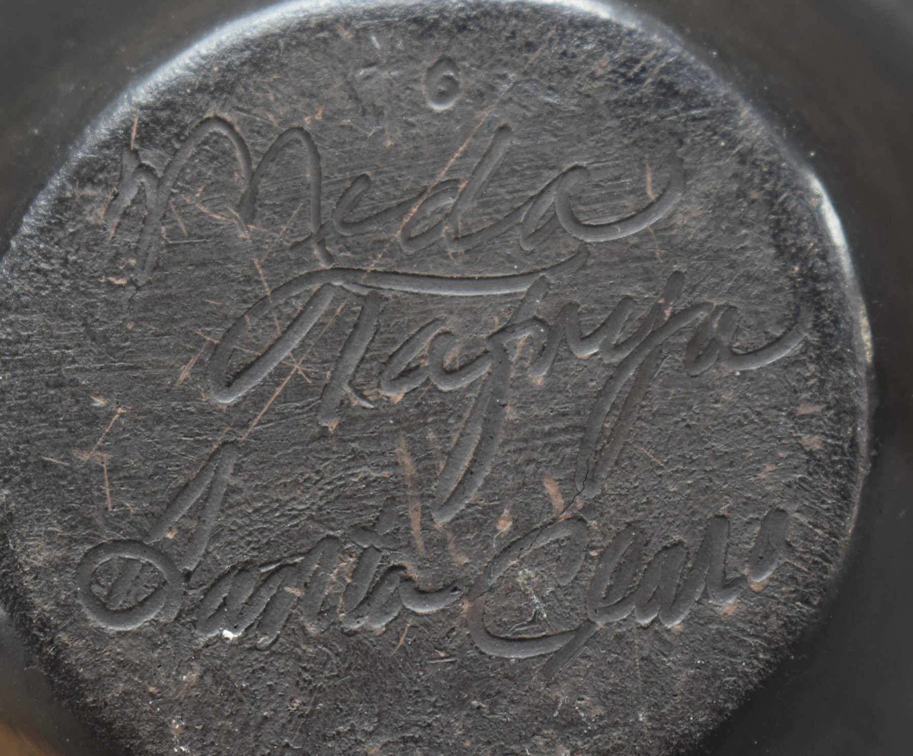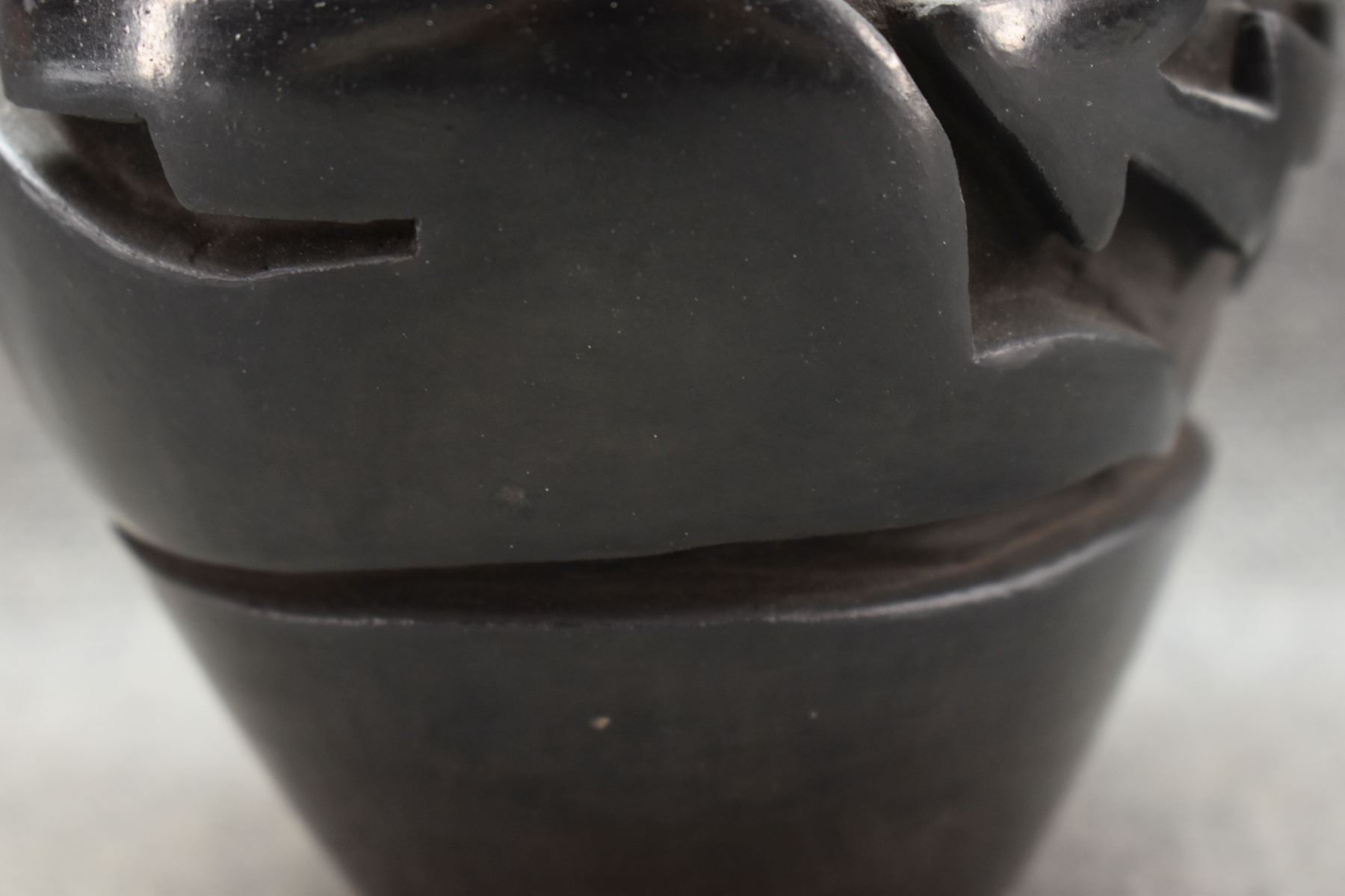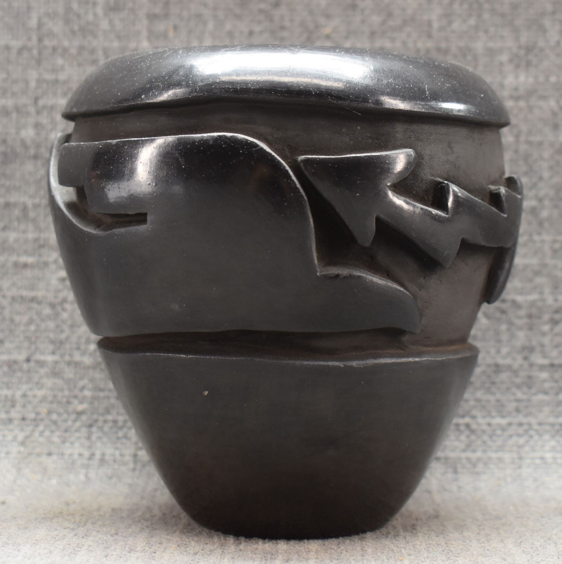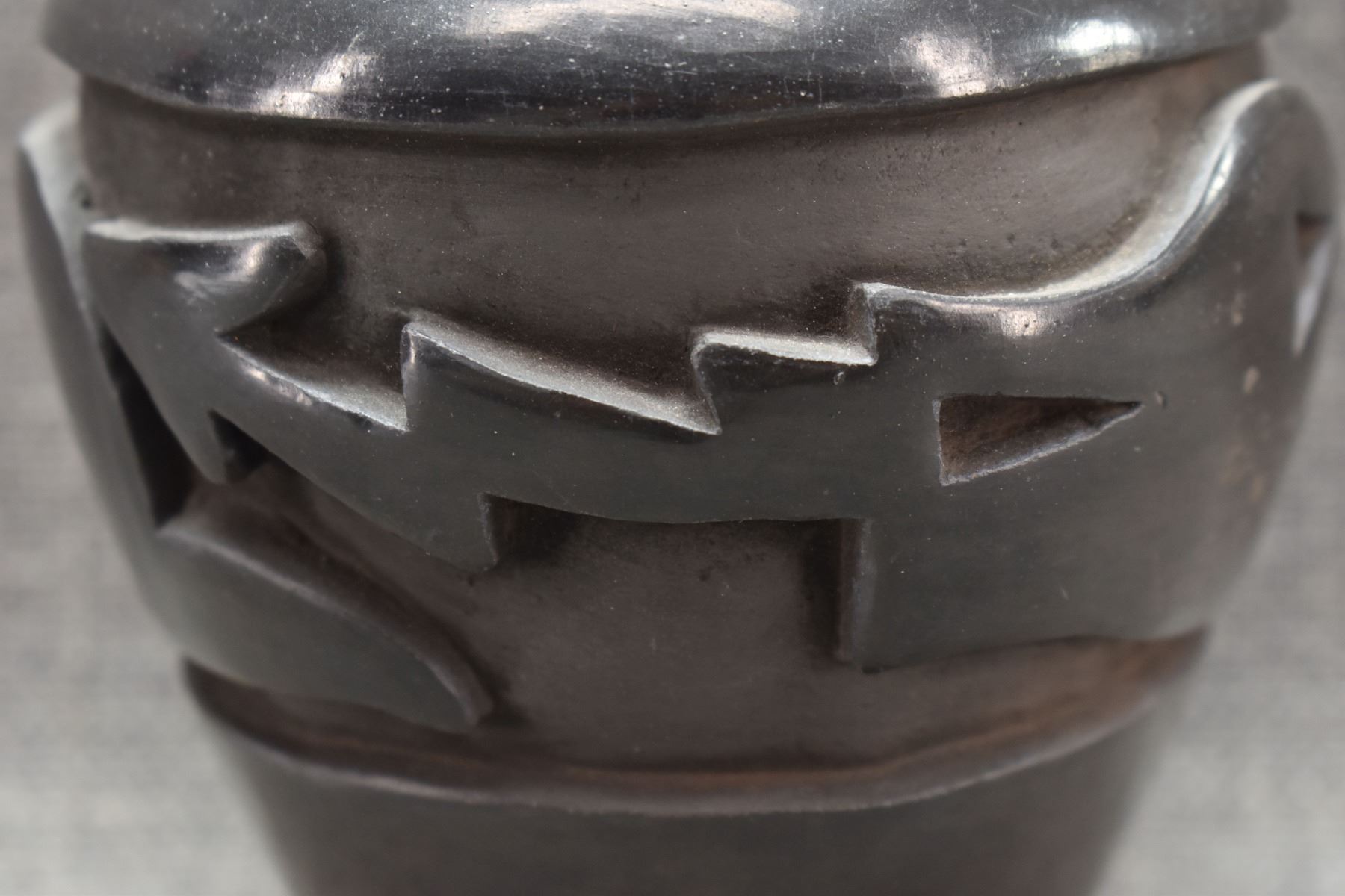 1970-80's Santa Clara, hand coiled with carved avanyu design by Mida Tafoya 4.5" x 4.5"