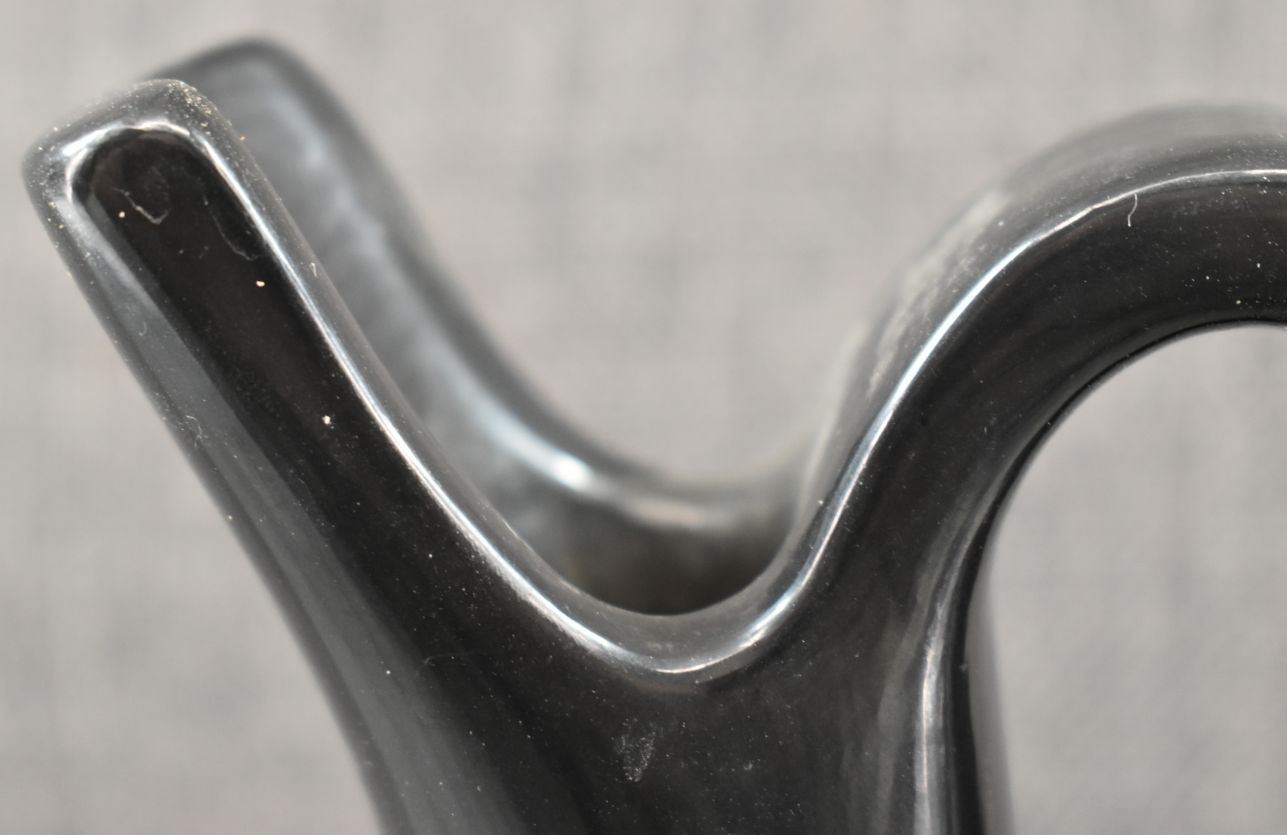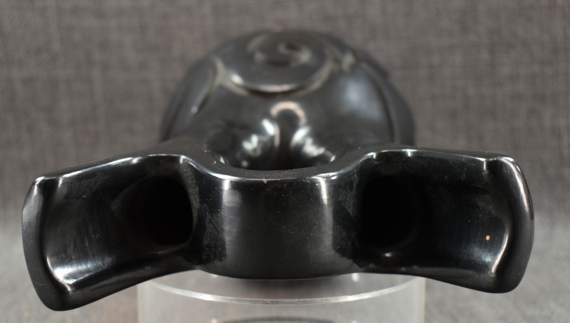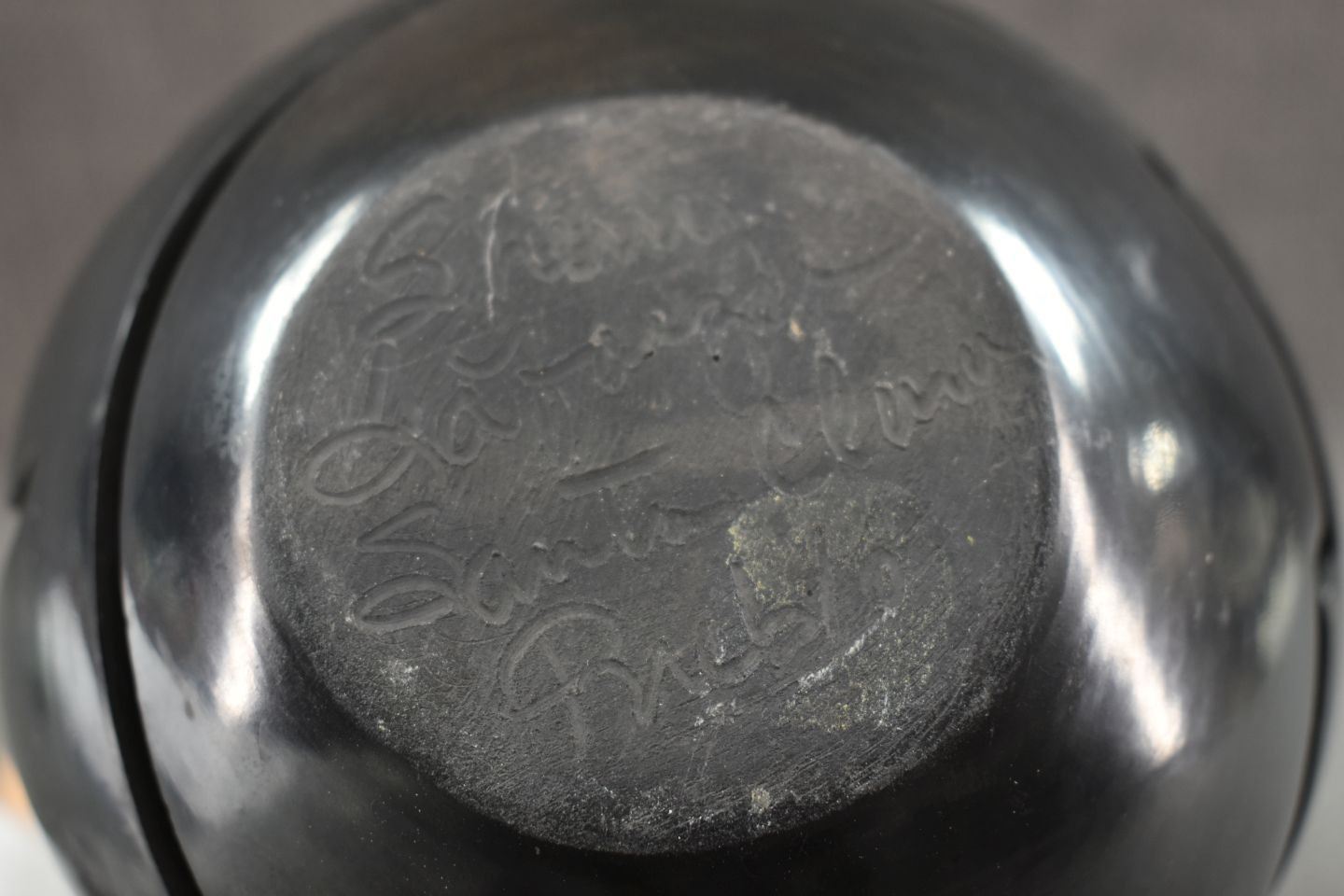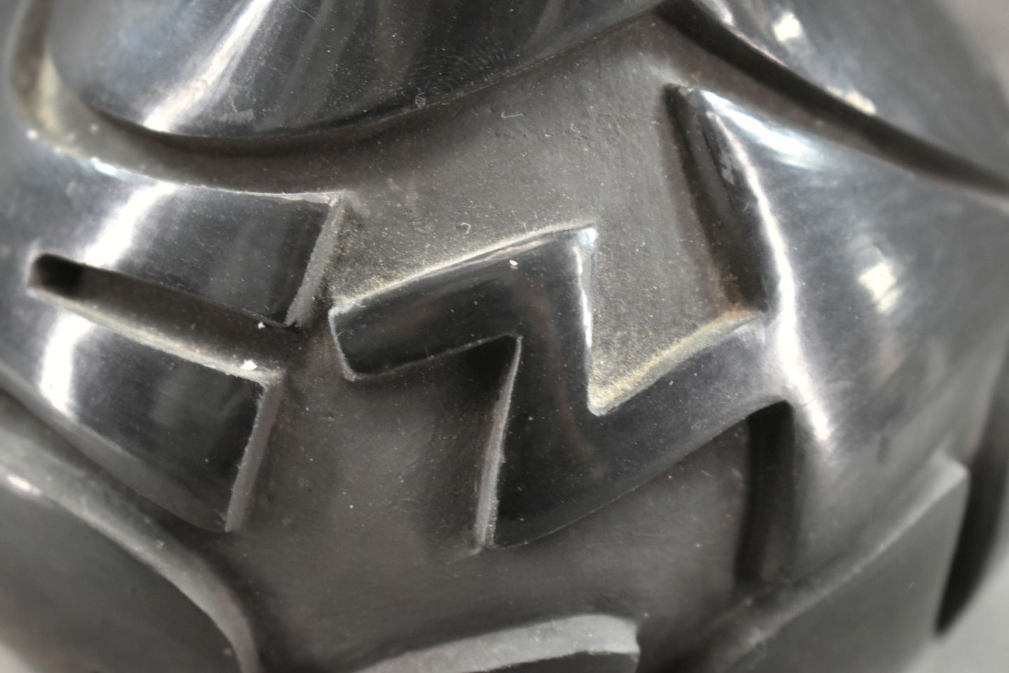 1980's Santa Clara. Hand coiled and carved design pottery wedding vase. Signed Sally Tafoya. 9'' x 5''