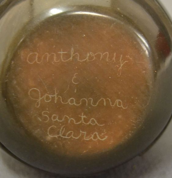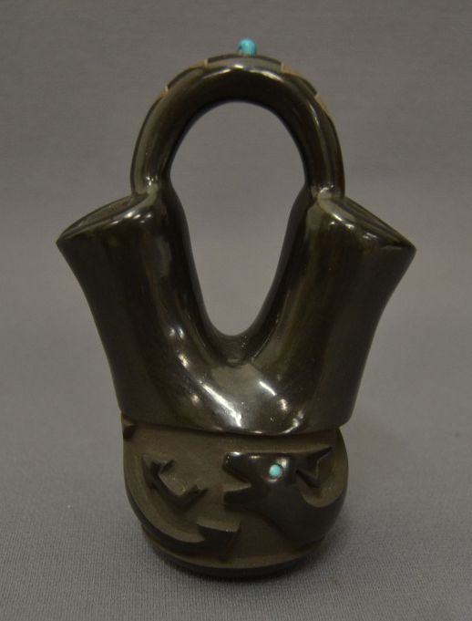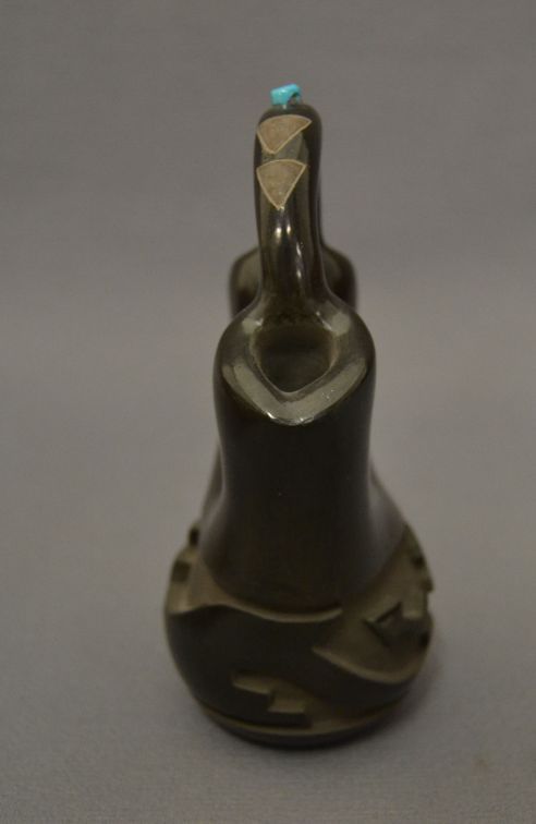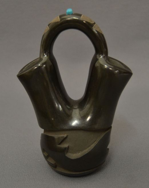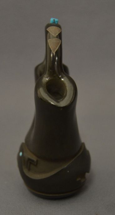 1980s 90s carved avanyu design with turquoise eye and single turquoise stone in handle signed Anthony & Johanna 5.75"X4"x2.5"