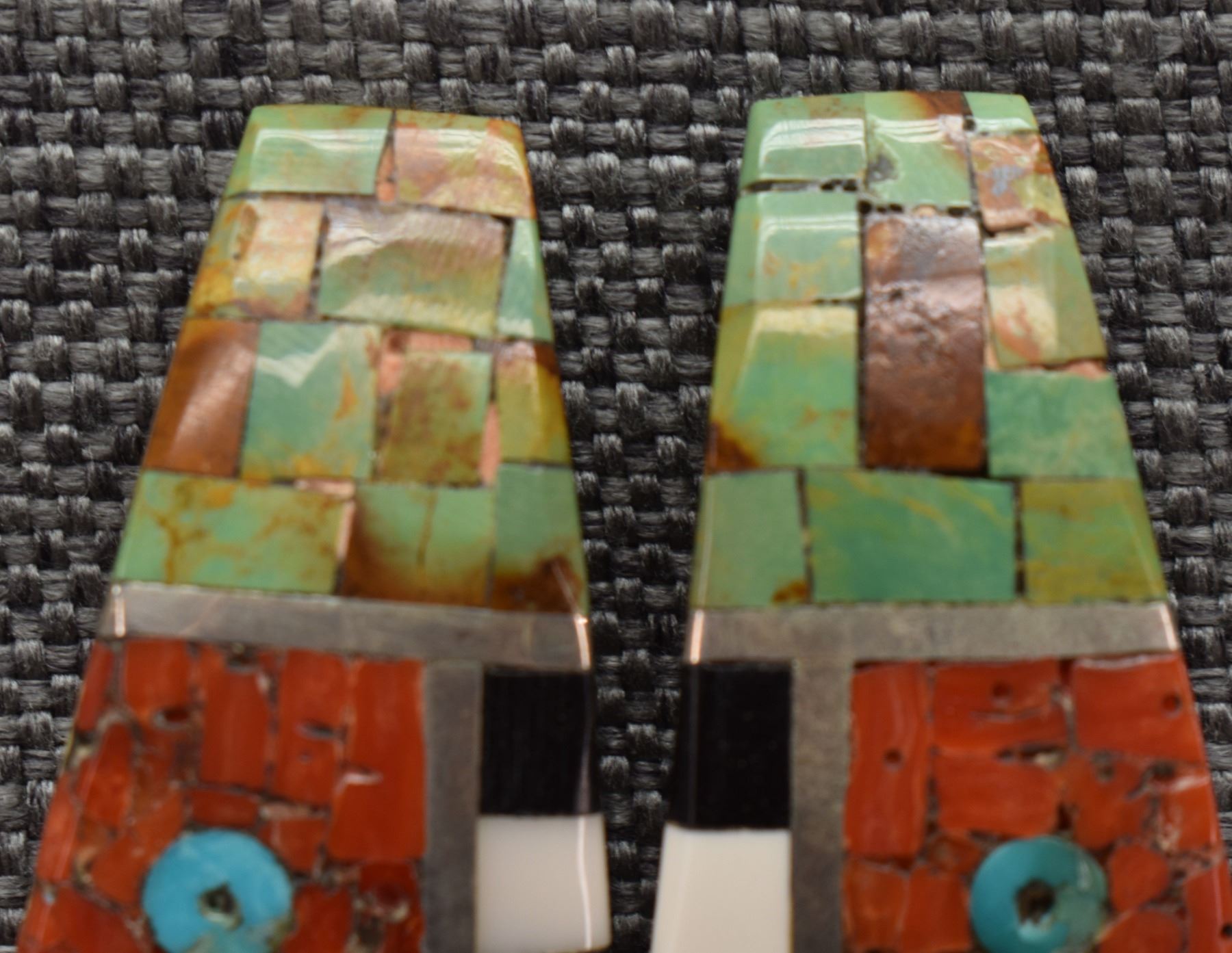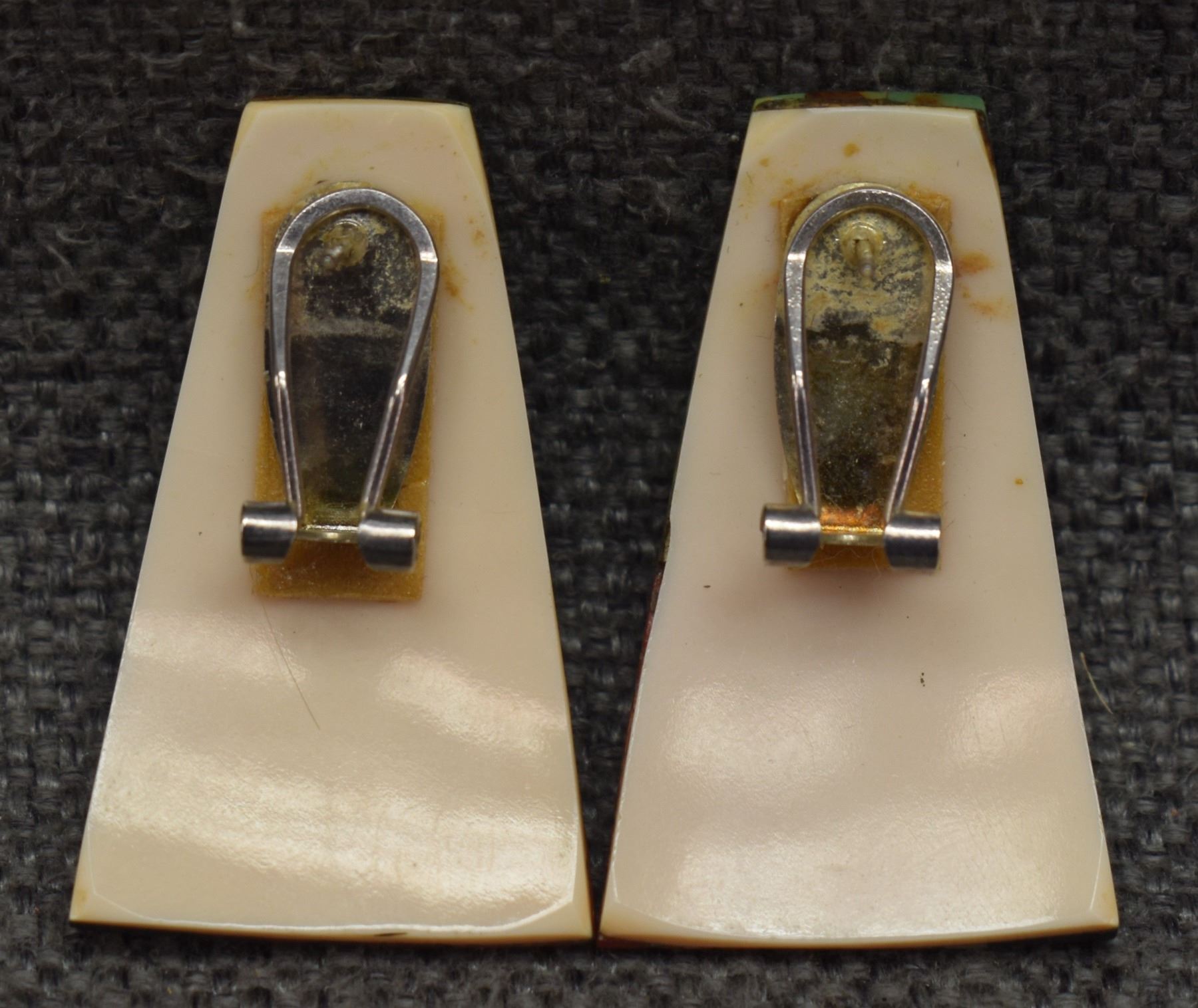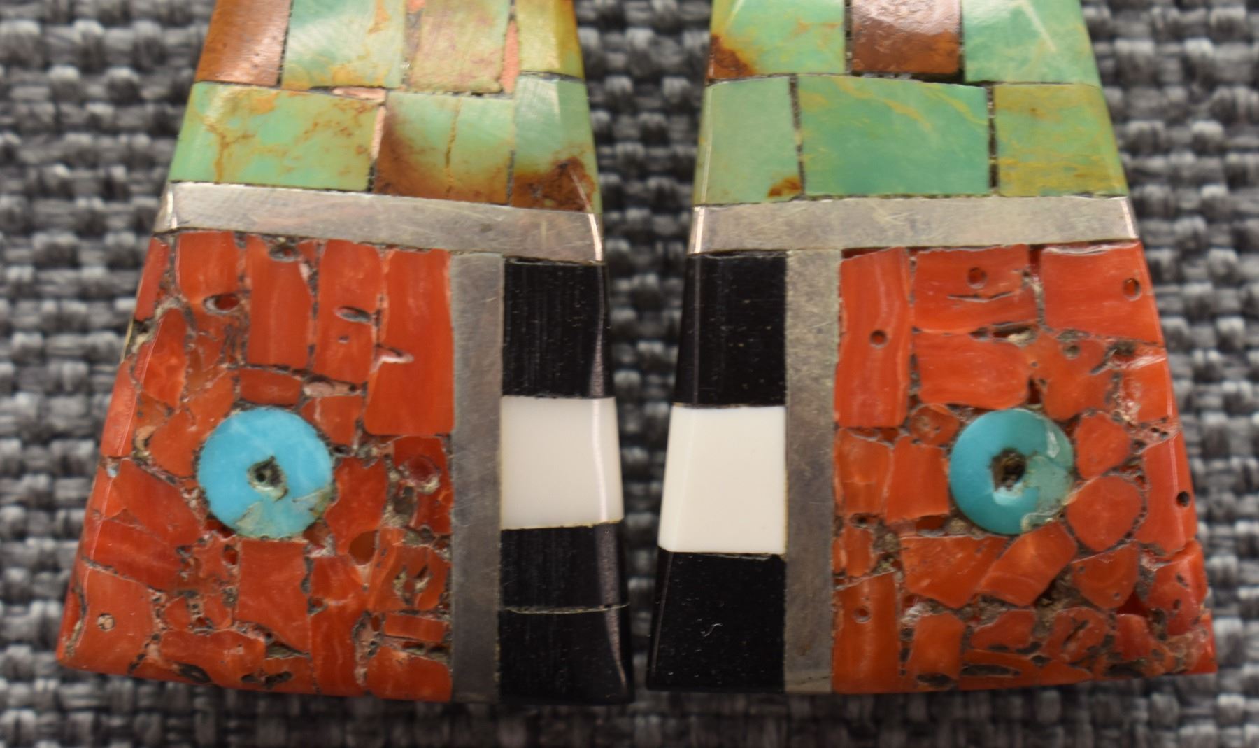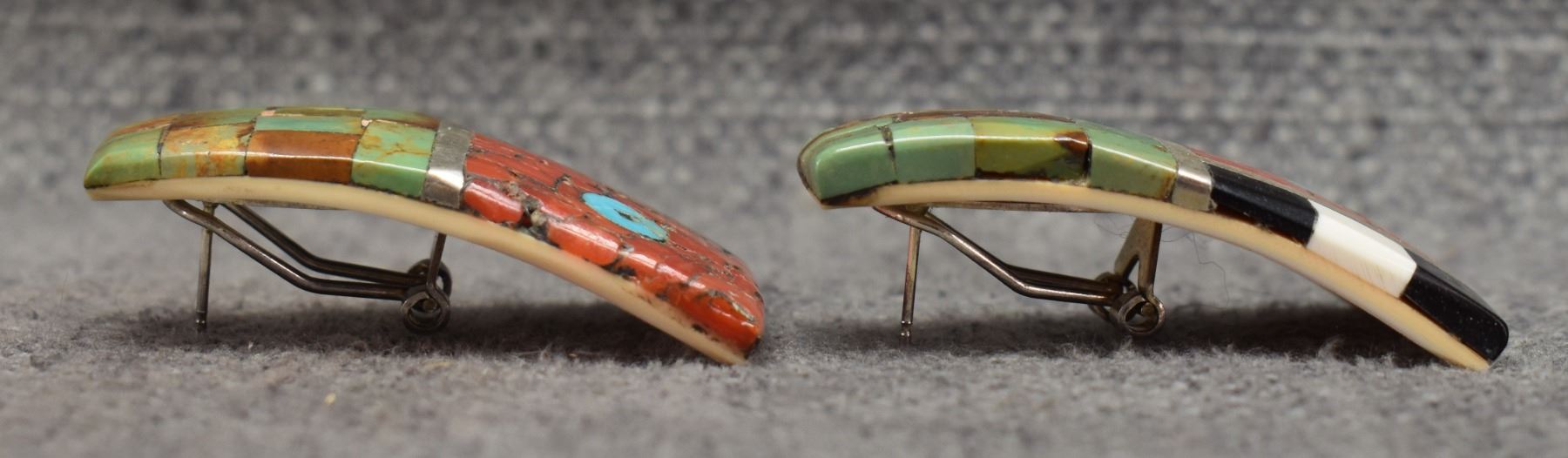 1990's Santo Domingo. Shell inlayed earrings attributed to Mary Lovato, 1.75'' x 1''