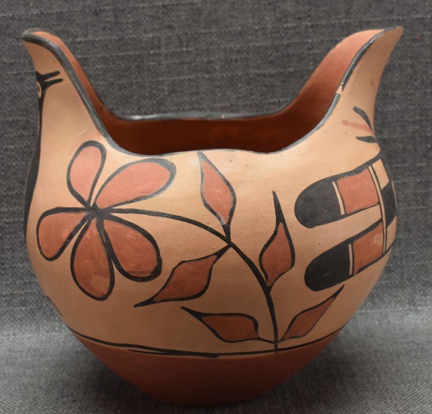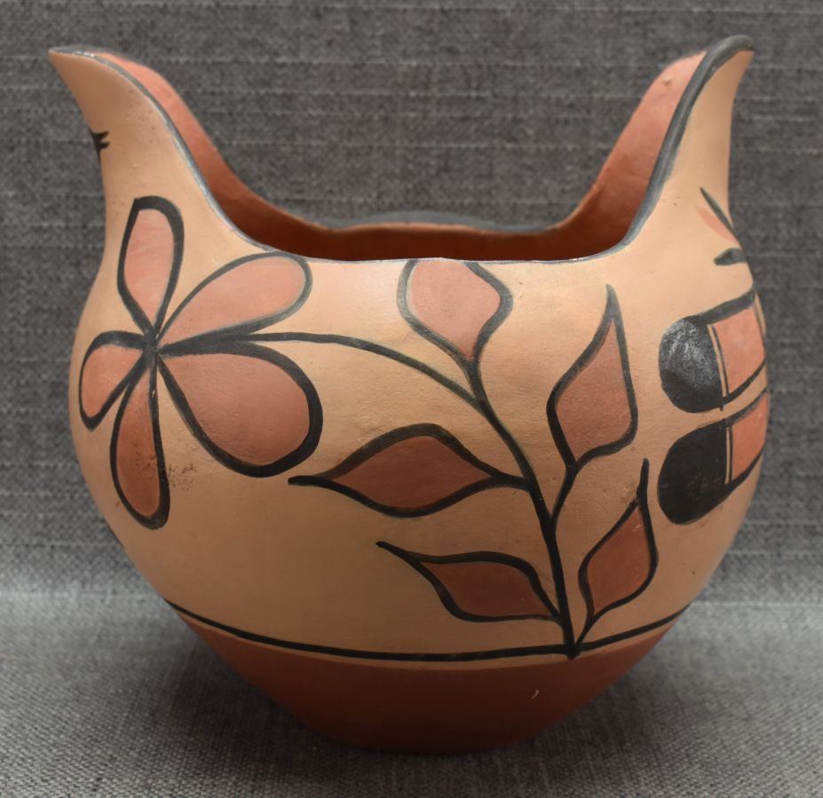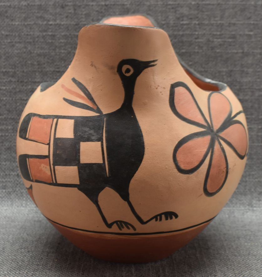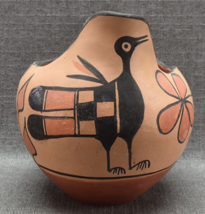 1970's Santo Domingo Indian. Hand coiled and painted pottery pitcher. 7.5'' x 8''