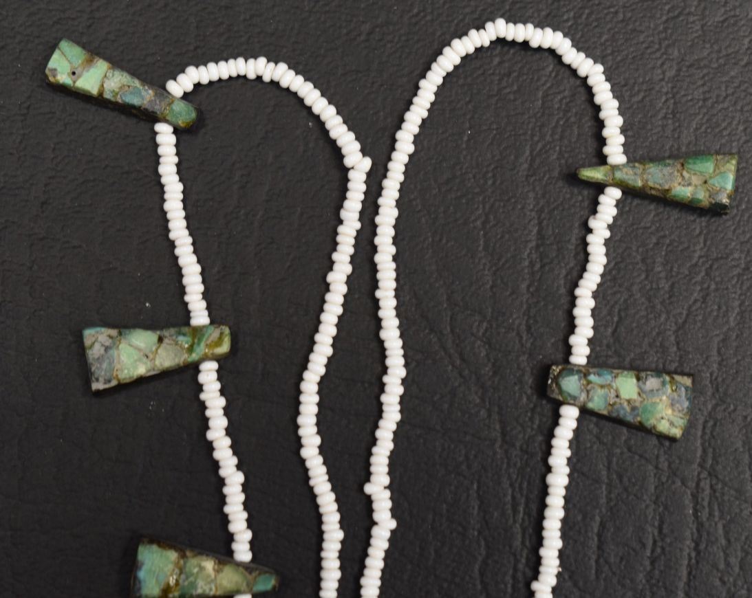 1960's Santo Domingo Indian. Turquoise shell and Bakelite necklaces. 22'' long