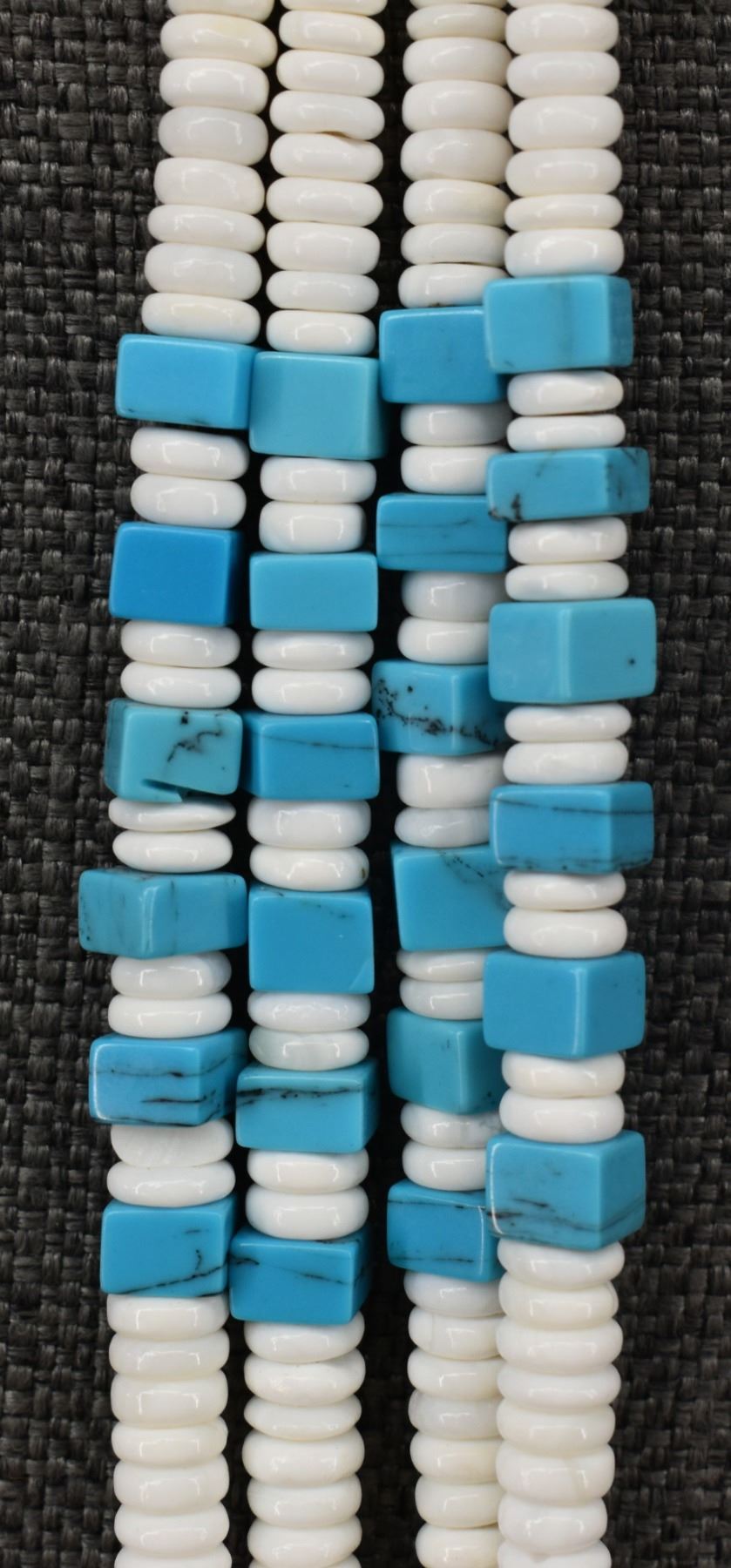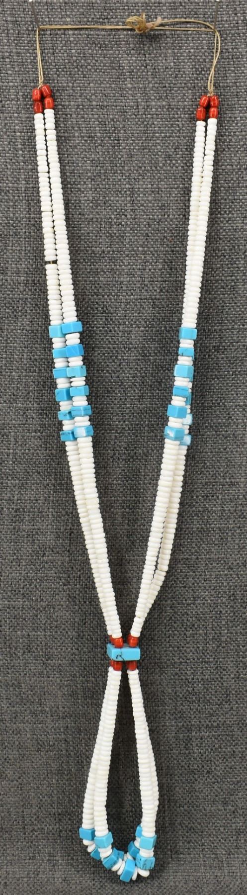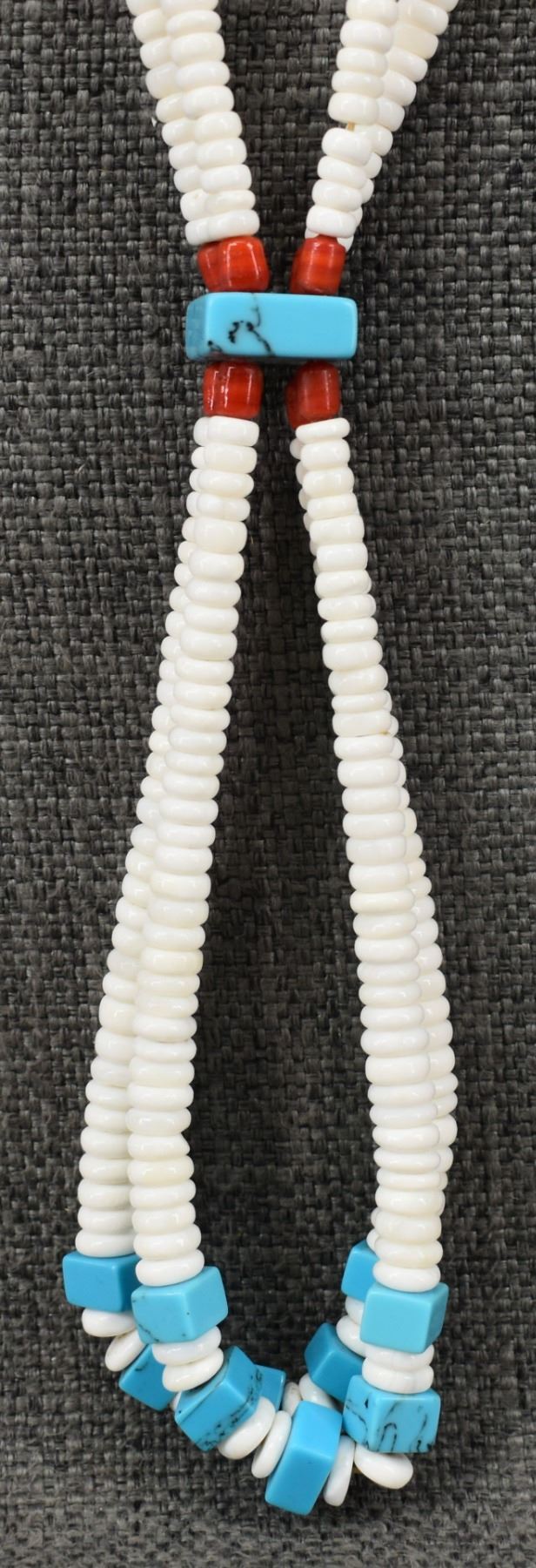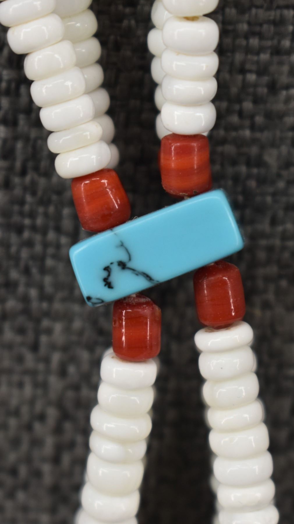 1990's Santo Domingo. Shell glass coral and block turquoise Jocla necklace 24'' long Jocla pendant 5''