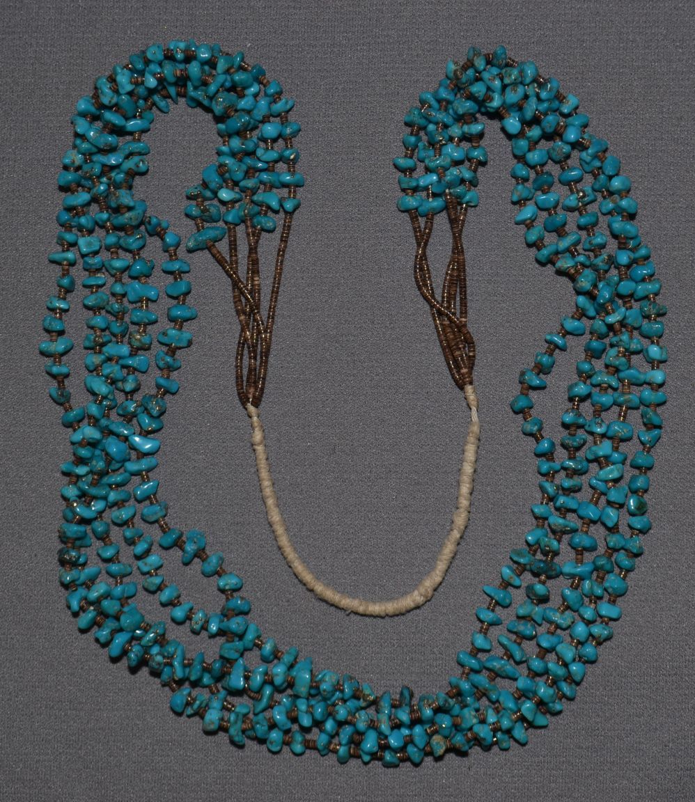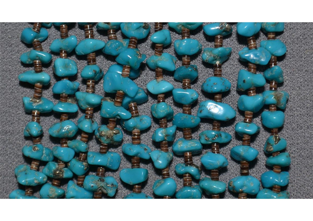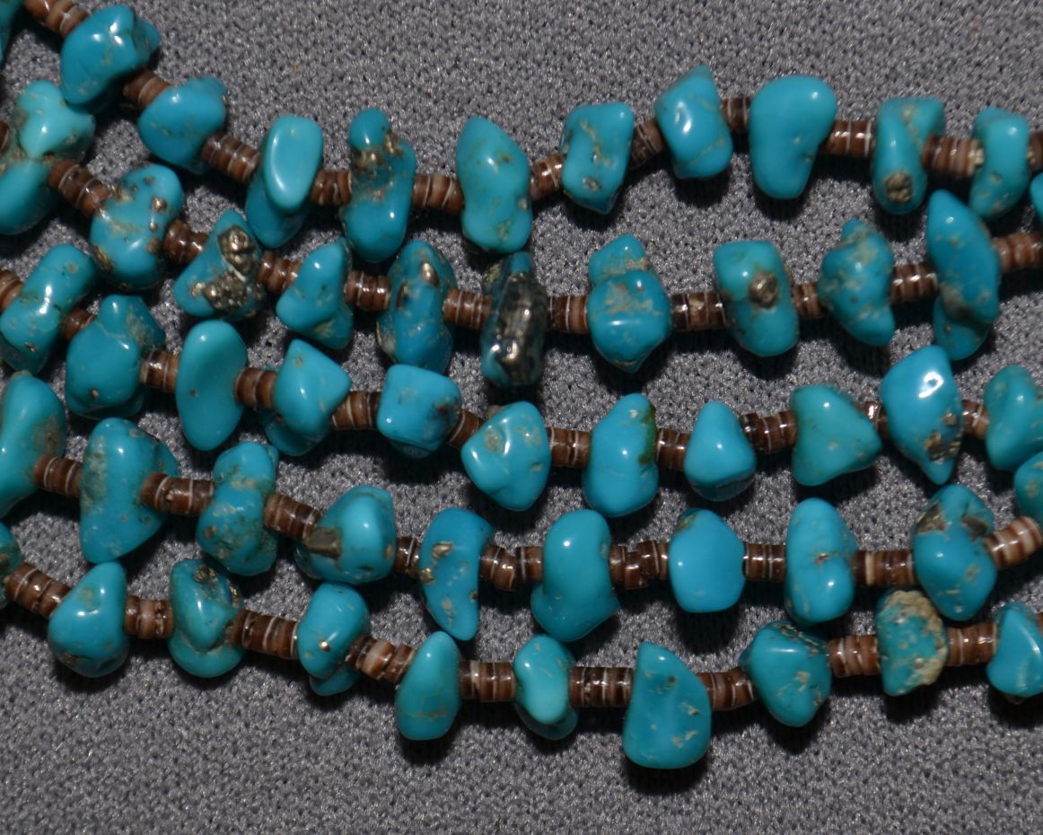 1980s five strand shell heishe and turquoise nuggets 28 inches long