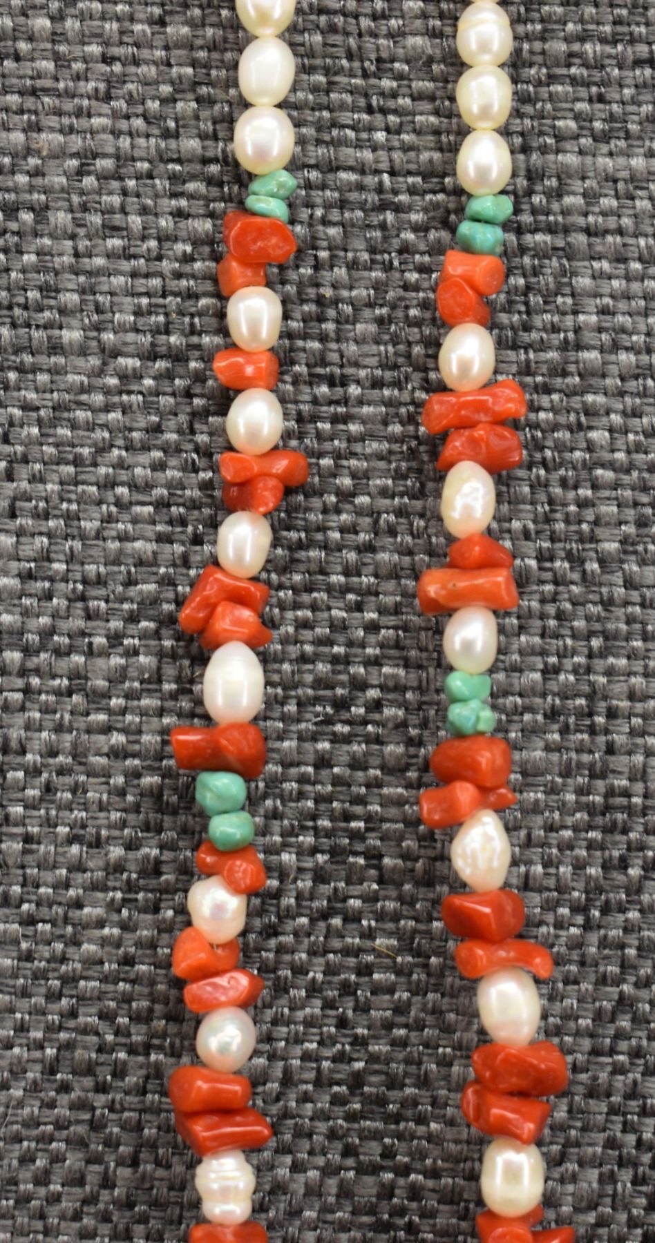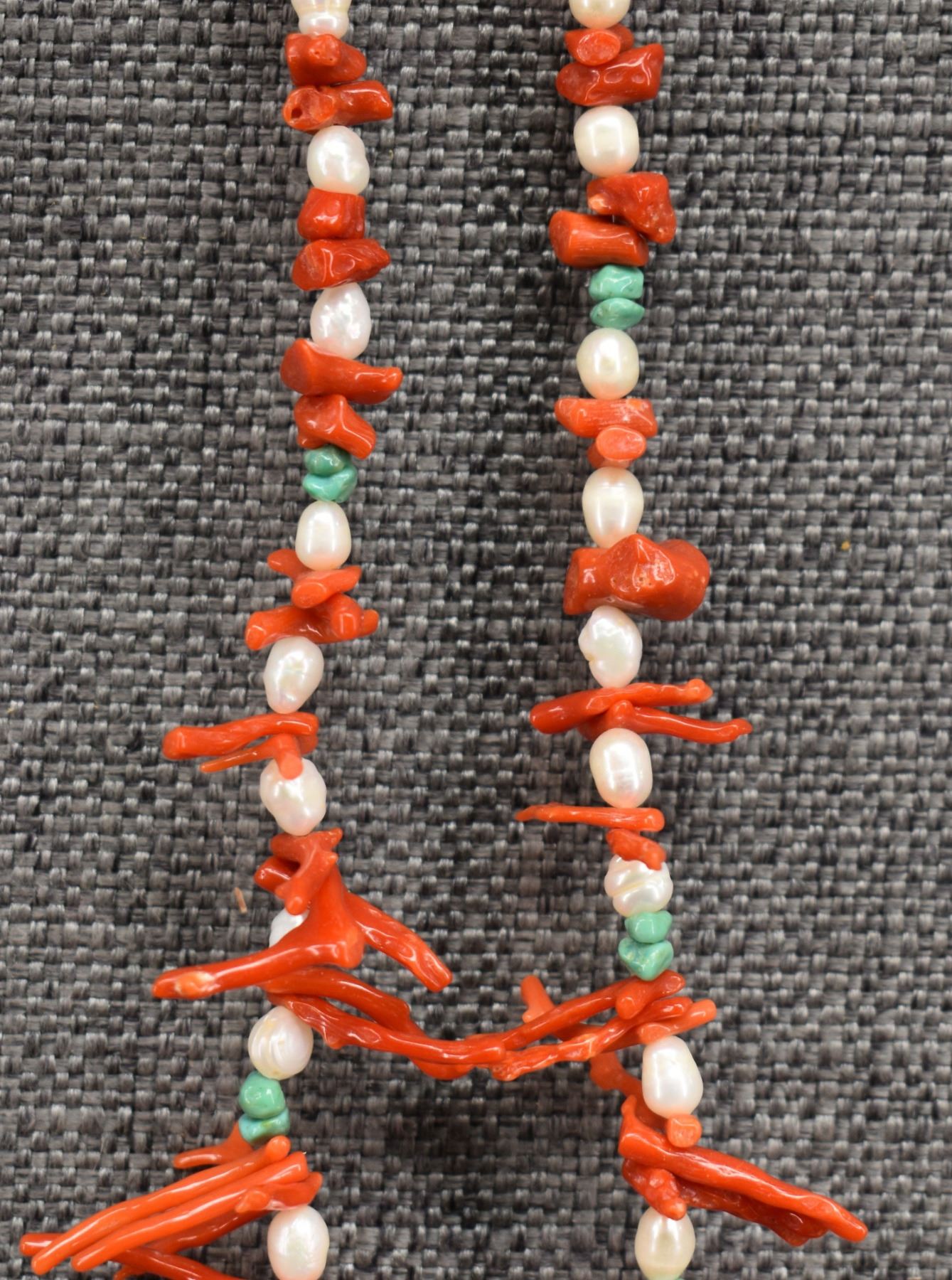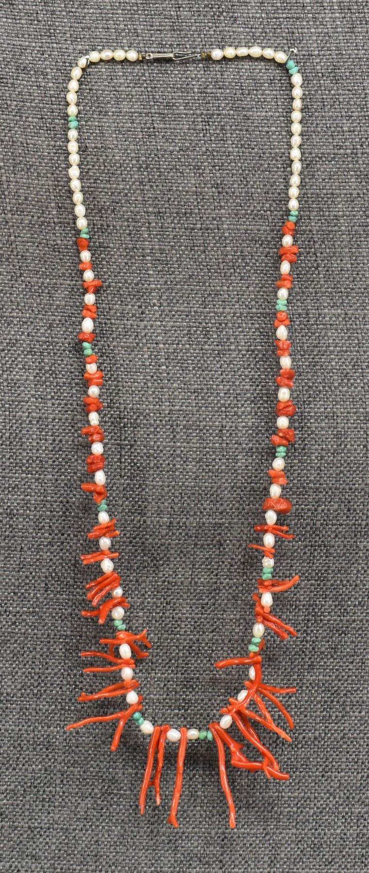 1980's santo Domingo. Single strand shell coral and turquoise necklace 28'' long