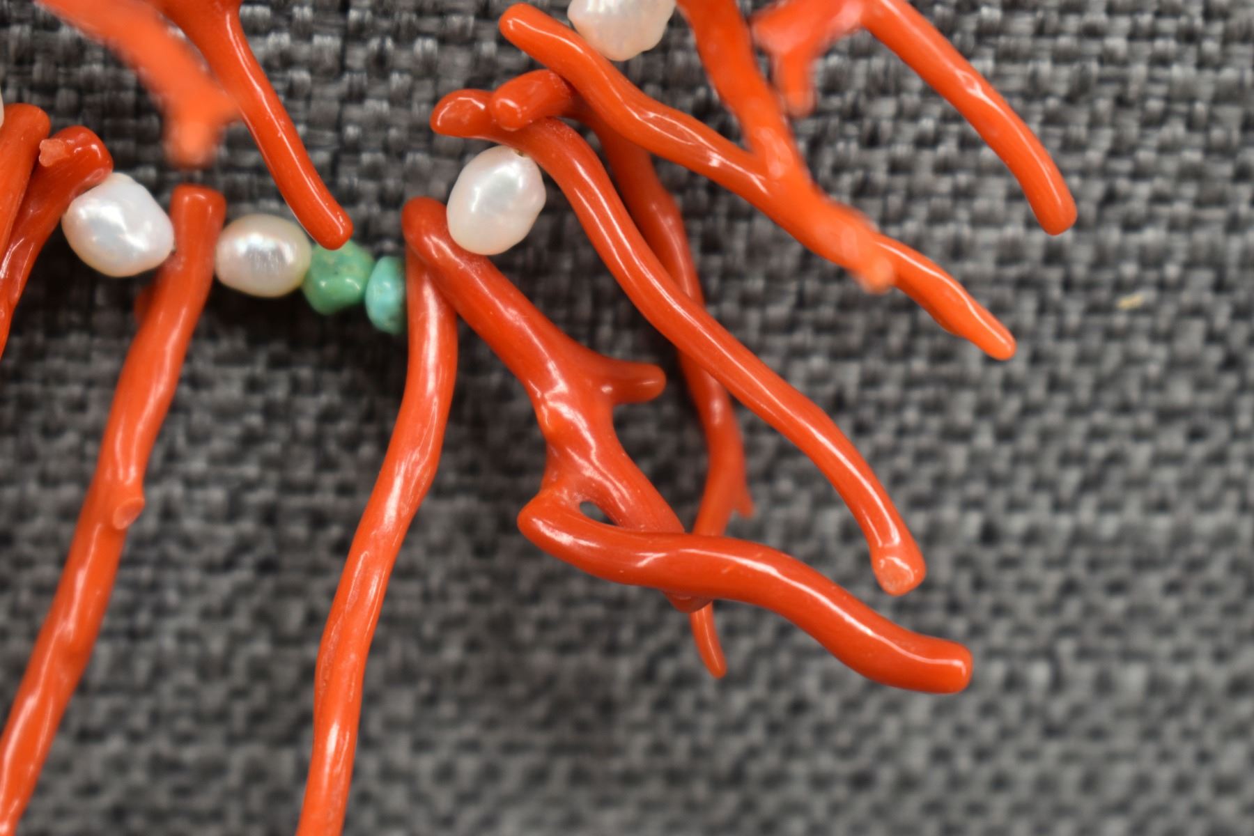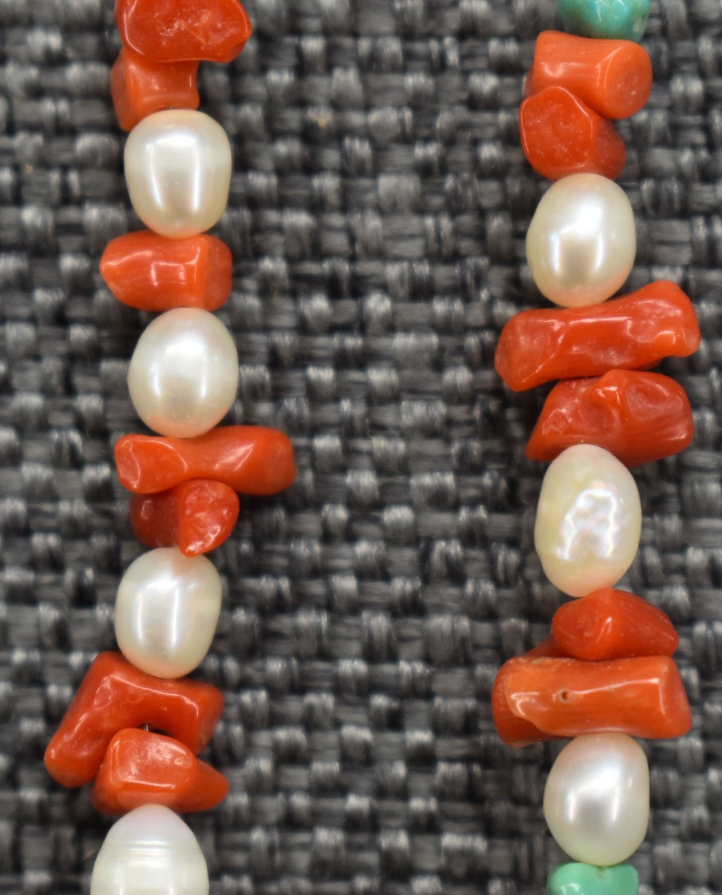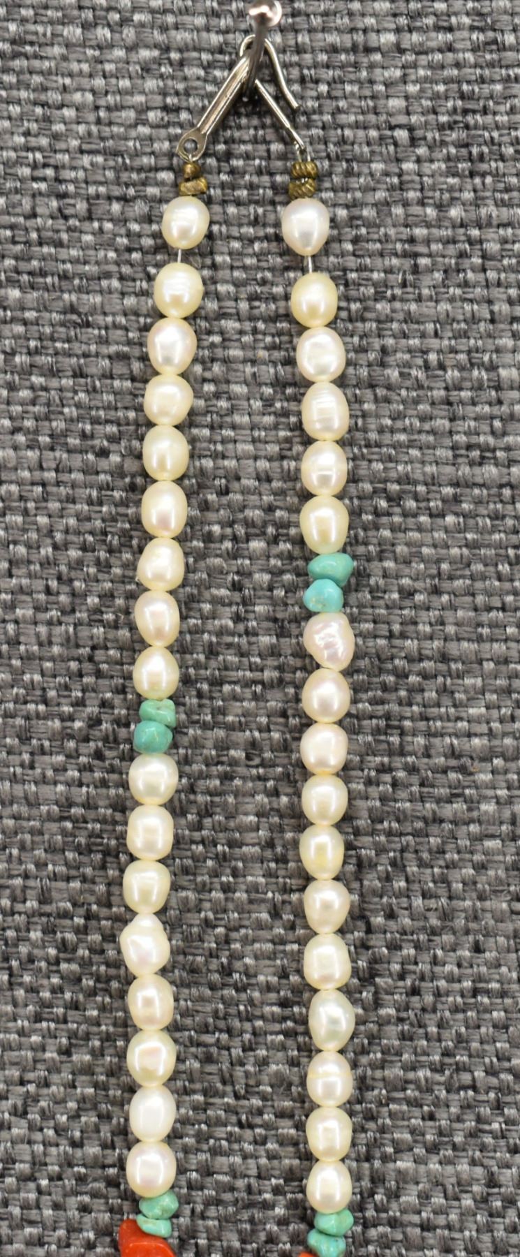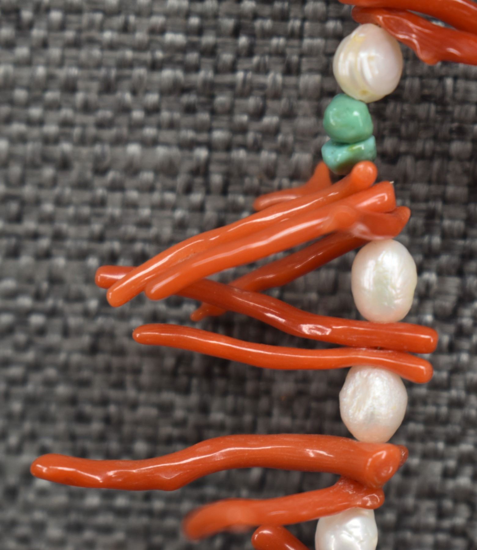 1980's santo Domingo. Single strand shell coral and turquoise necklace 28'' long