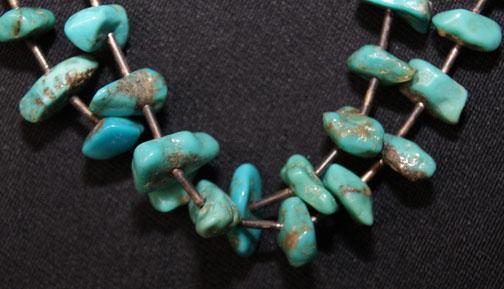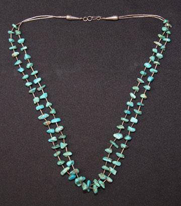 1970'S 2 strands of turquoise inter spaced with tube silver, 25" long