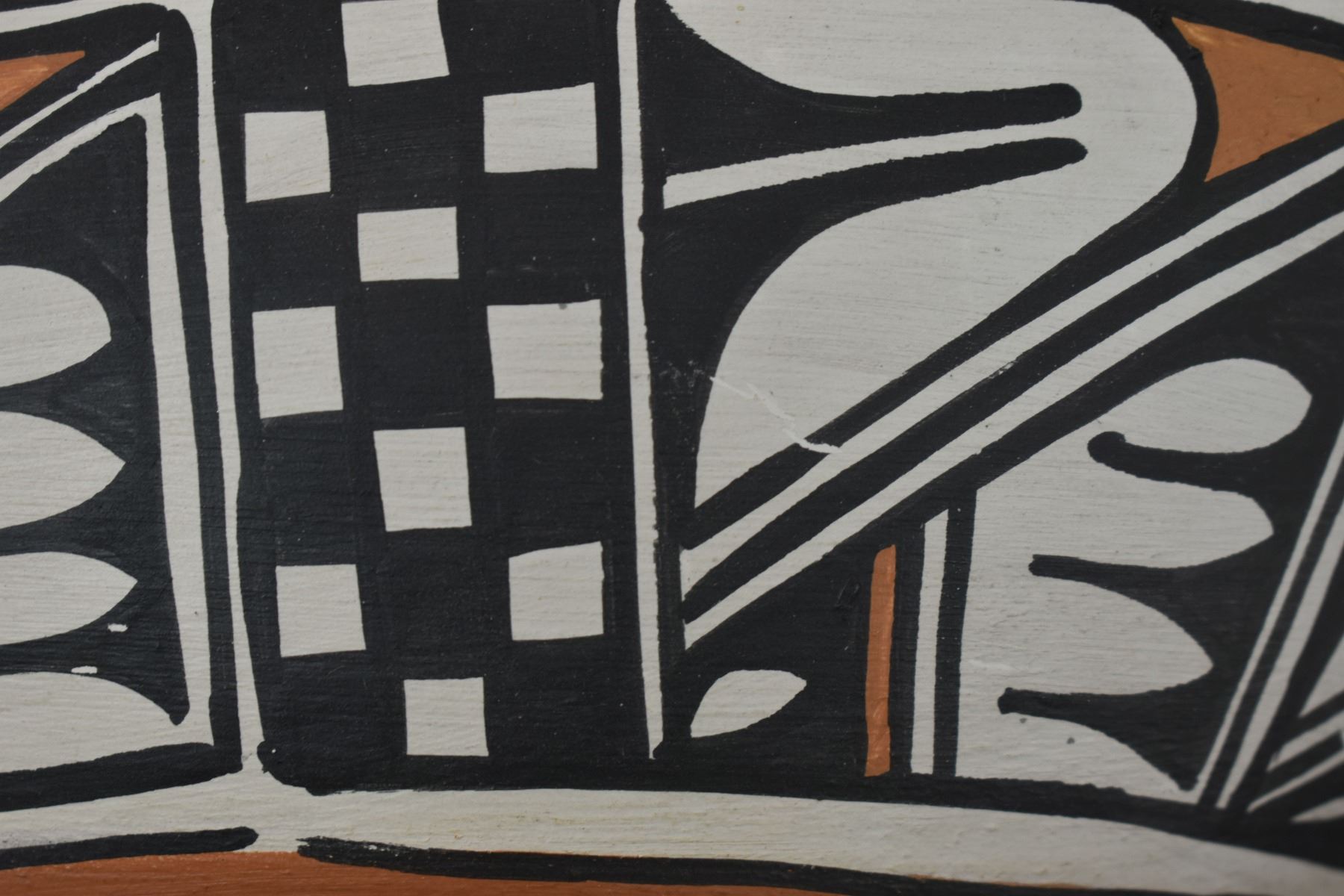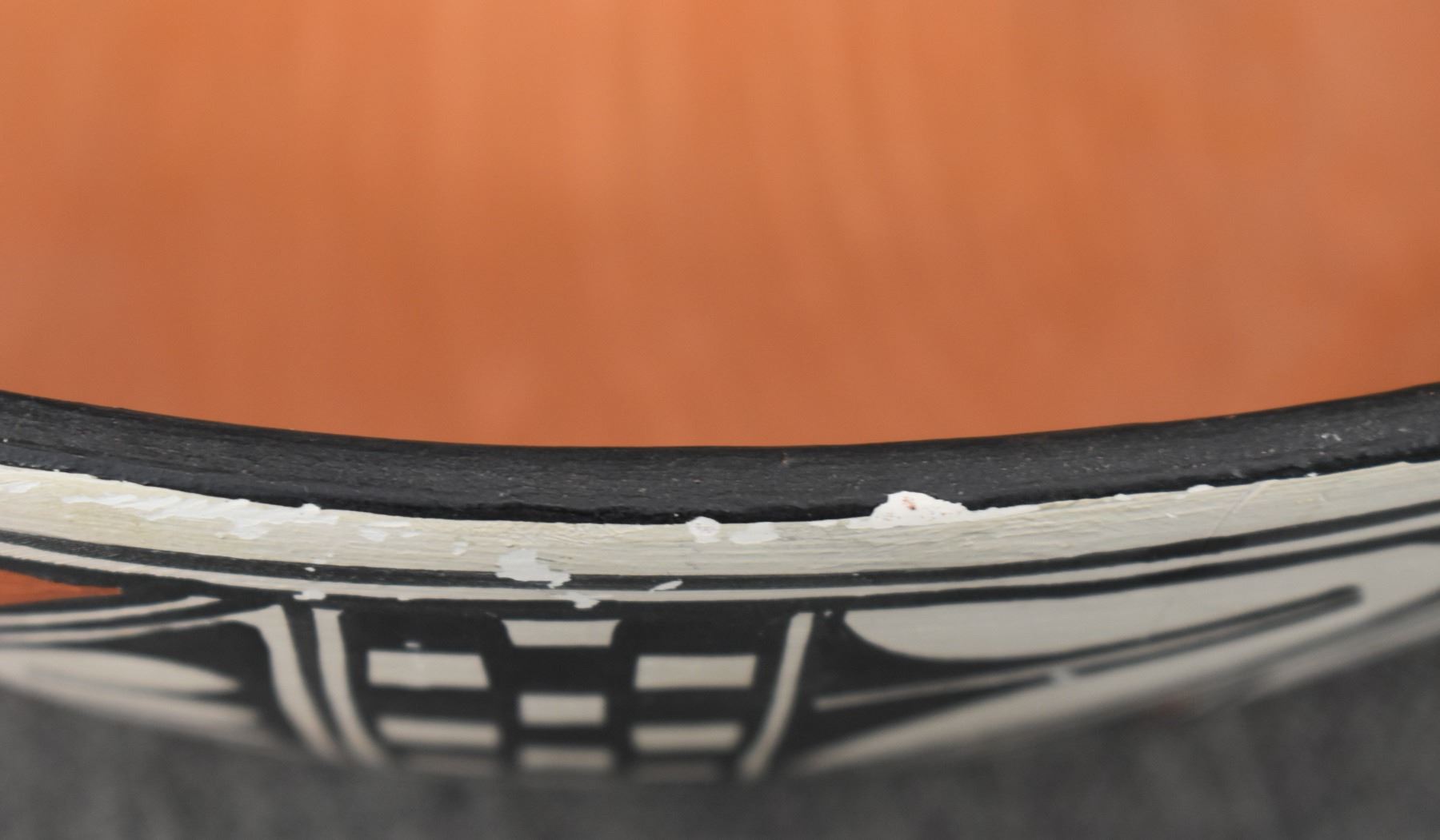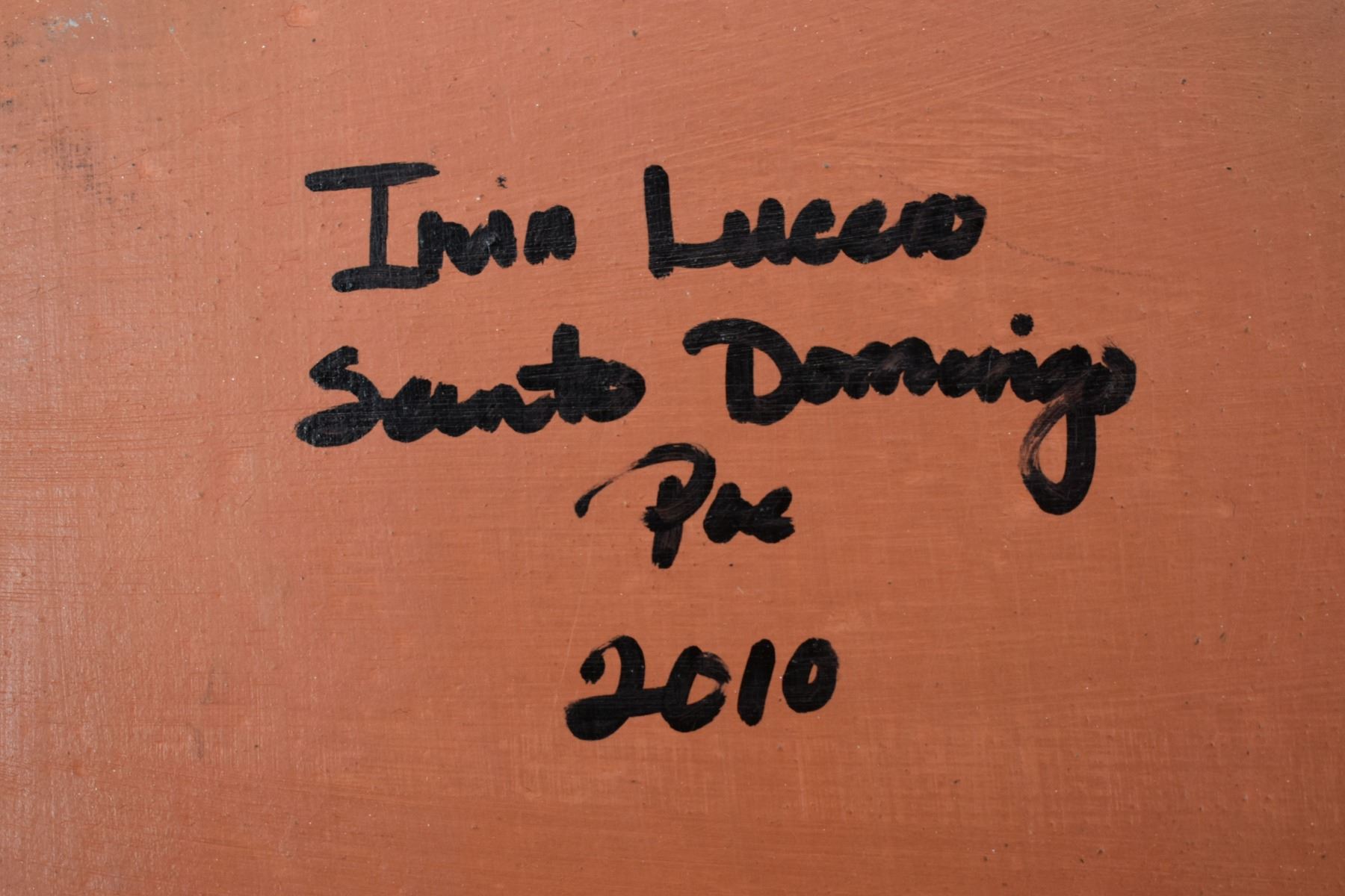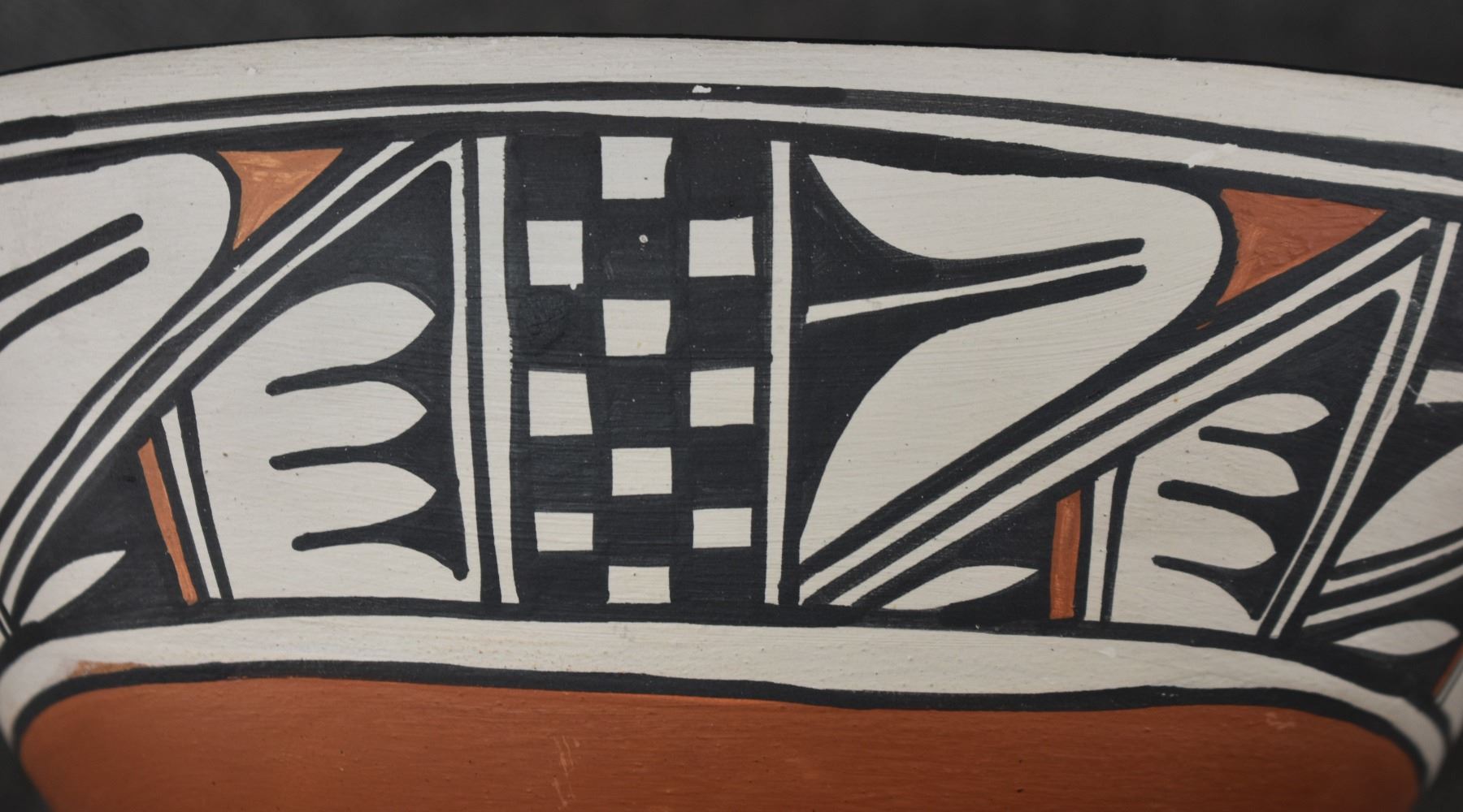 2010 Santo Domingo, hand coiled with polychrome painted geometric and checkerboard design by Irvin Lucero 3.25" x 8.75"