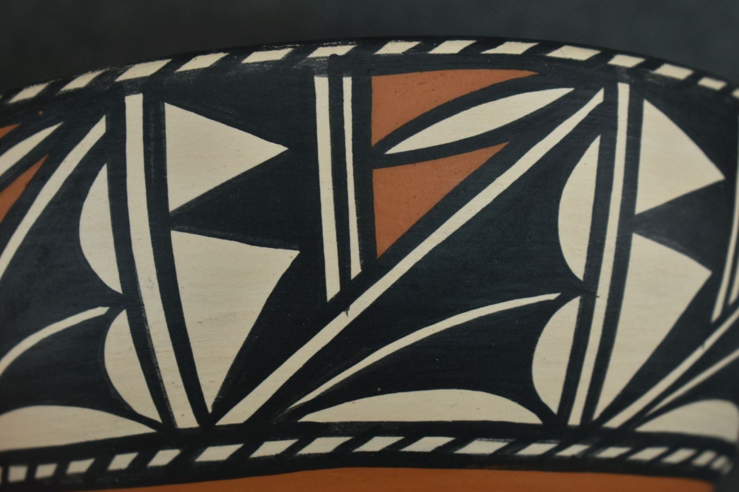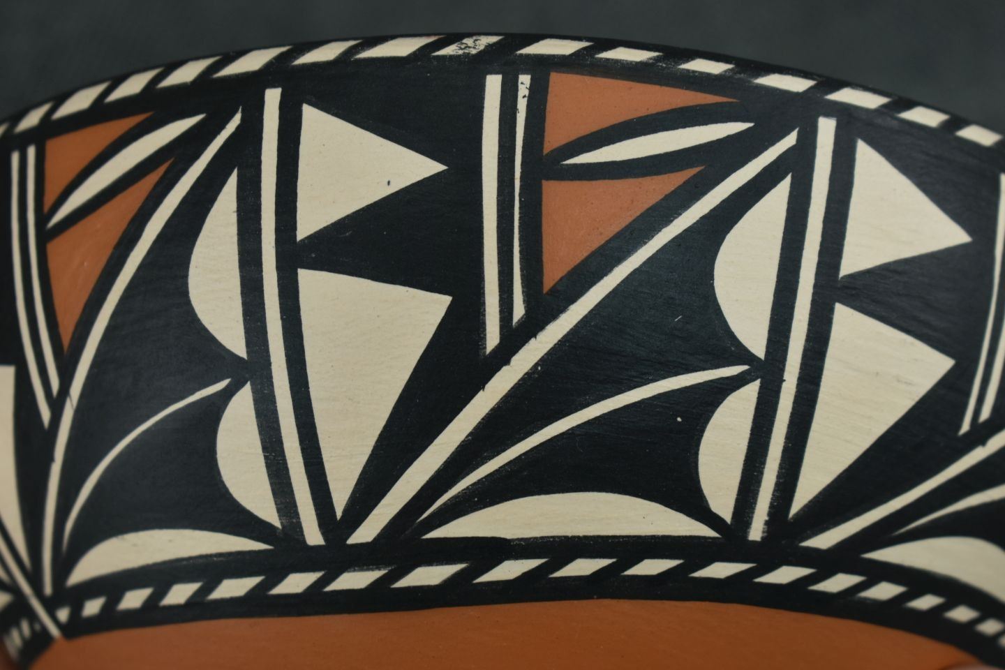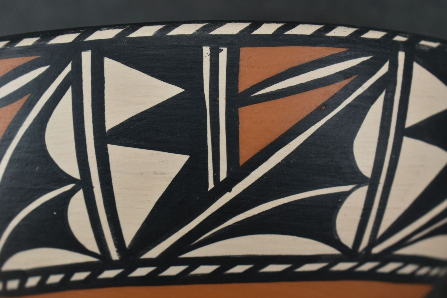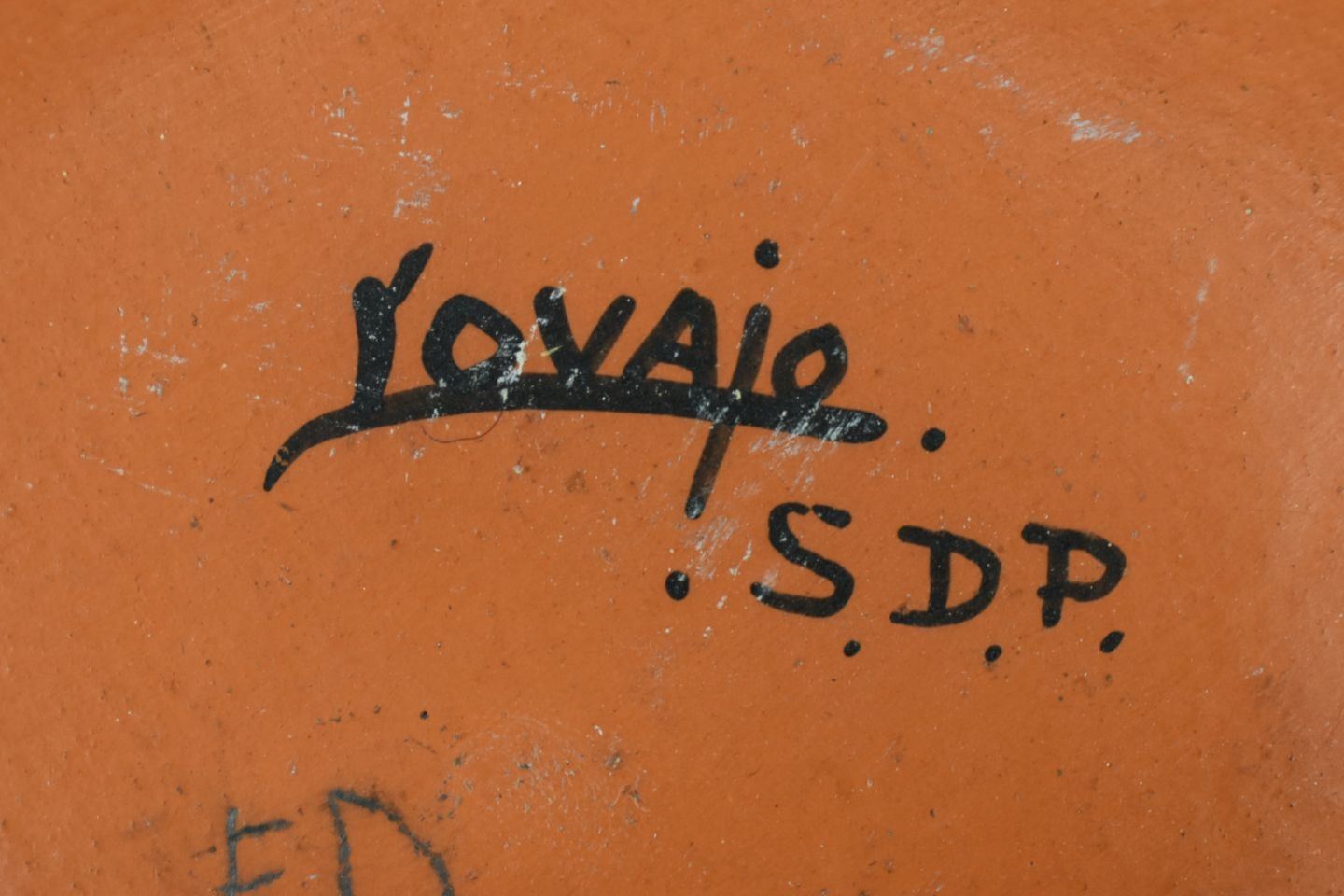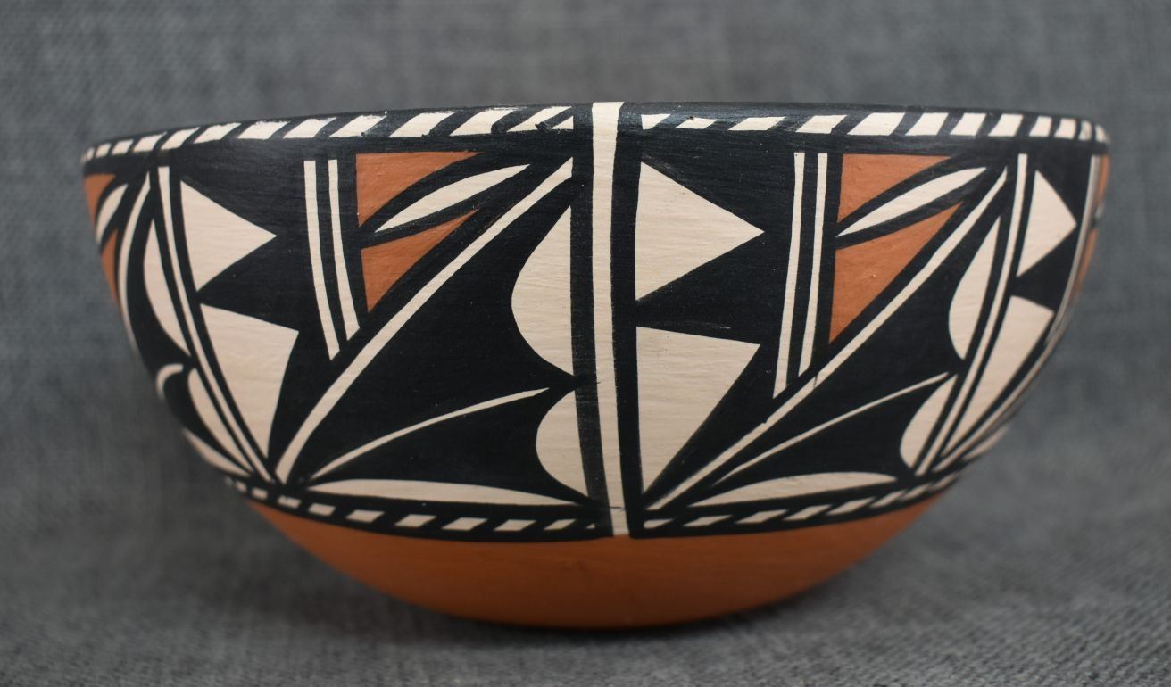 1990's Santo Domingo, hand coiled with polychrome painted geometric design signed Lovato 3.75" x 8"