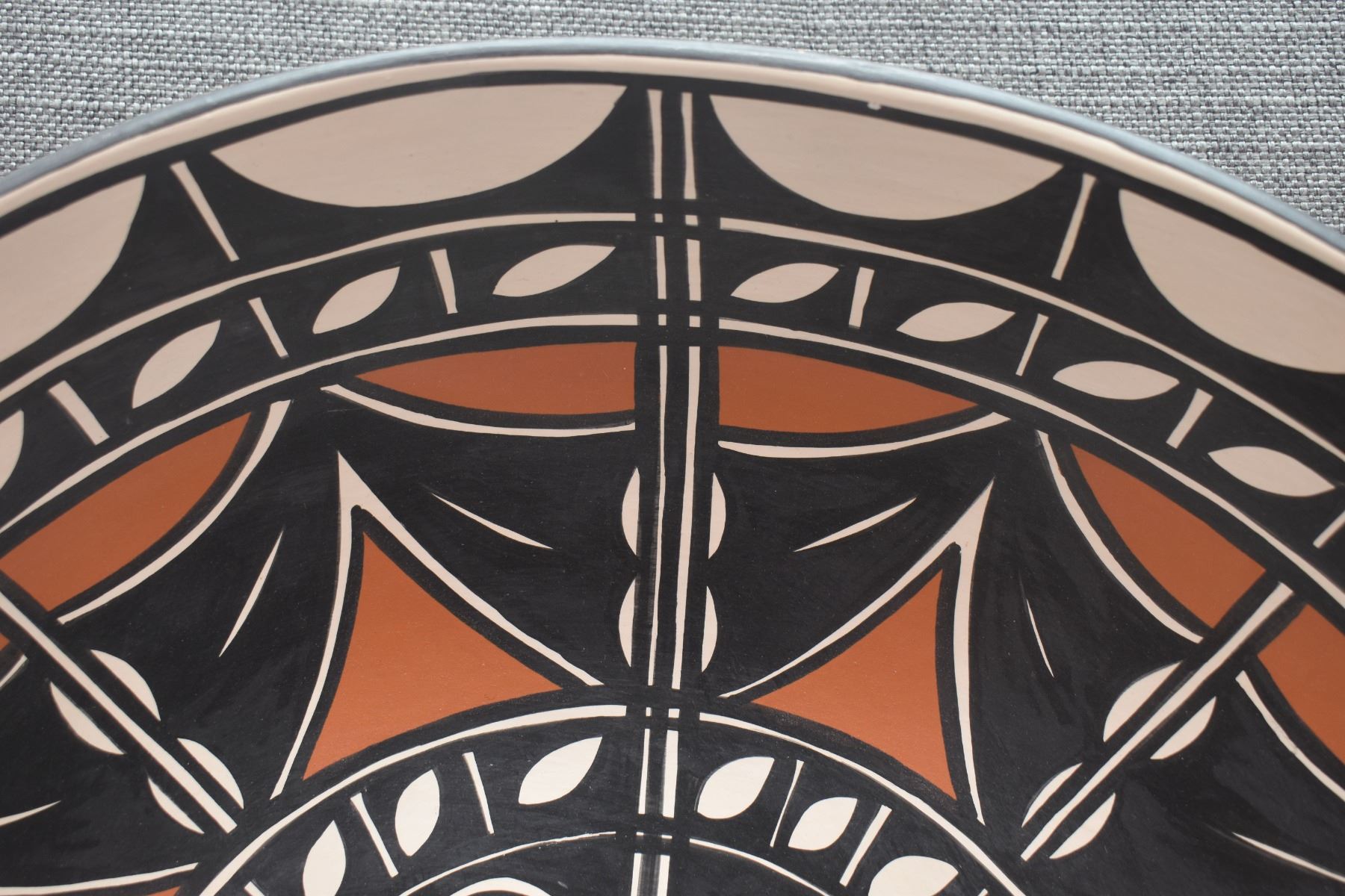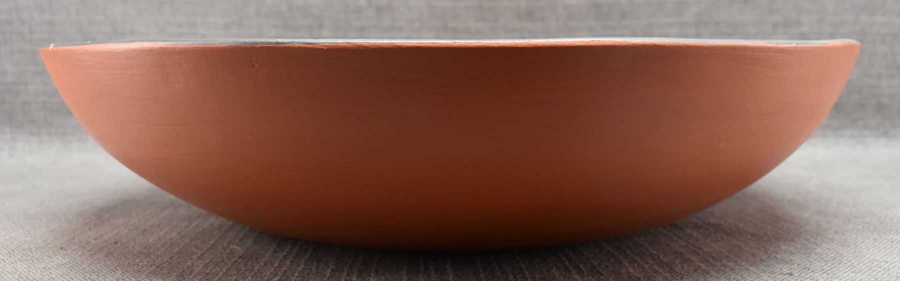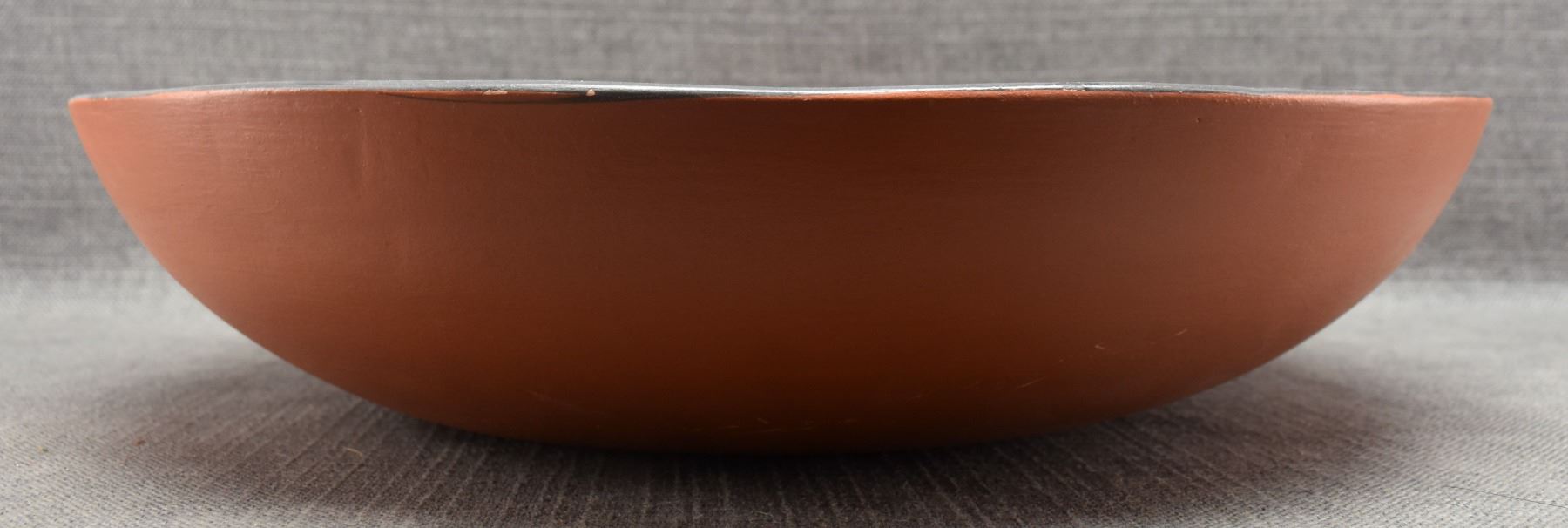 2000 Santo Domingo, hand coiled with polychrome painted geometric design signed Thomas Tenorio 4" x 18"