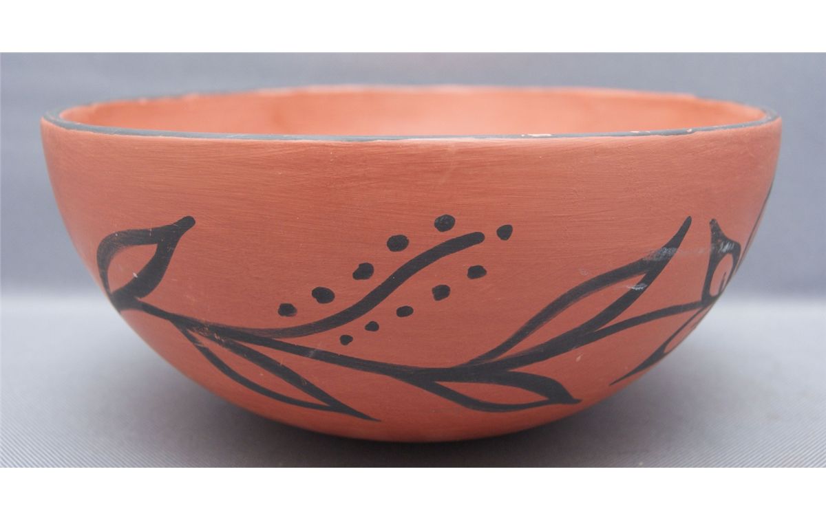 1980s 90s black on red floral design with minor paint rubbing and chips on rim, 3.75" x 8.5" Shipping charge are for the United States. The shipping on this lot is $10.00. Outside the United States there will be additional shipping fees.