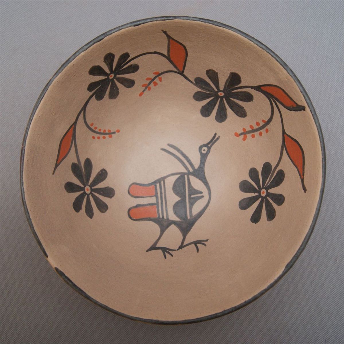 1980s 90s black on cream design on outside polychrome bird inside signed Pone Coniz, 3.75" x 8.25"