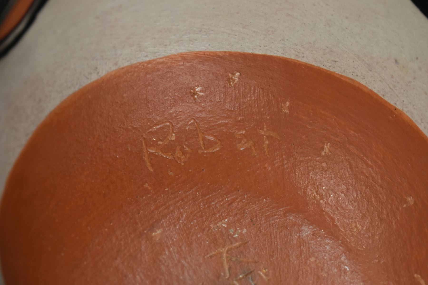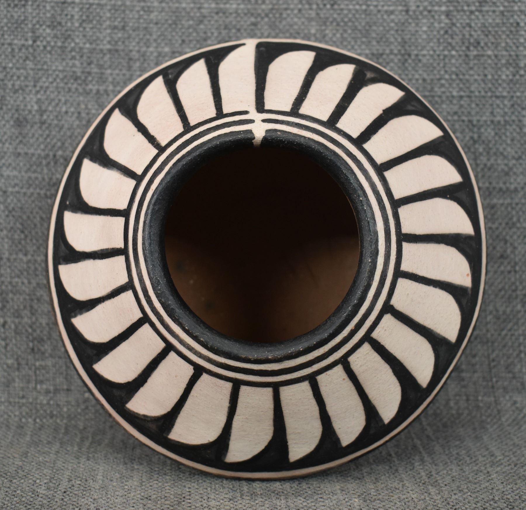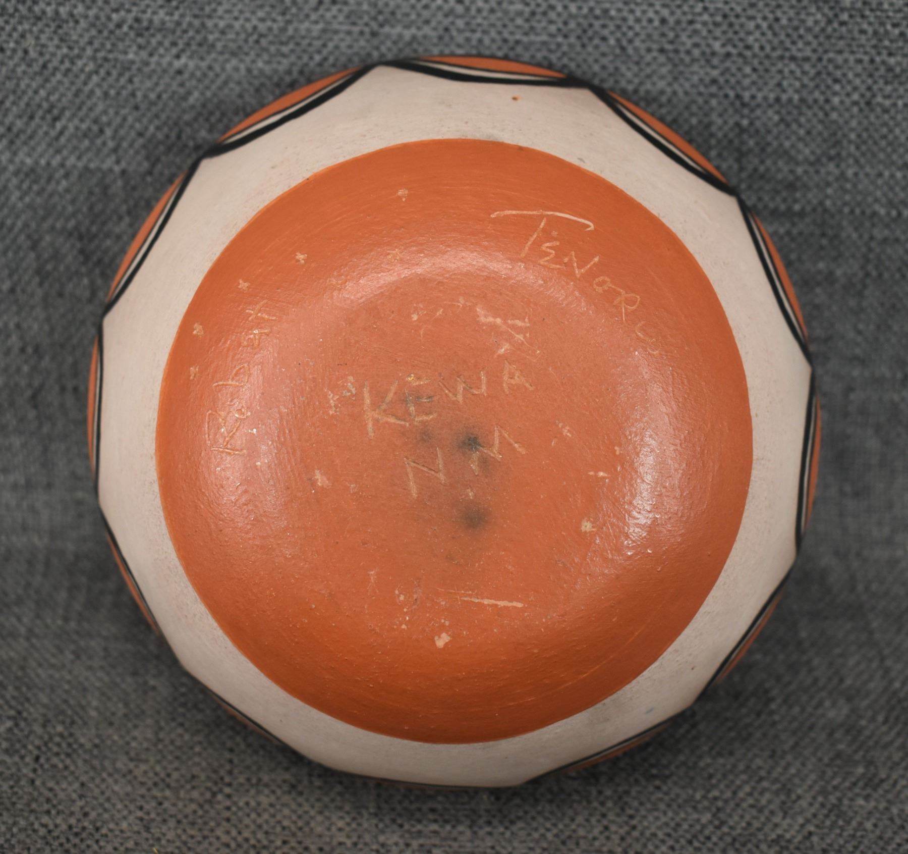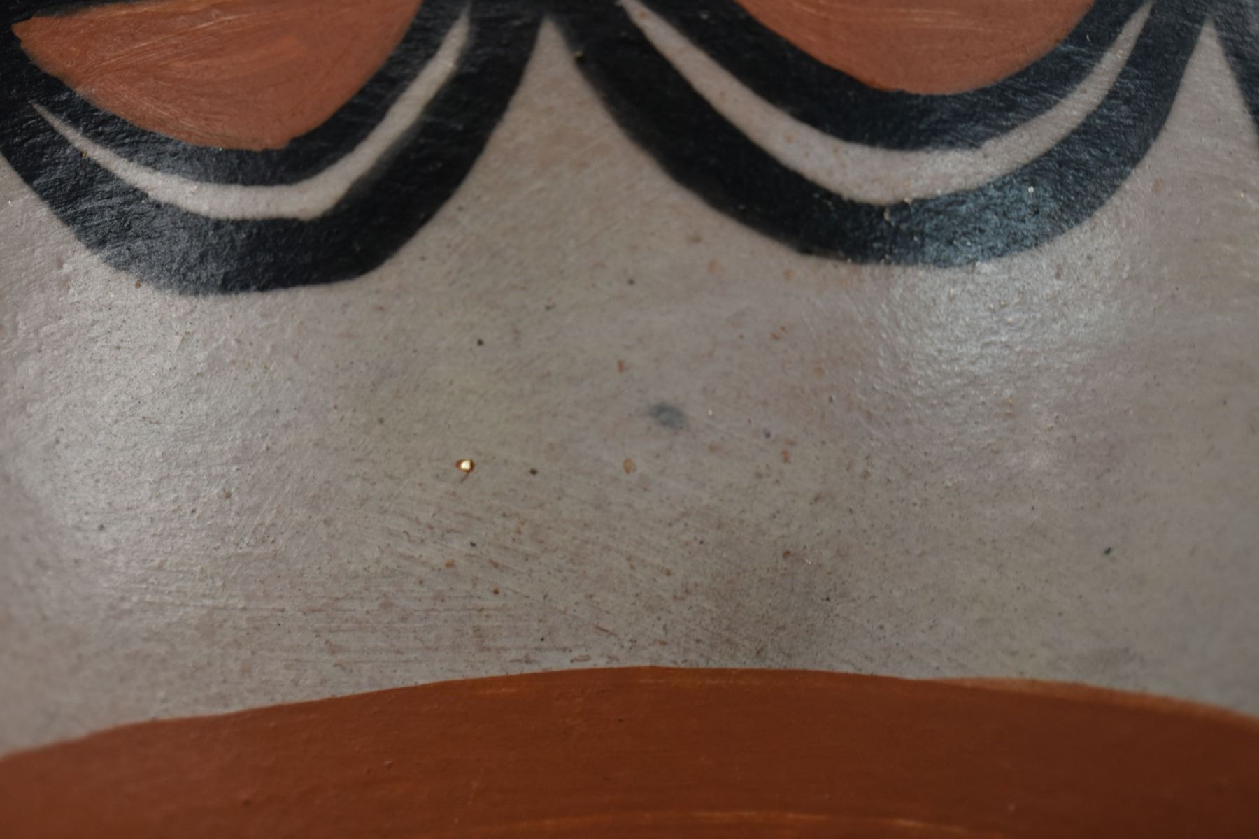 1990-2000's Santo Domingo, hand coiled with polychrome painted feather design by Robert Tenorio 4.5" x 6"