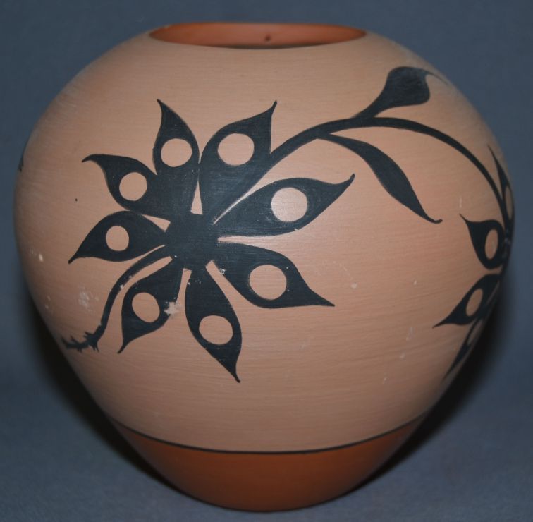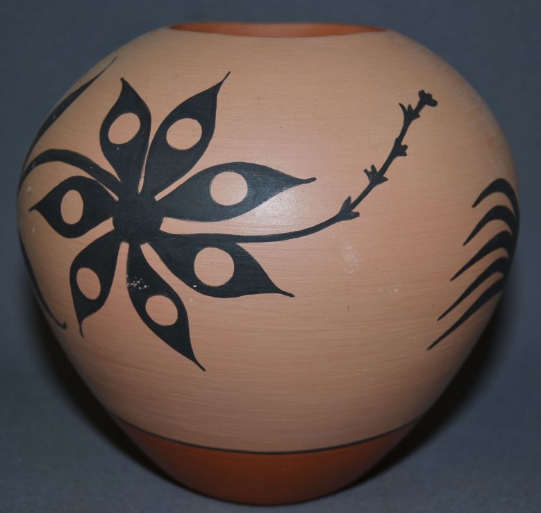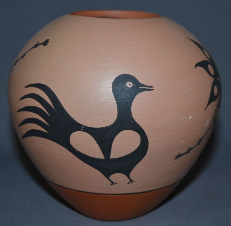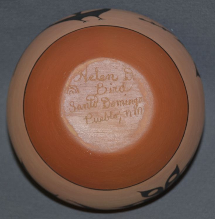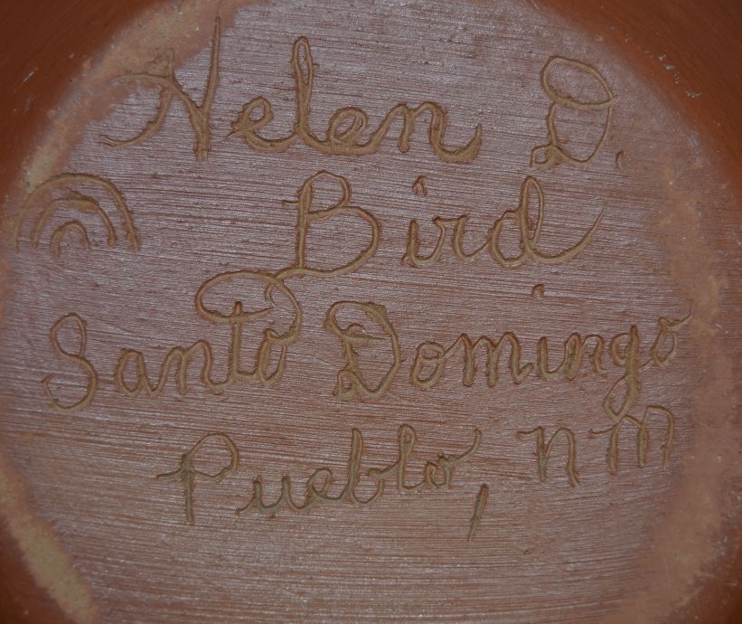 1990's Hand-painted floral and bird design signed Helen Bird has minor surface rubs and pits 6" x 6.5"