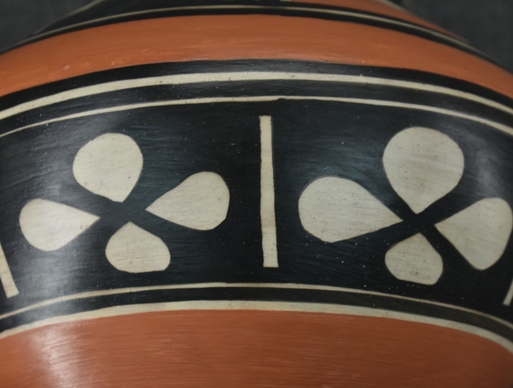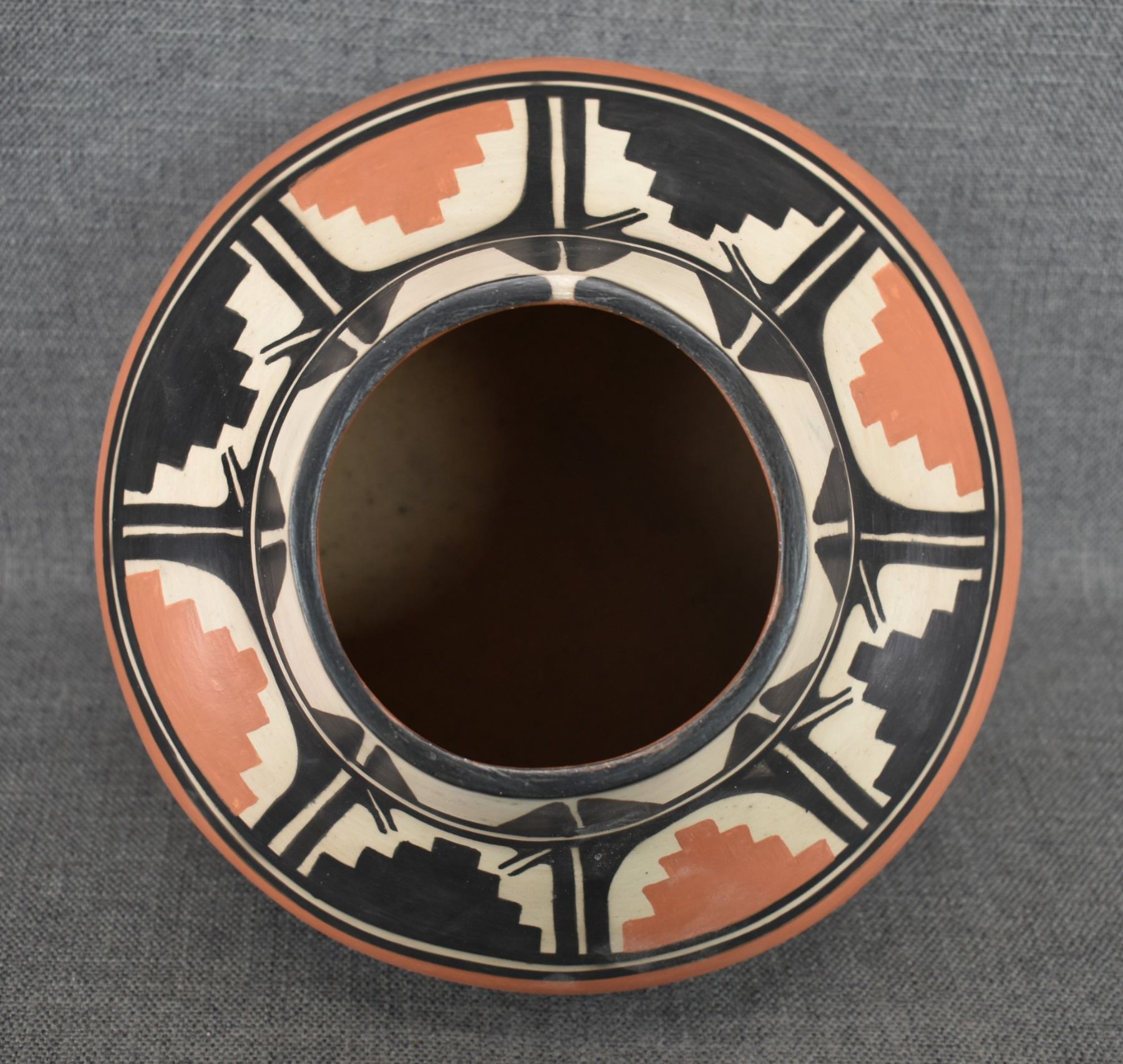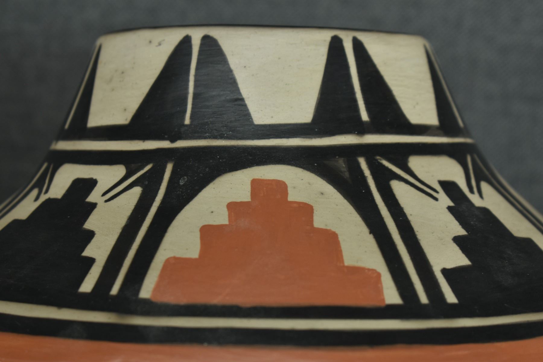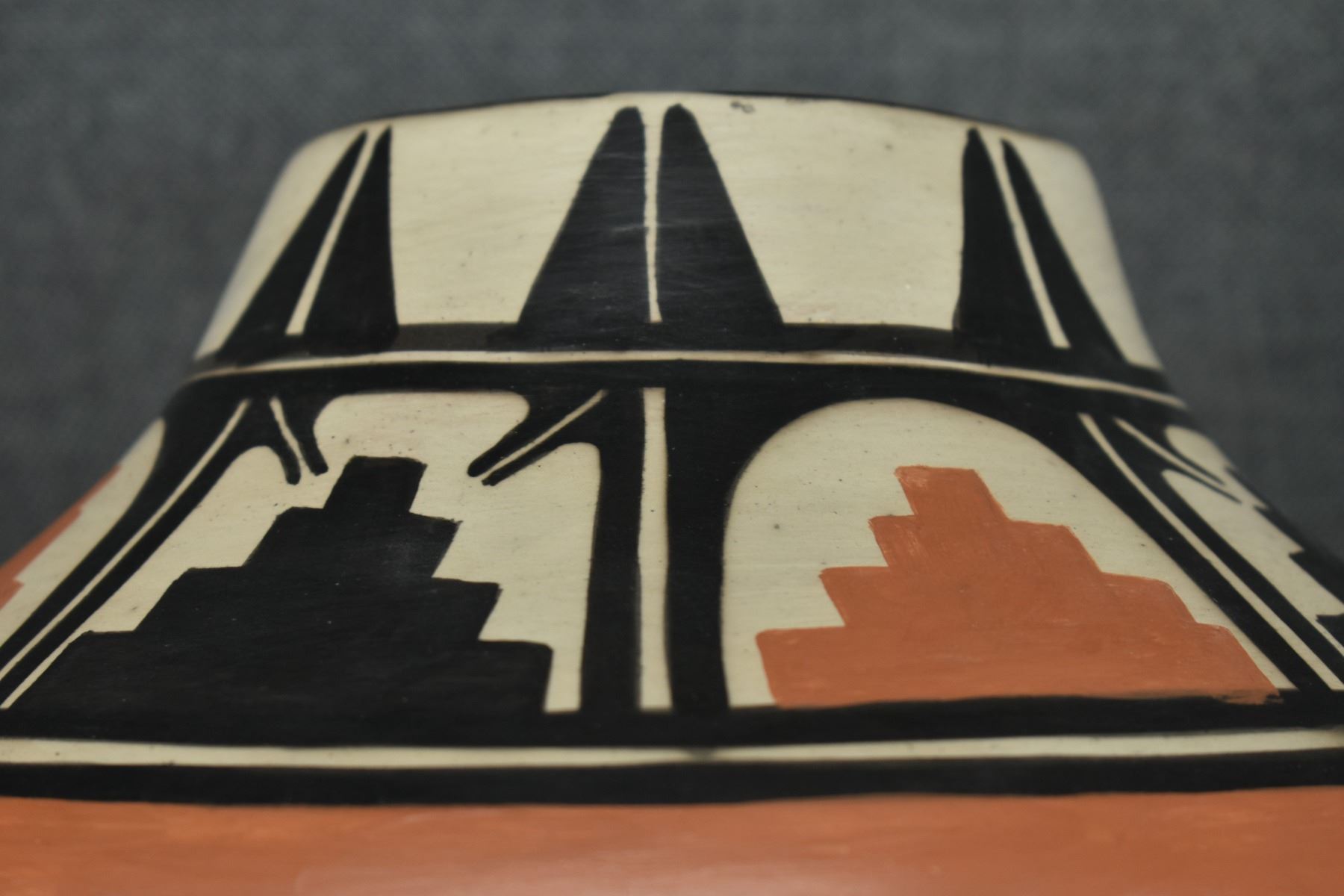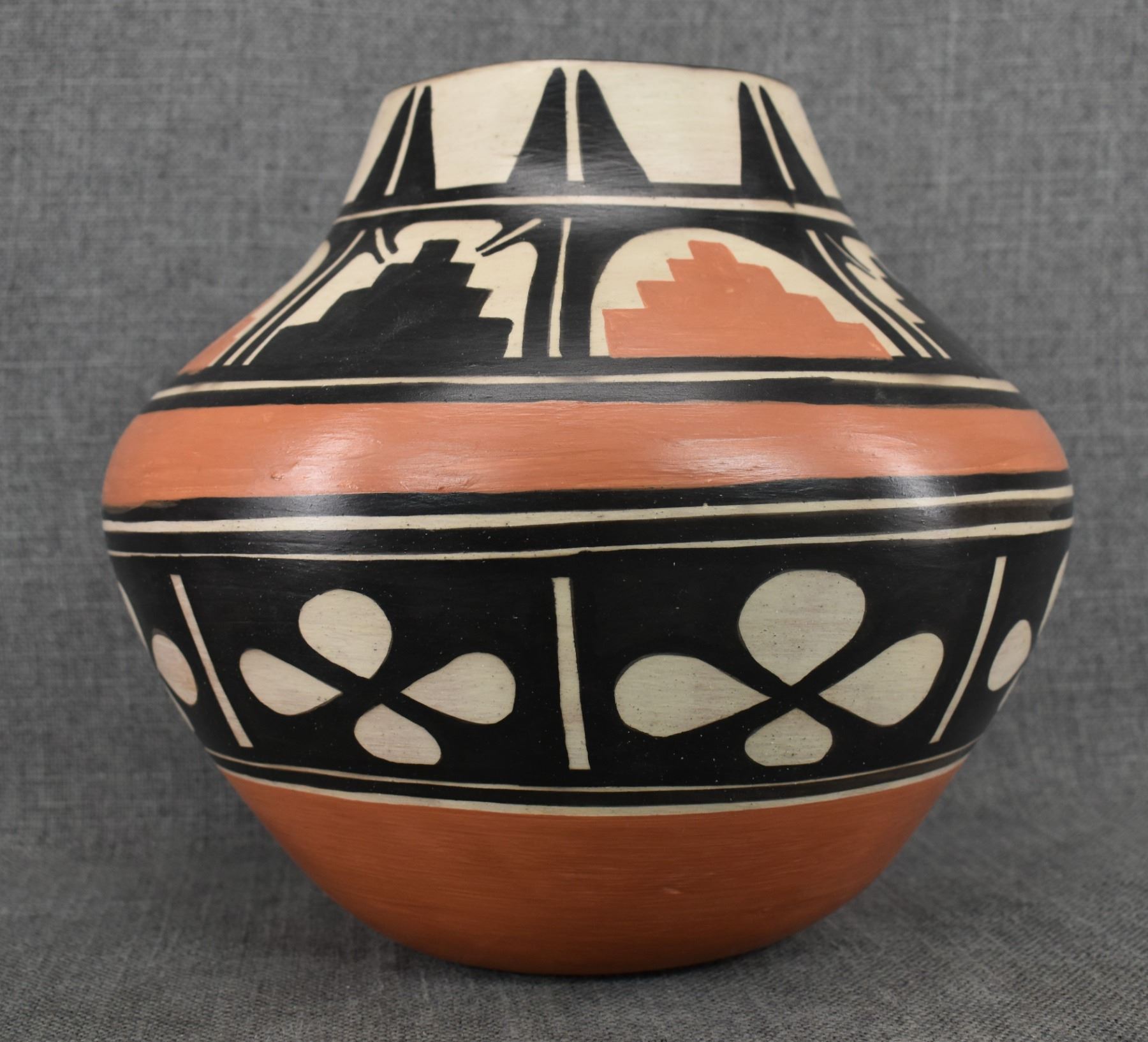 1980-90's Santo Domingo, hand coiled with polychrome painted floral and mesa design signed Paulito Pacheco. 9.5" x 10"