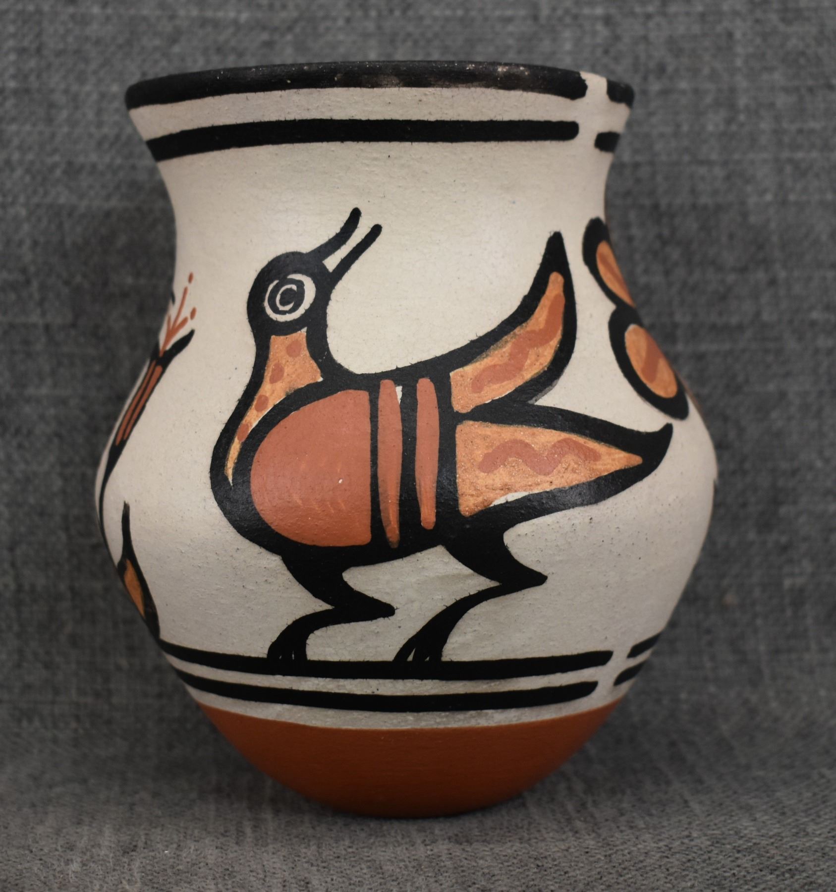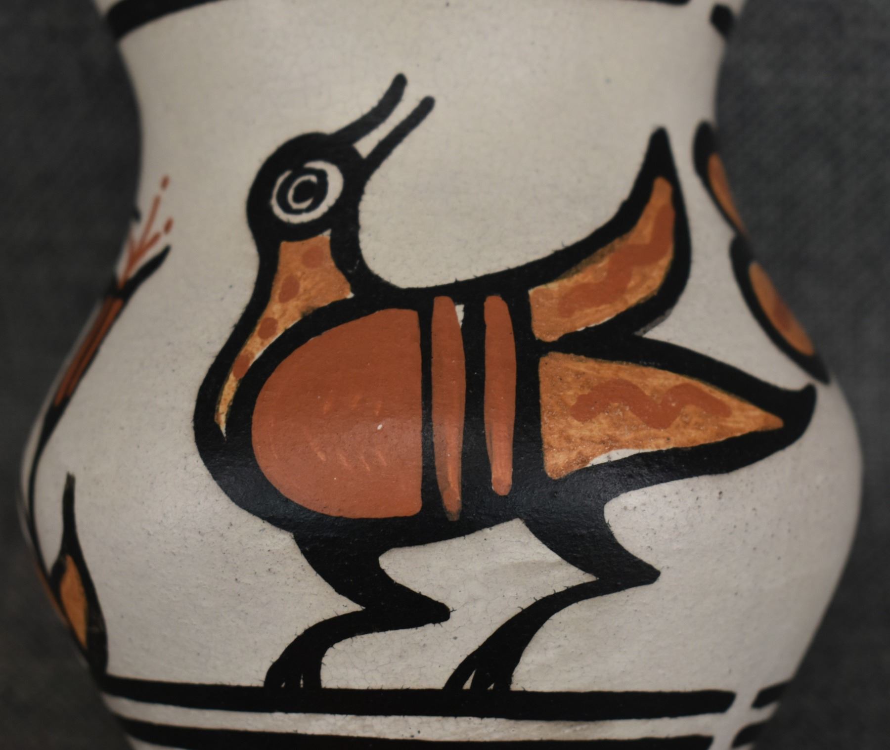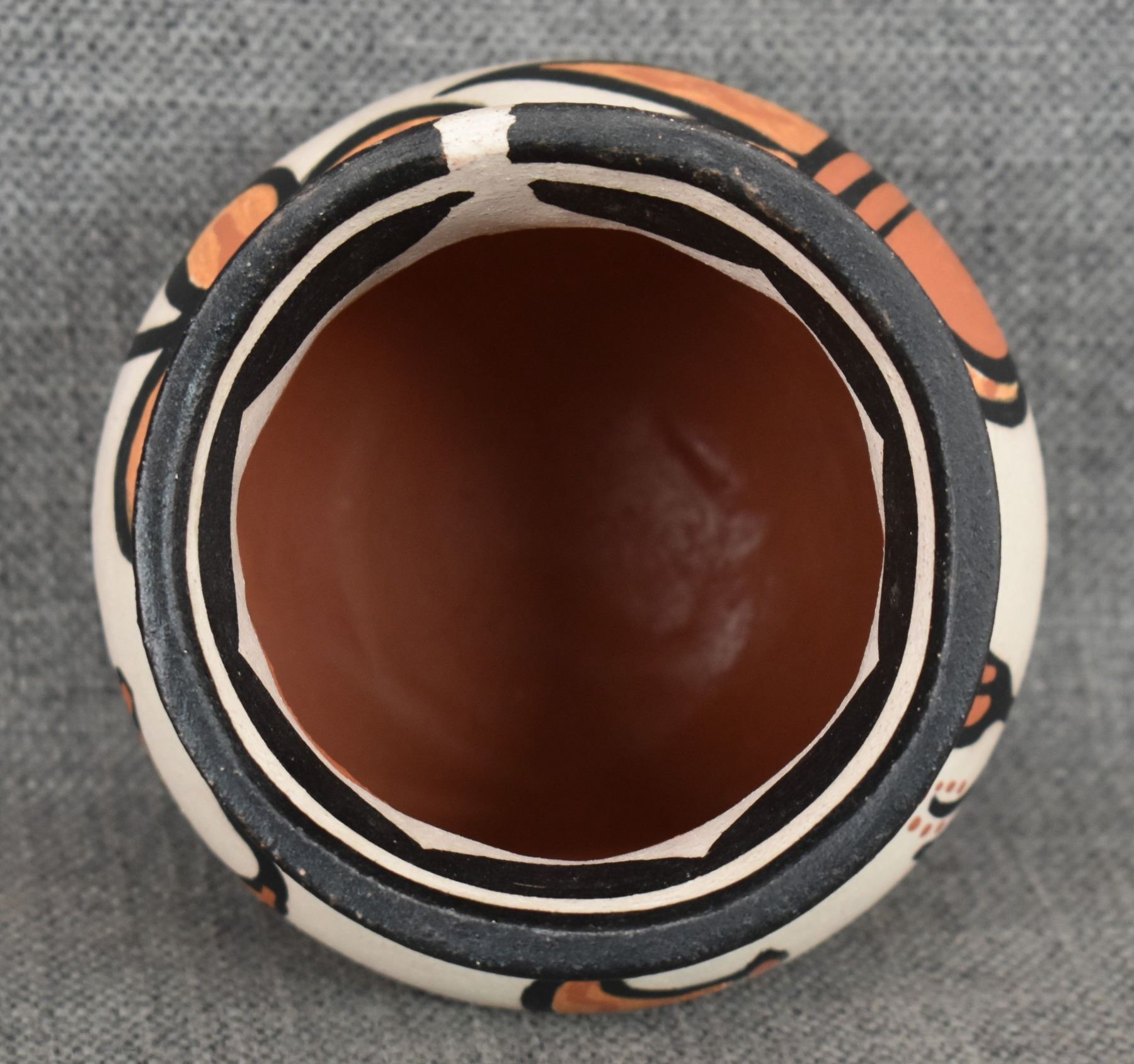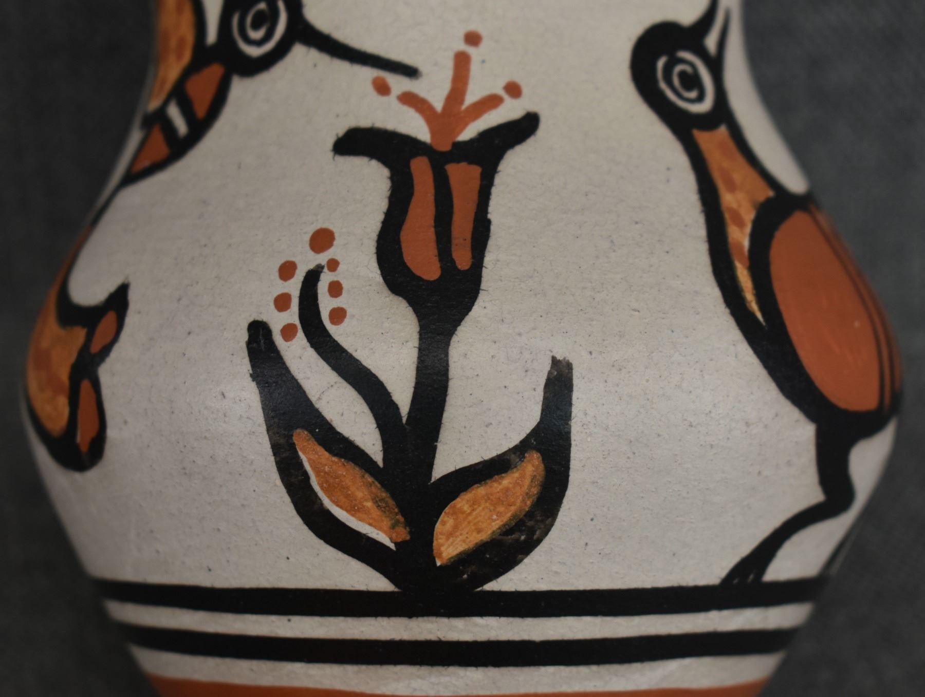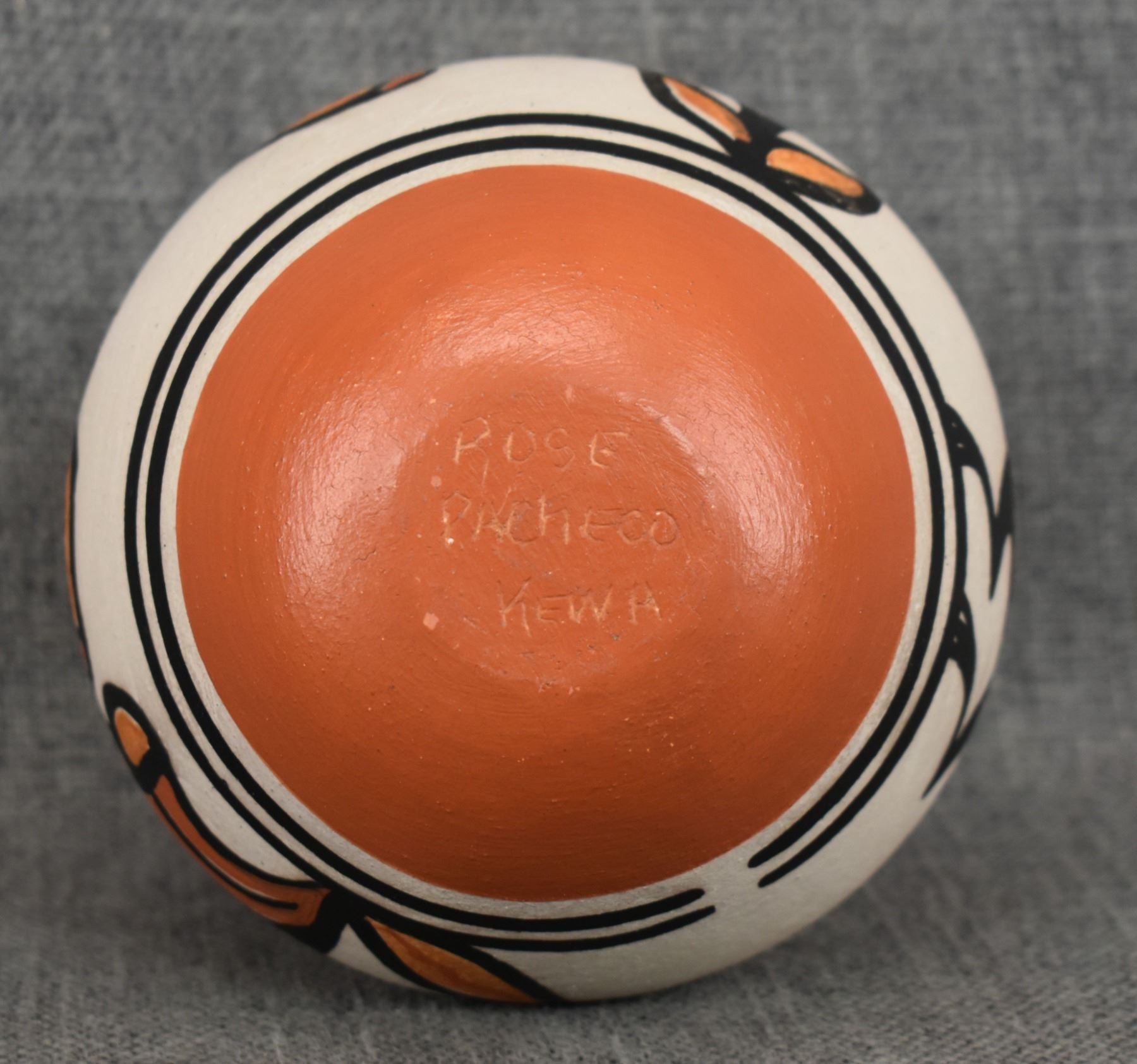 2000's Santo Domingo, hand coiled with polychrome painted hummingbird and floral design signed Rose Pacheco. 6" x 4.75"