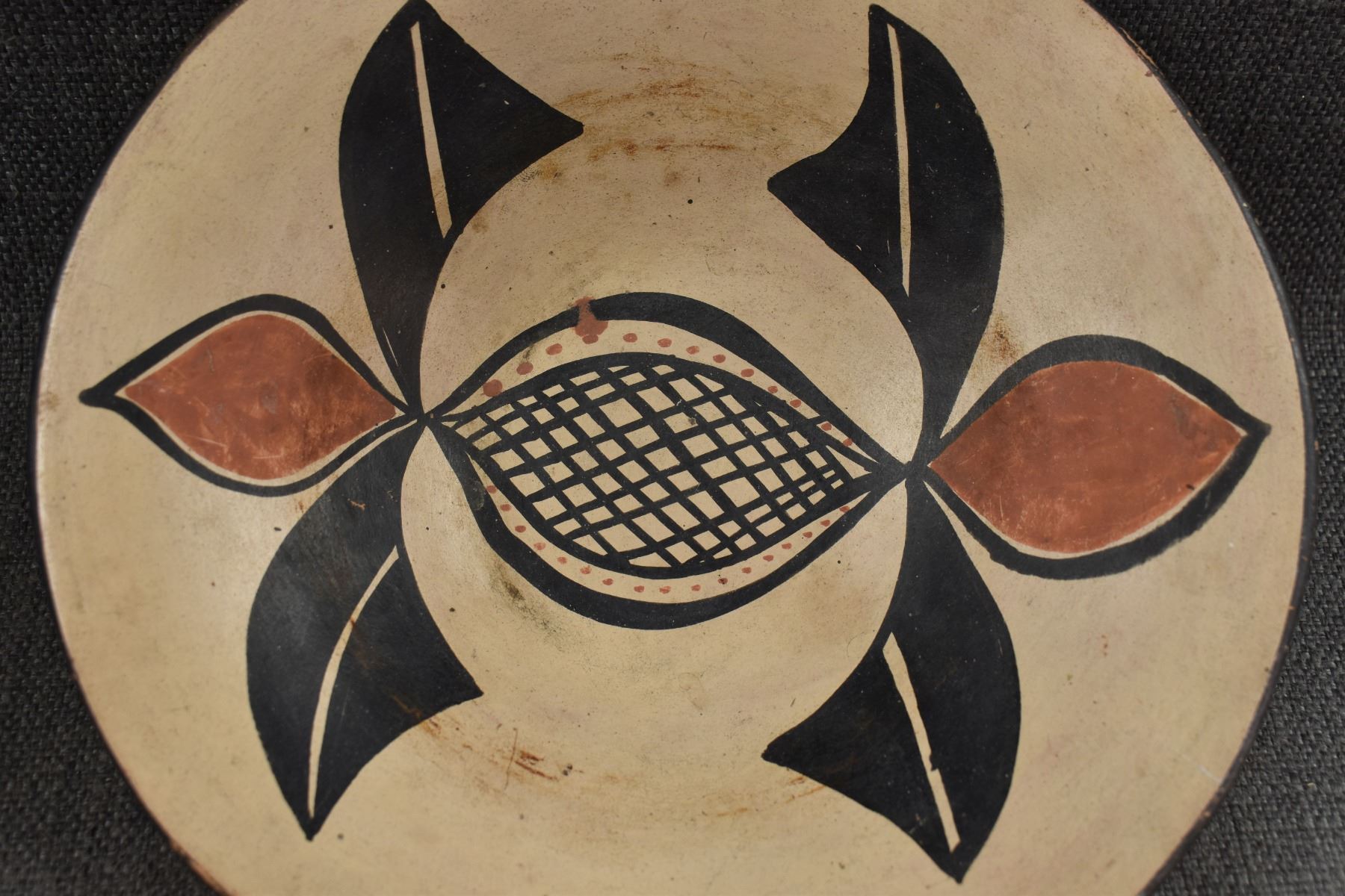 1940-50's Santo Domingo, hand coiled with polychrome painted design 1.75" x 8"