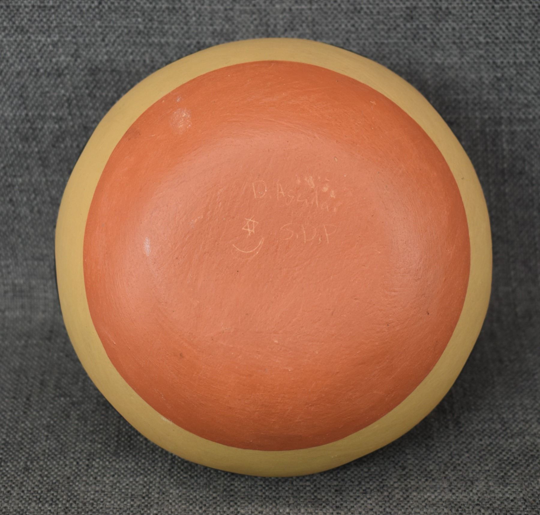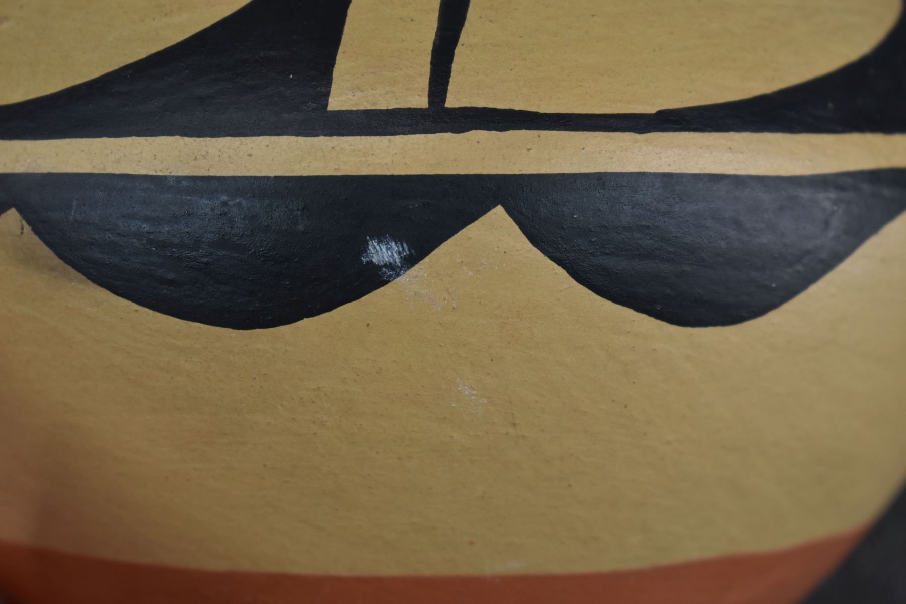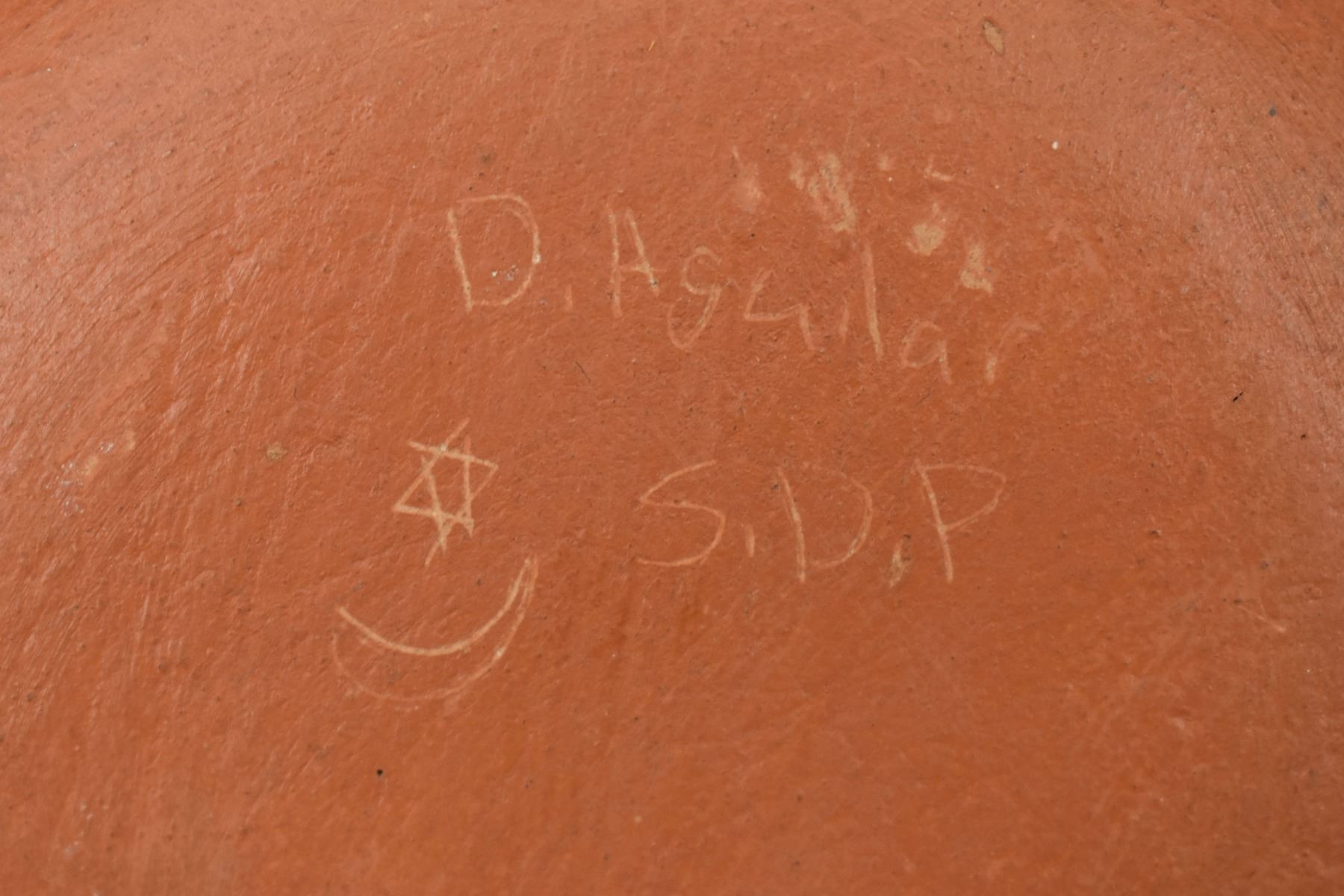 1980's Santo Domingo. Hand coiled and painted pottery vase signed. D Aguilar. 7'' x 7''