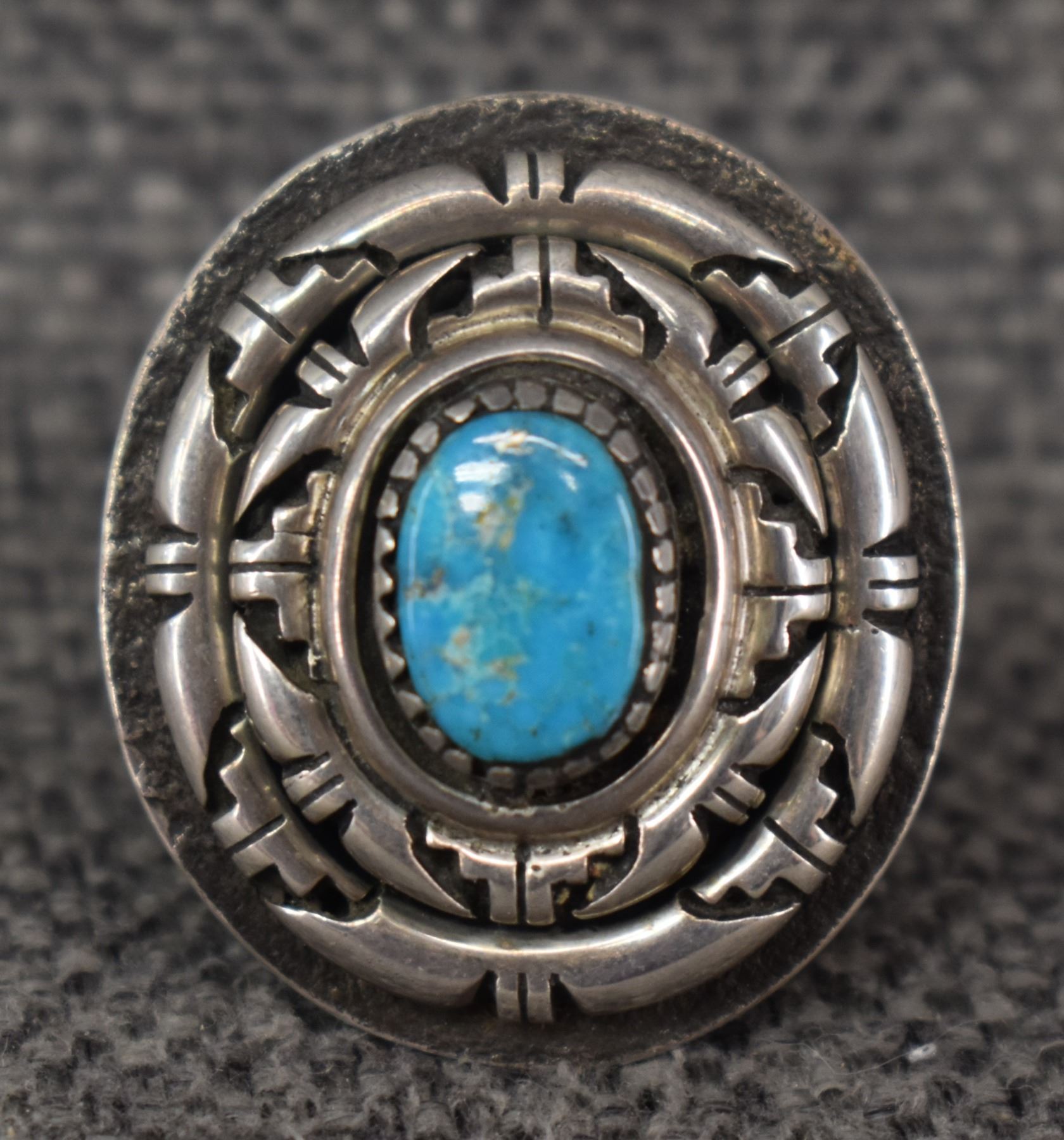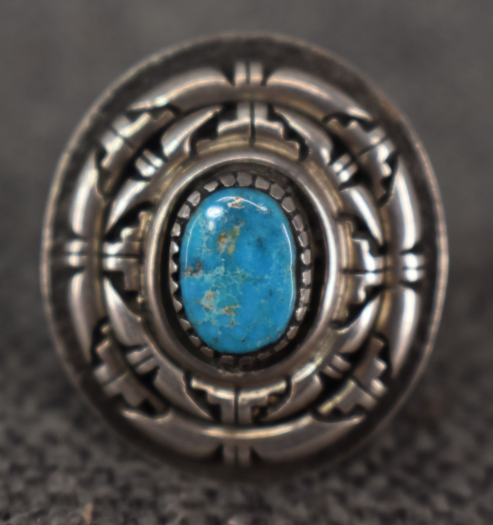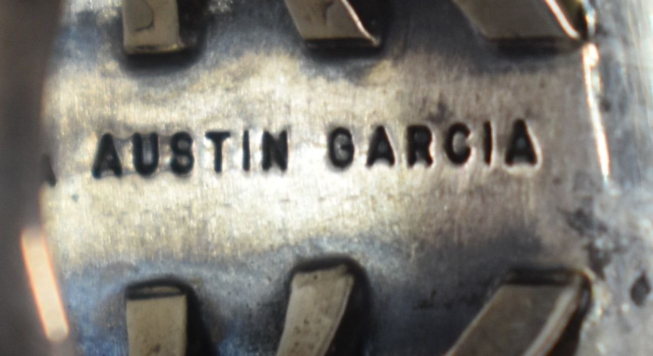 1980-90's Santo Domingo, sterling silver and turquoise signed Austin Garcia 1.25" size 6 total weight 20 grams