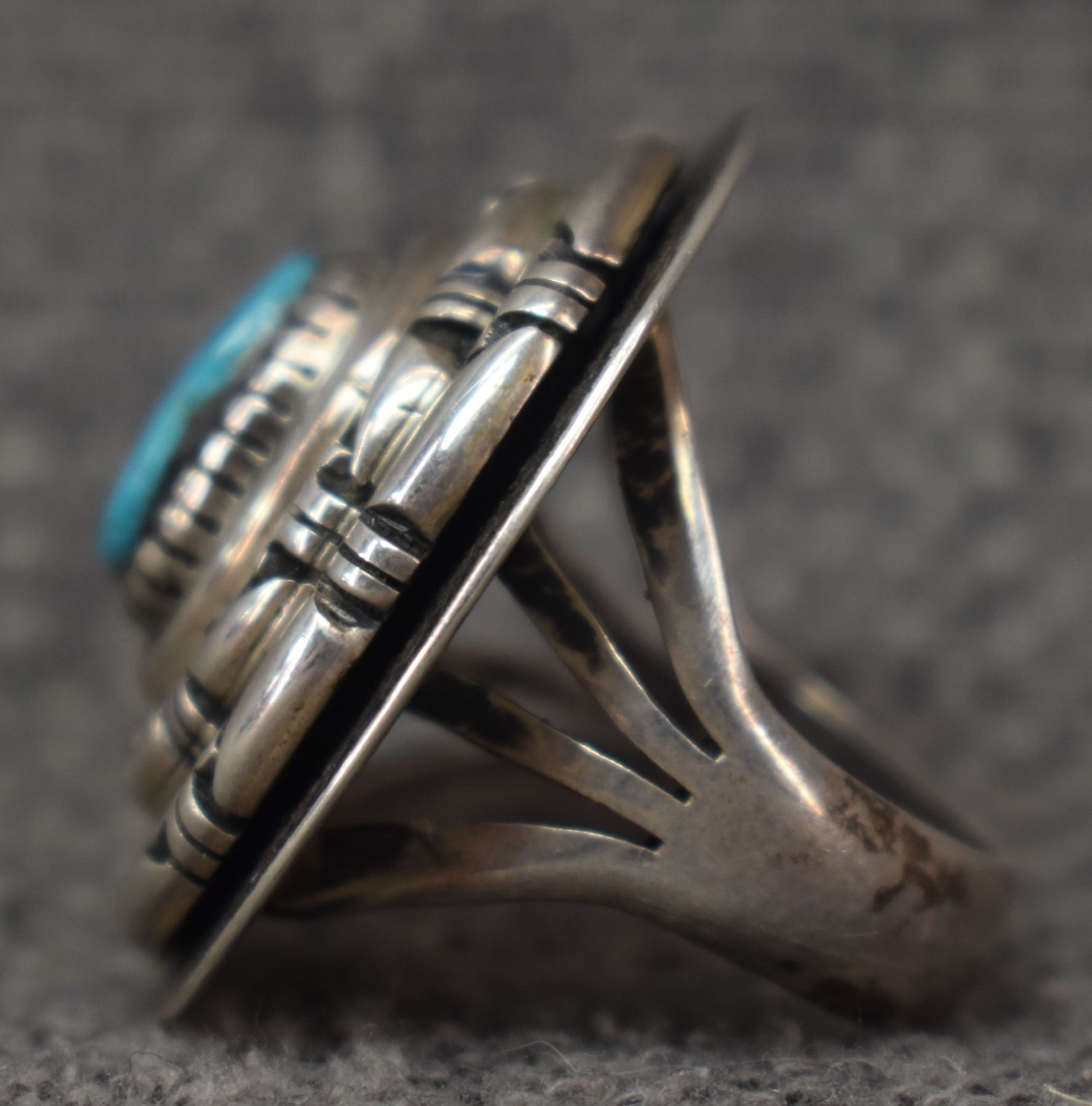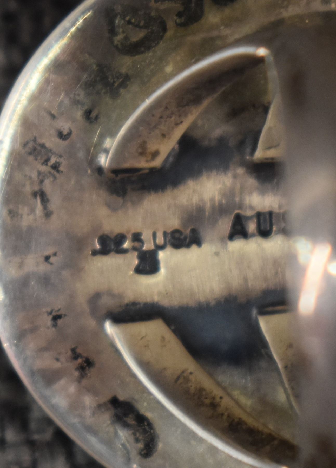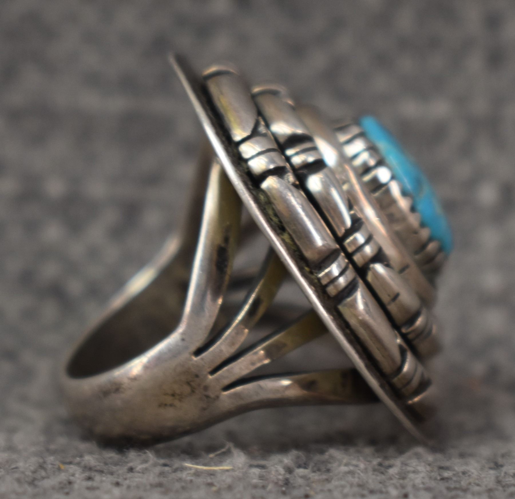 1980-90's Santo Domingo, sterling silver and turquoise signed Austin Garcia 1.25" size 6 total weight 20 grams