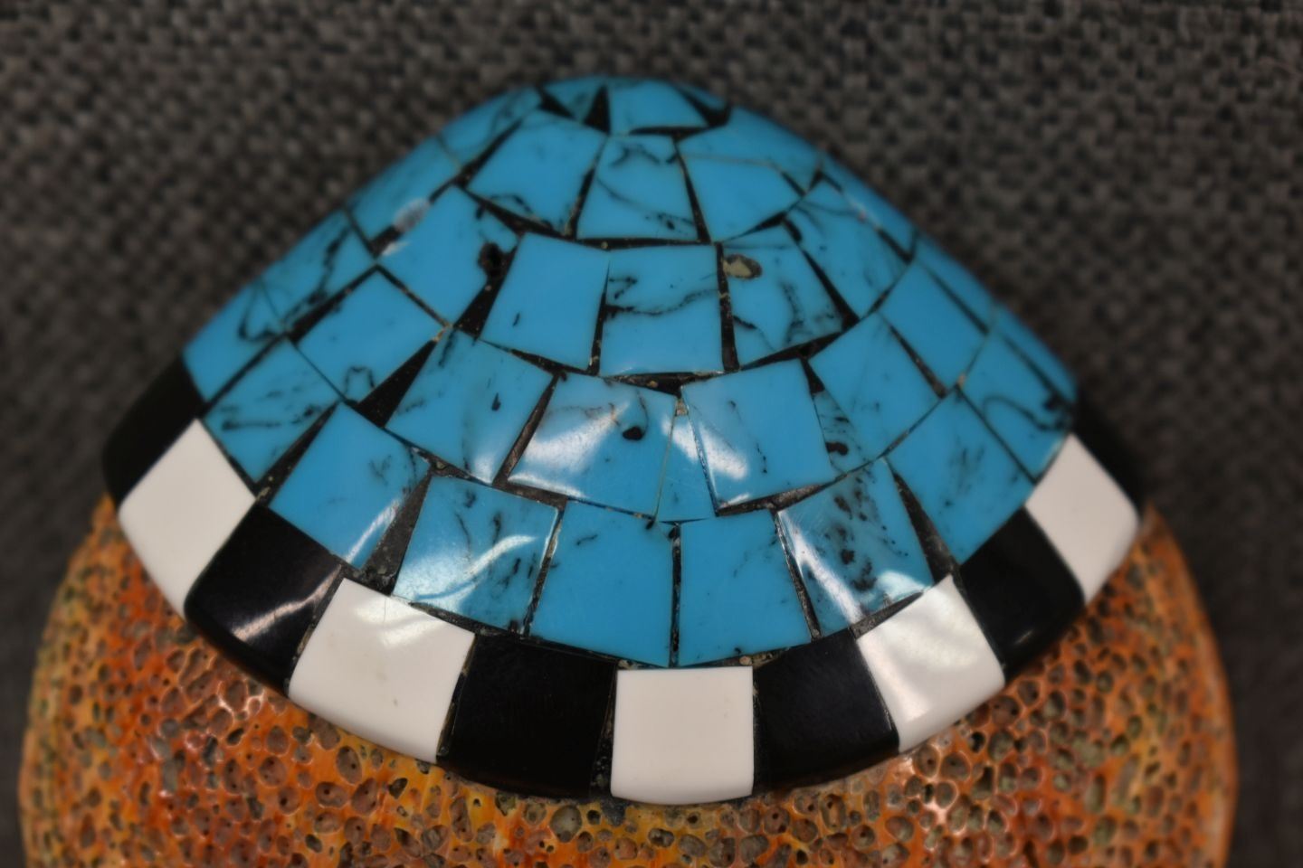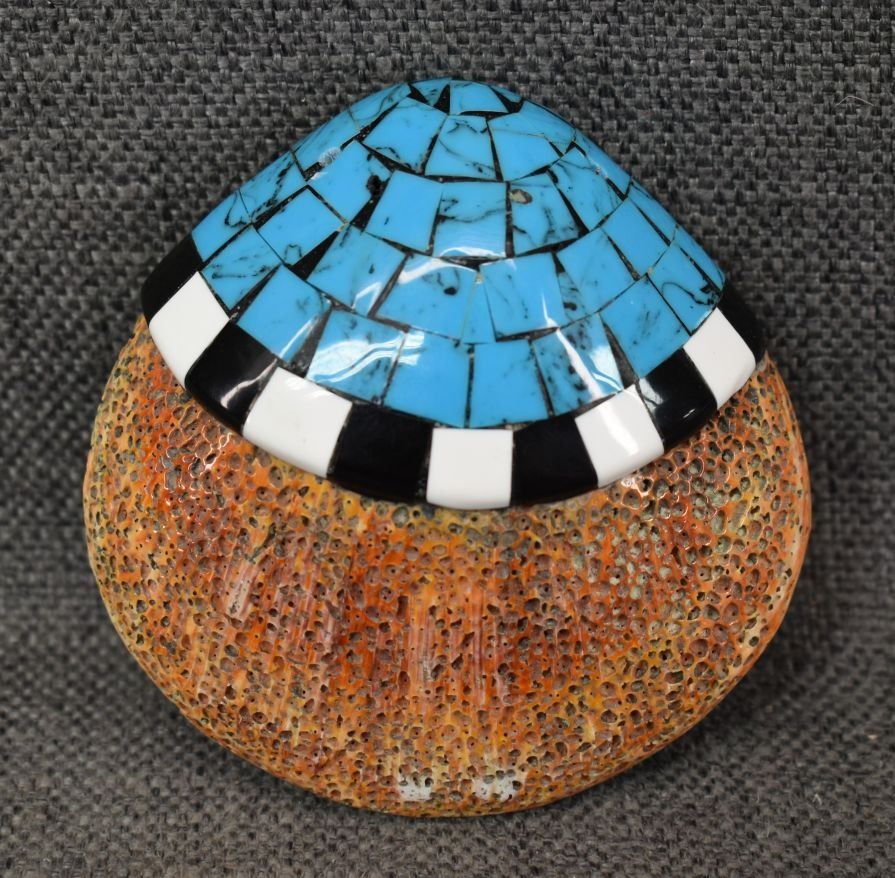 1980's santo Domingo. Inlayed shell pendant, 4'' x 4'' x 1''